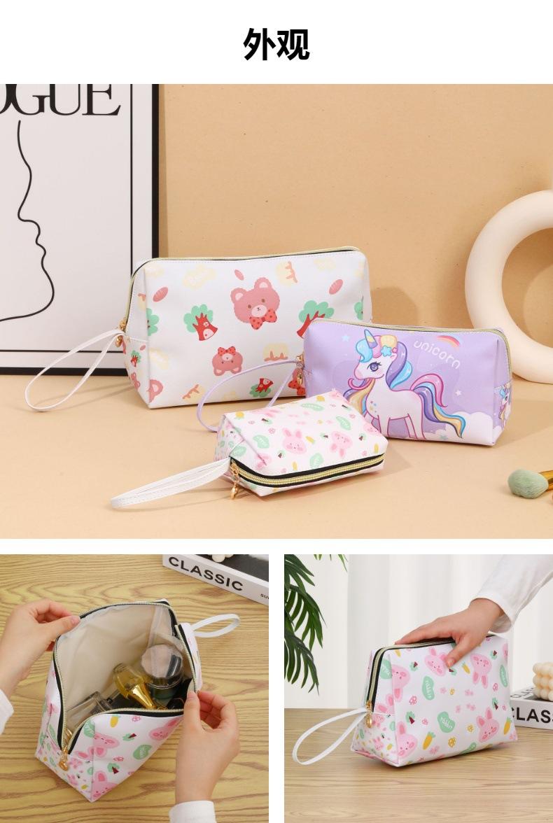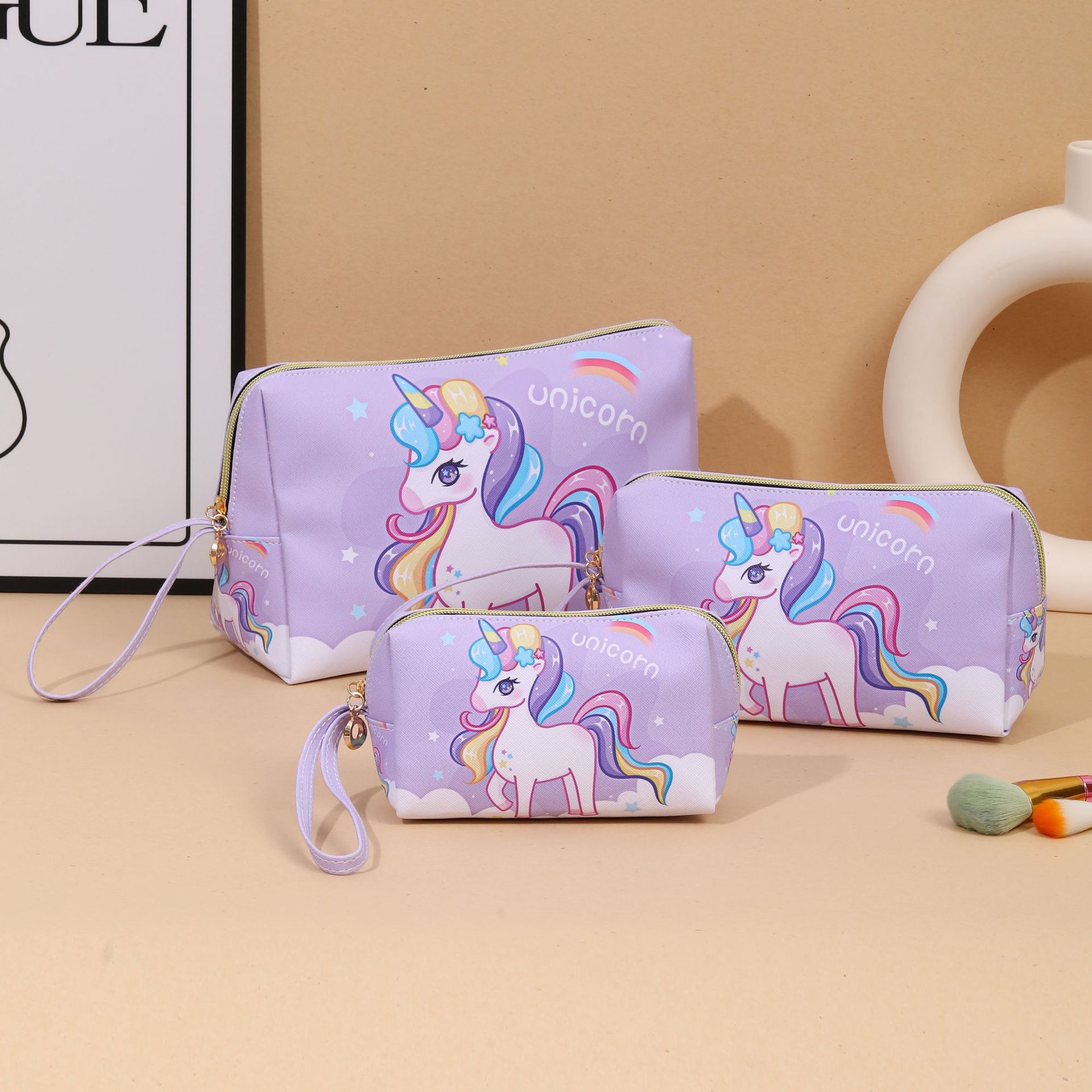Bolsa Cosmética Impermeable de PU para Mujer de Gran Capacidad Unicornio Dibujos Animados Bolsa de Almacenamiento para Cuidado de la Piel Bolsa de Viaje para Lavado con Pulsera