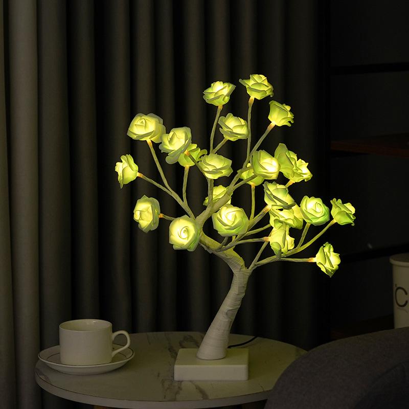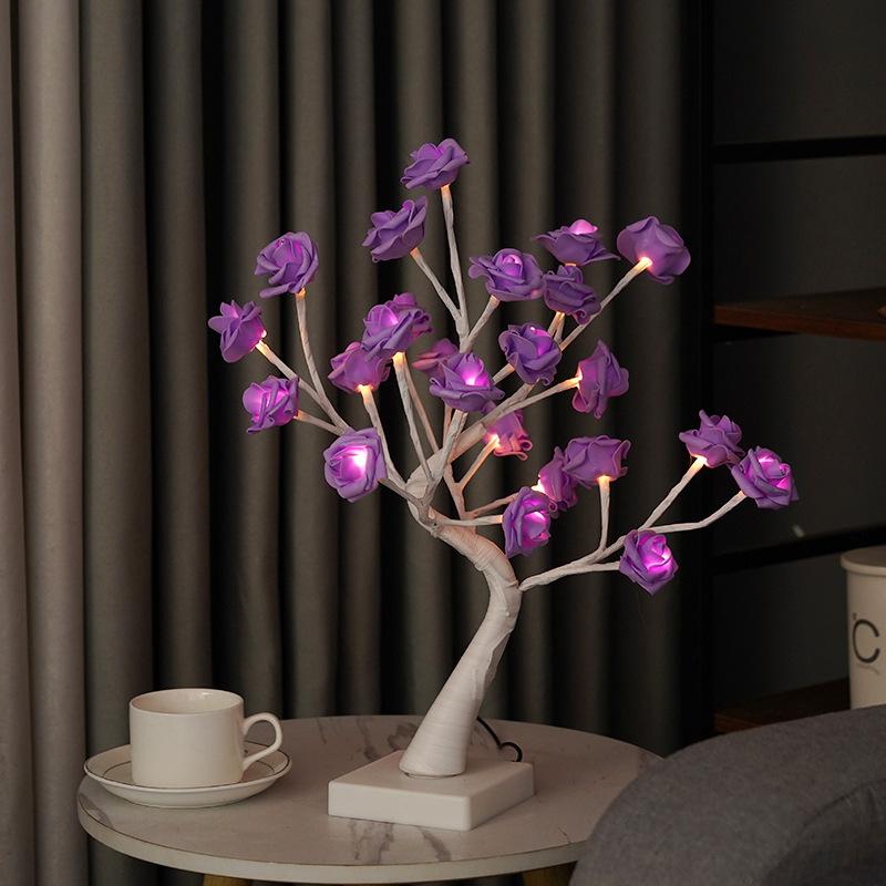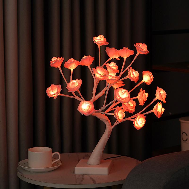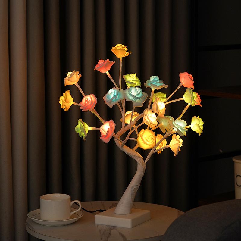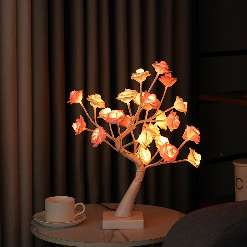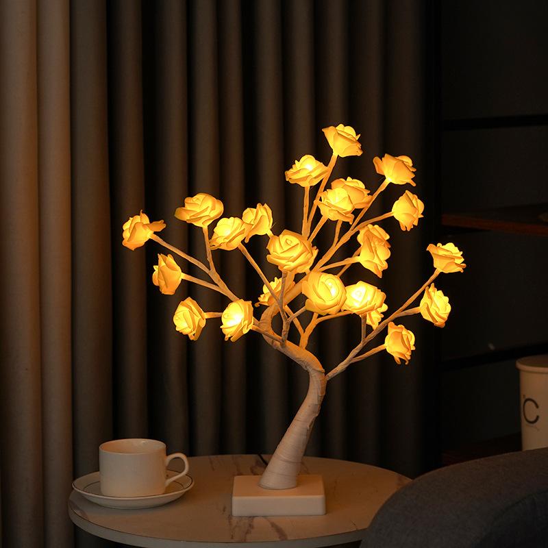 Lámpara LED transfronteriza de abedul blanco con simulación de rosal, adorno para sala de estar, lámpara de modelado, lámpara decorativa directa de fábrica.