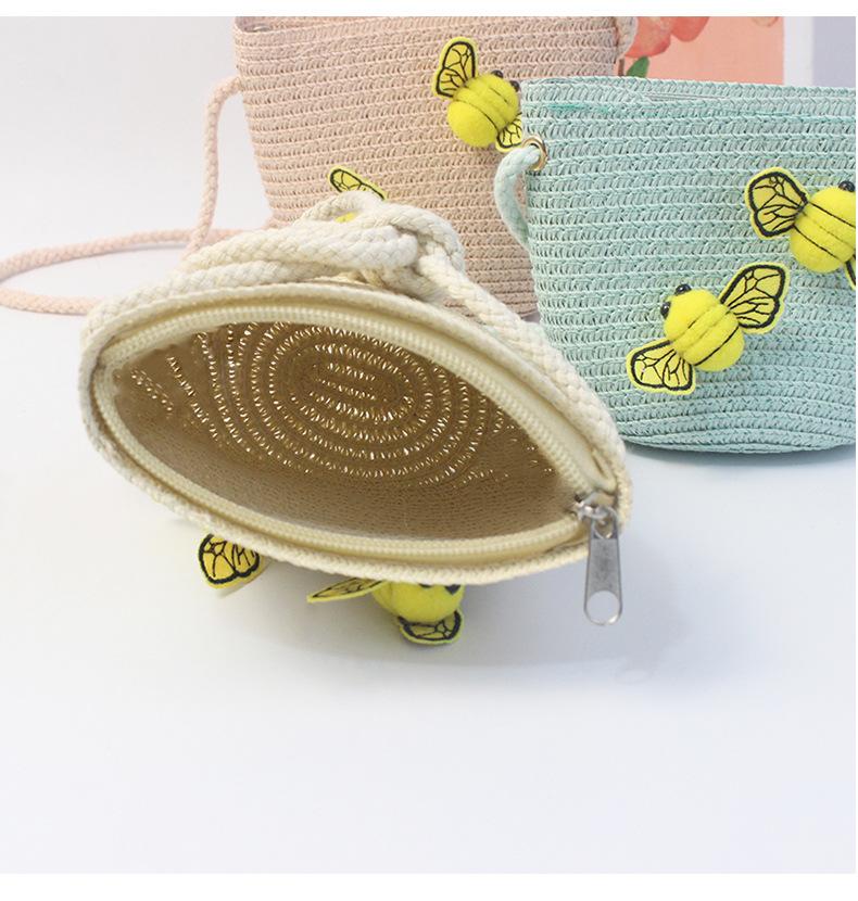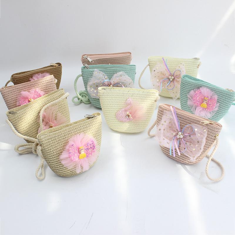 Monedero infantil tejido de paja, bolso pequeño tejido de paja, bolso de paja para niñas, moda linda de princesa, para niños y niñas, bebé, bandolera, cremallera, bolso pequeño