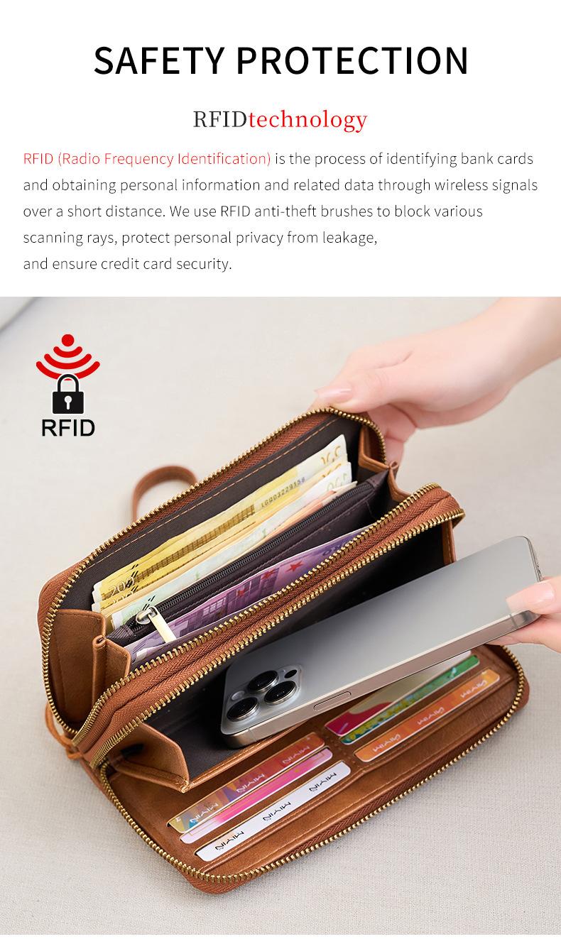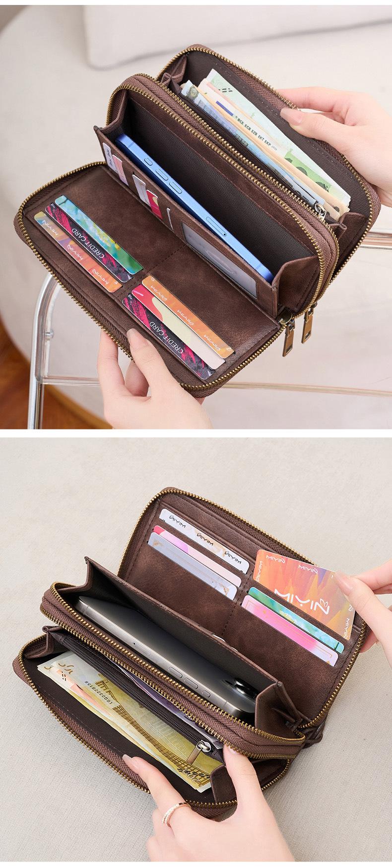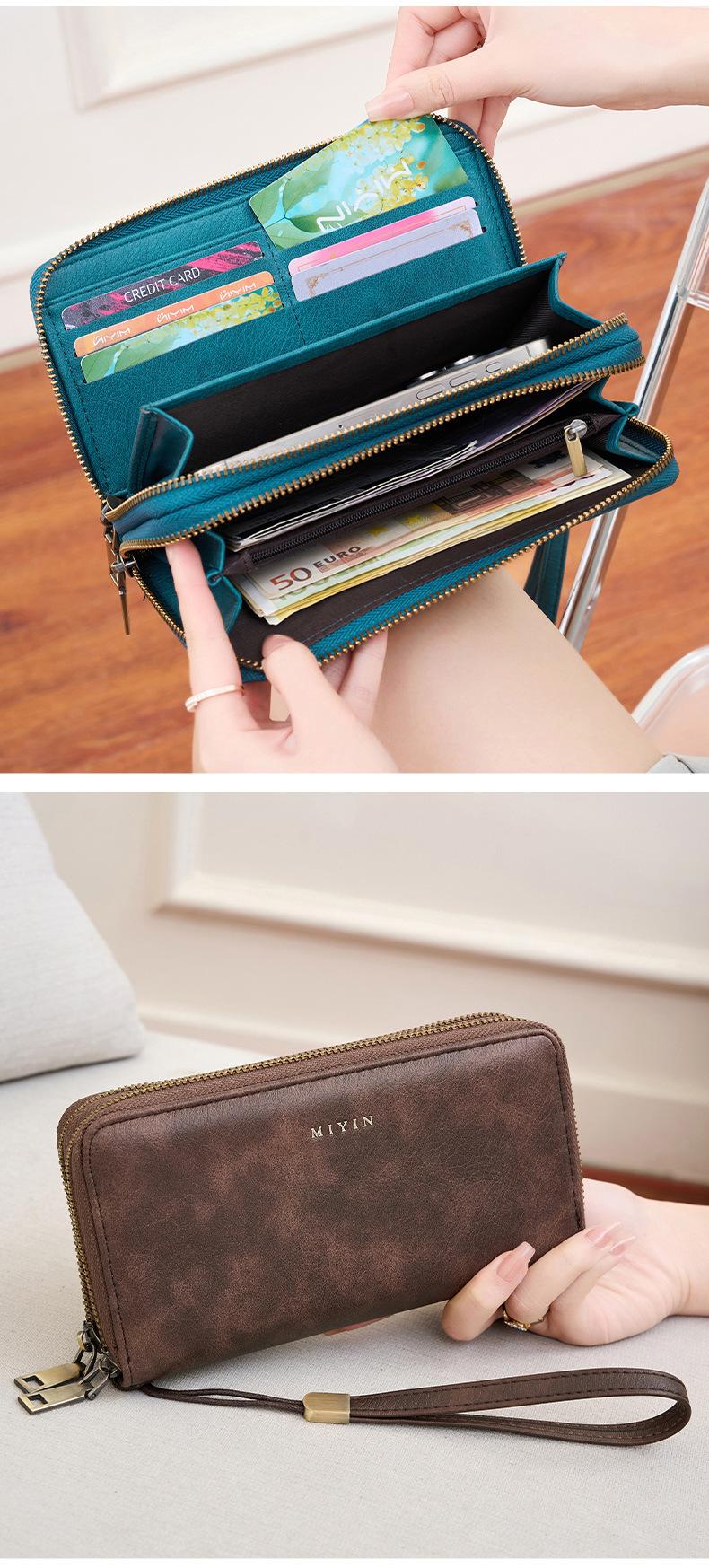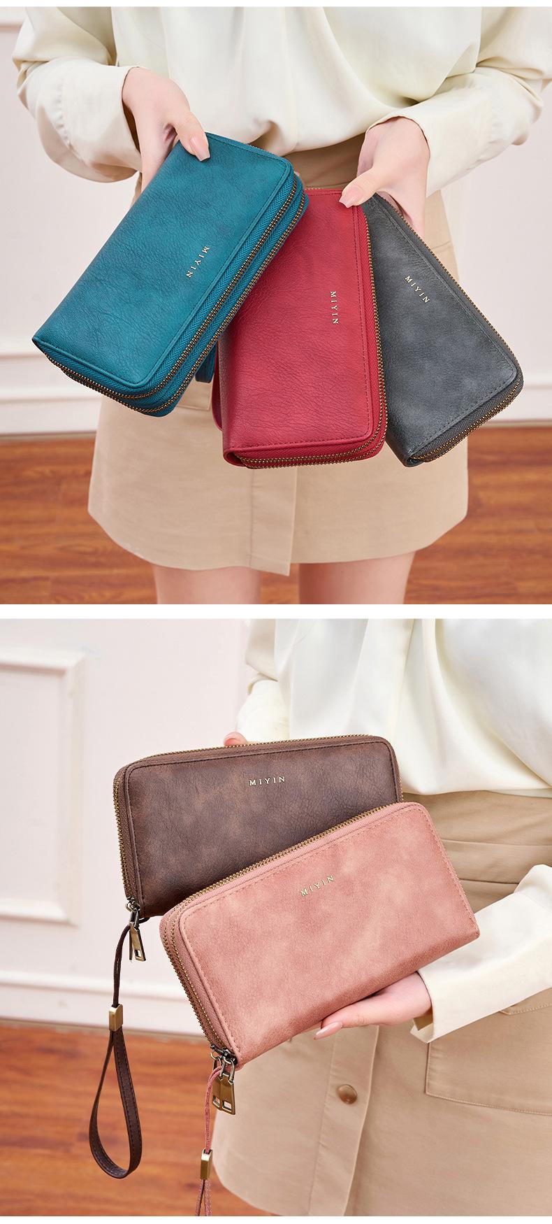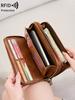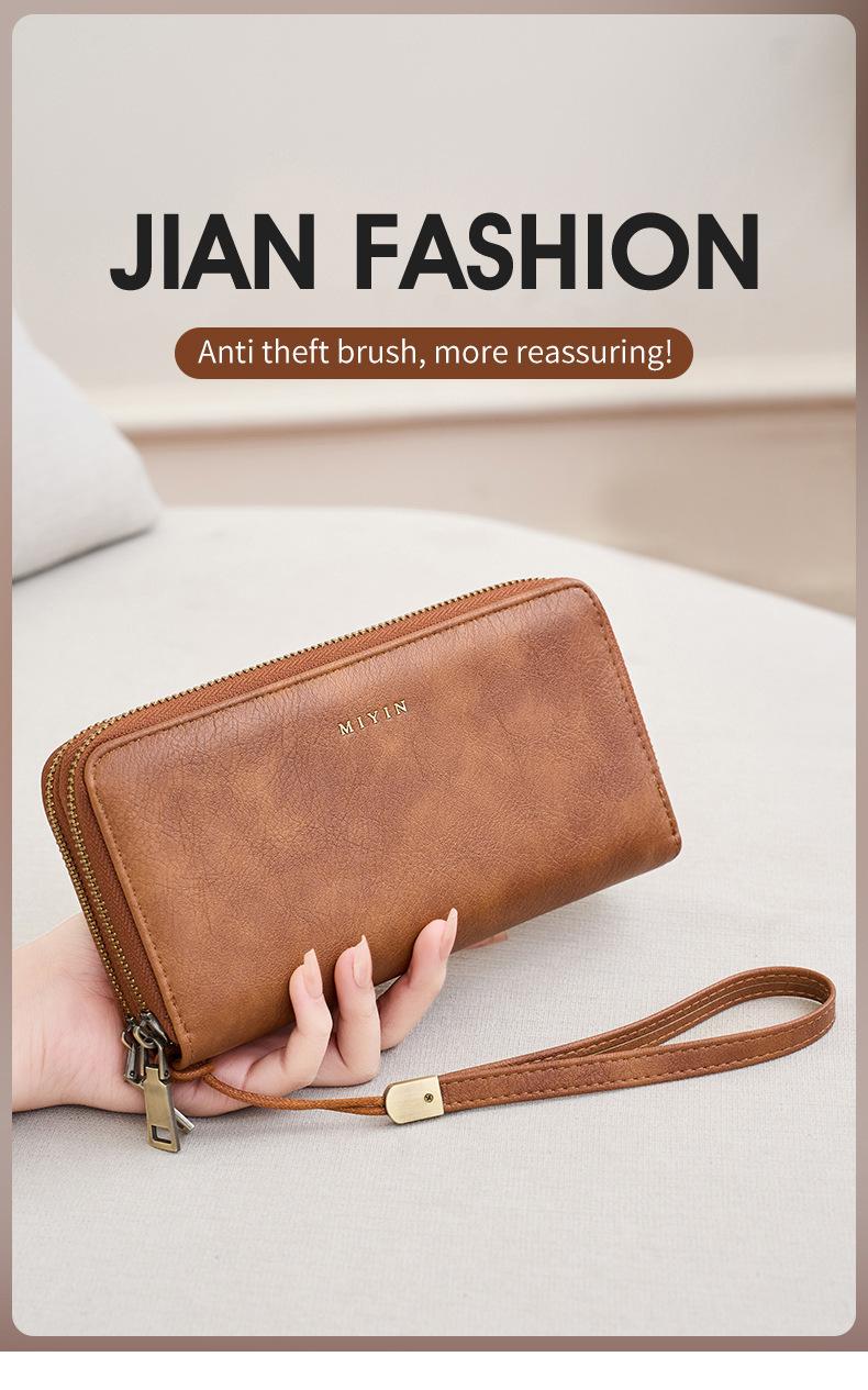 Billetera para mujer RFID nueva transfronteriza con doble cremallera, moda retro, multifuncional, larga, simple, de color puro, tipo sobre