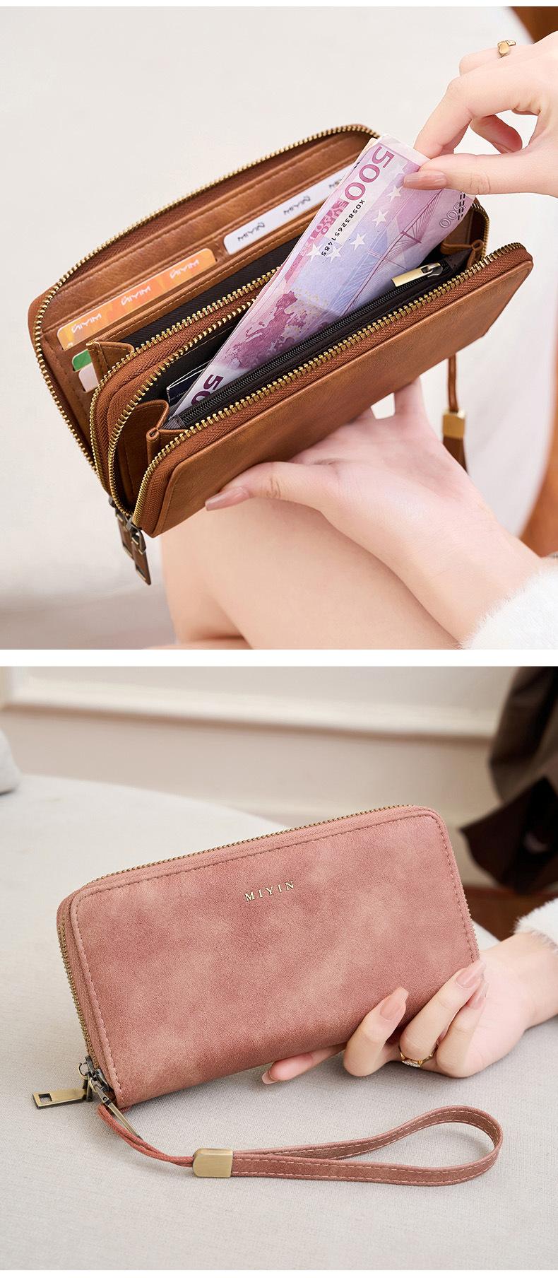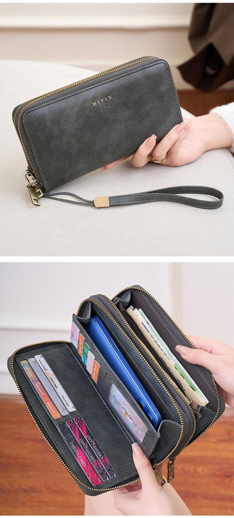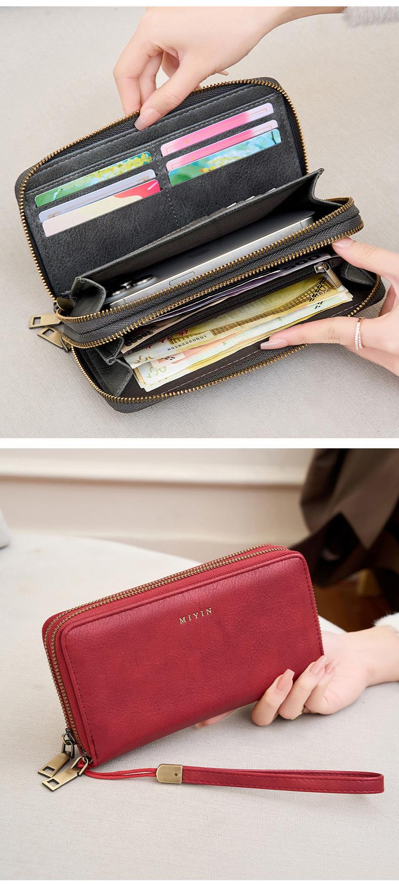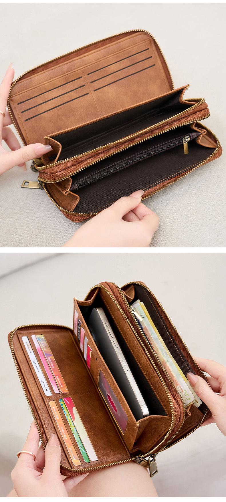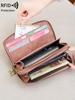 Billetera para mujer RFID nueva transfronteriza con doble cremallera, moda retro, multifuncional, larga, simple, de color puro, tipo sobre