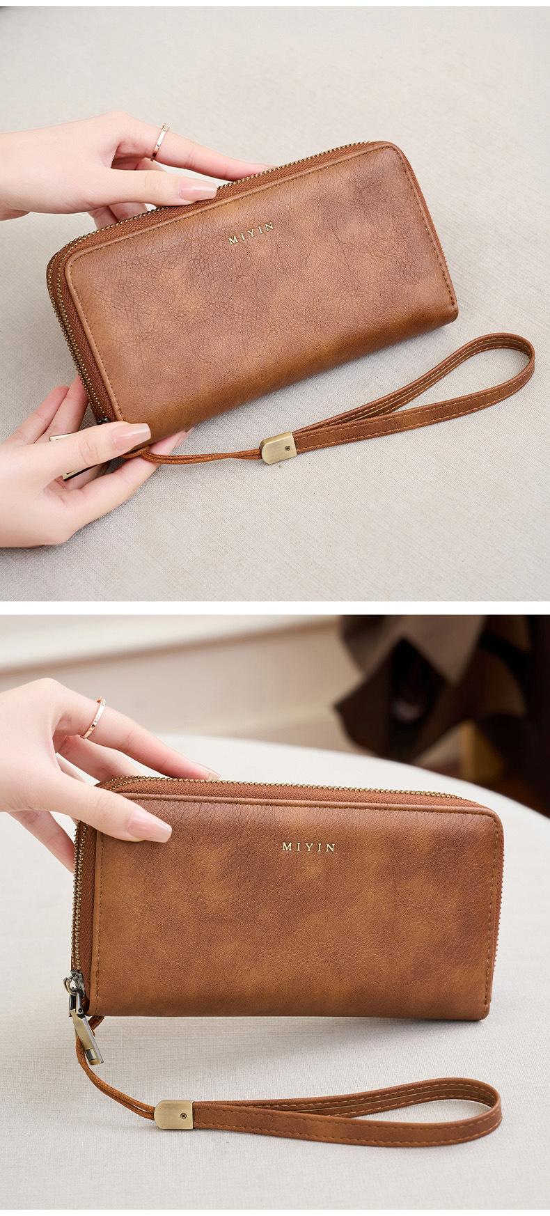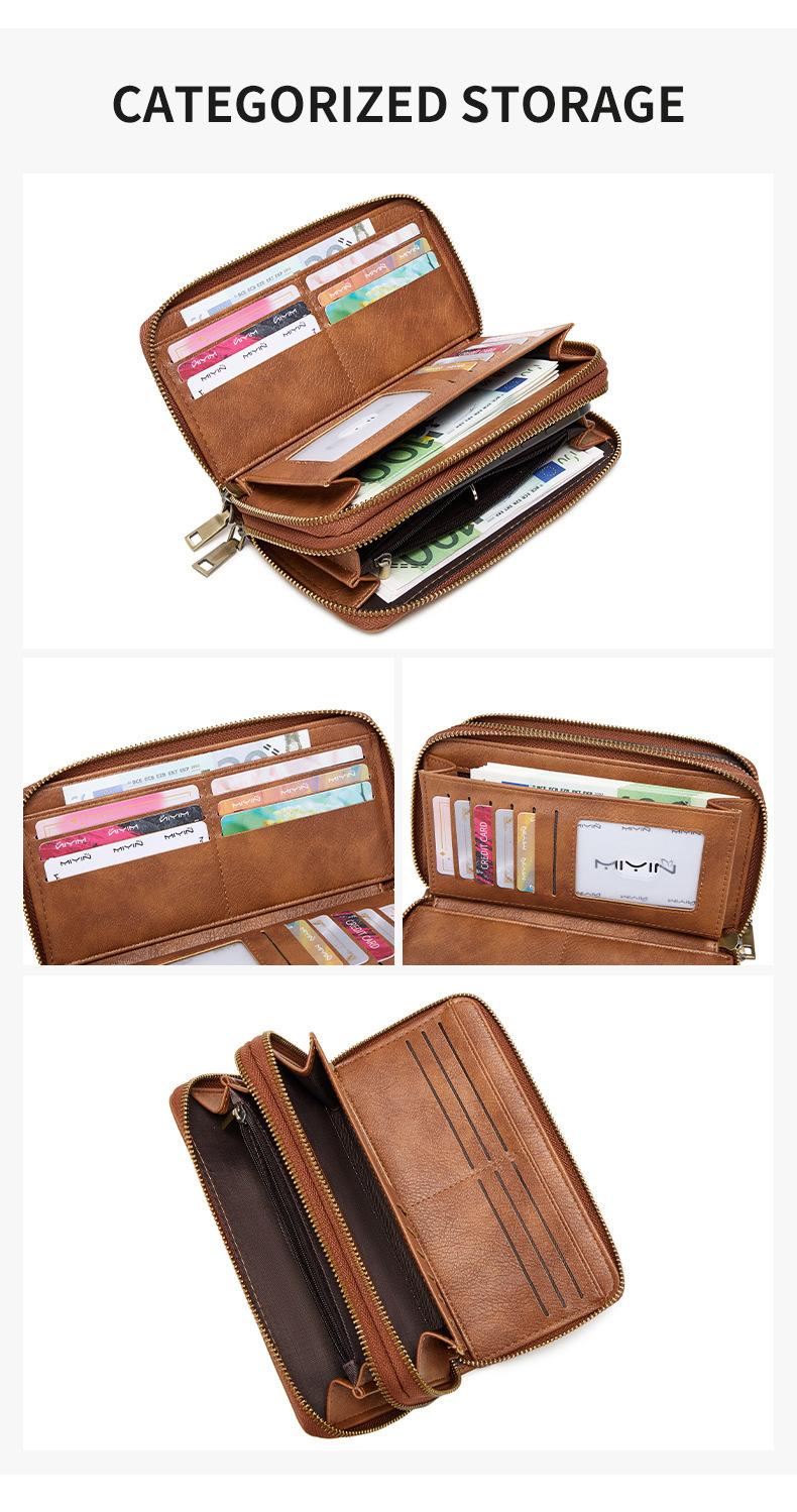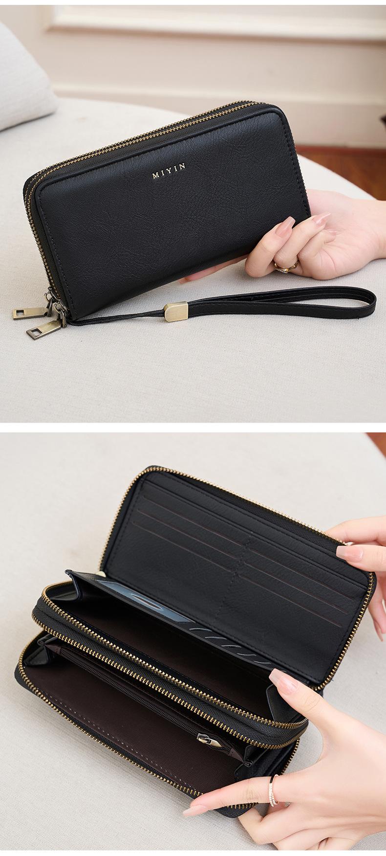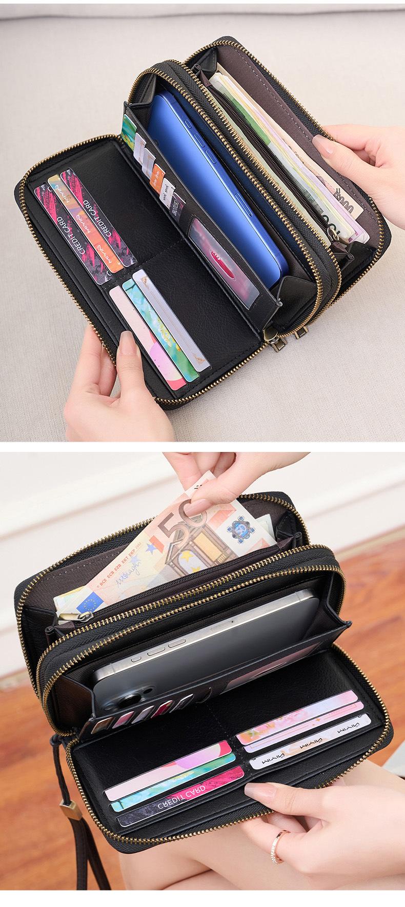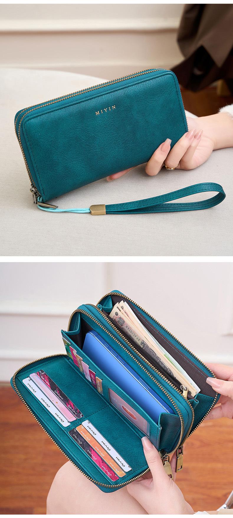 Billetera para mujer RFID nueva transfronteriza con doble cremallera, moda retro, multifuncional, larga, simple, de color puro, tipo sobre