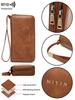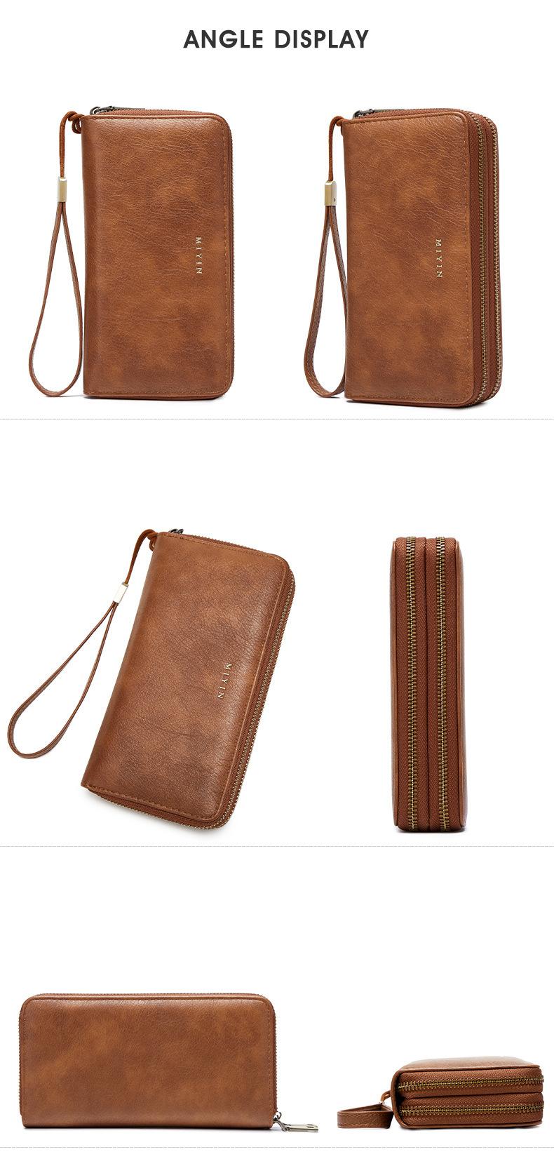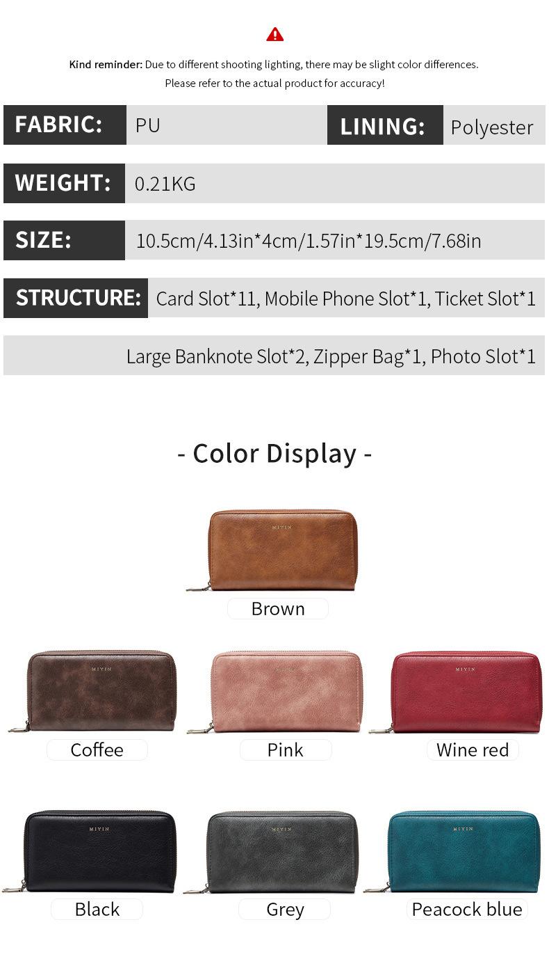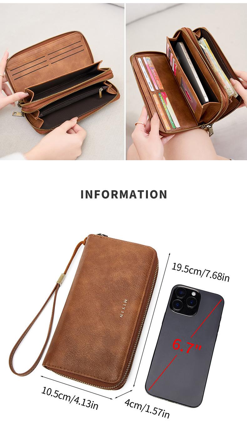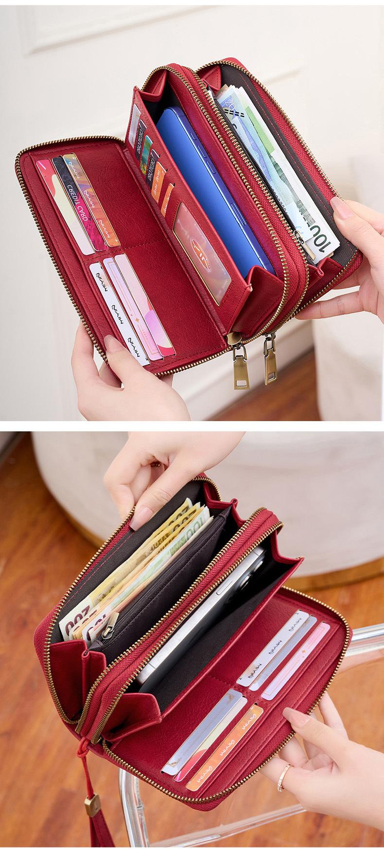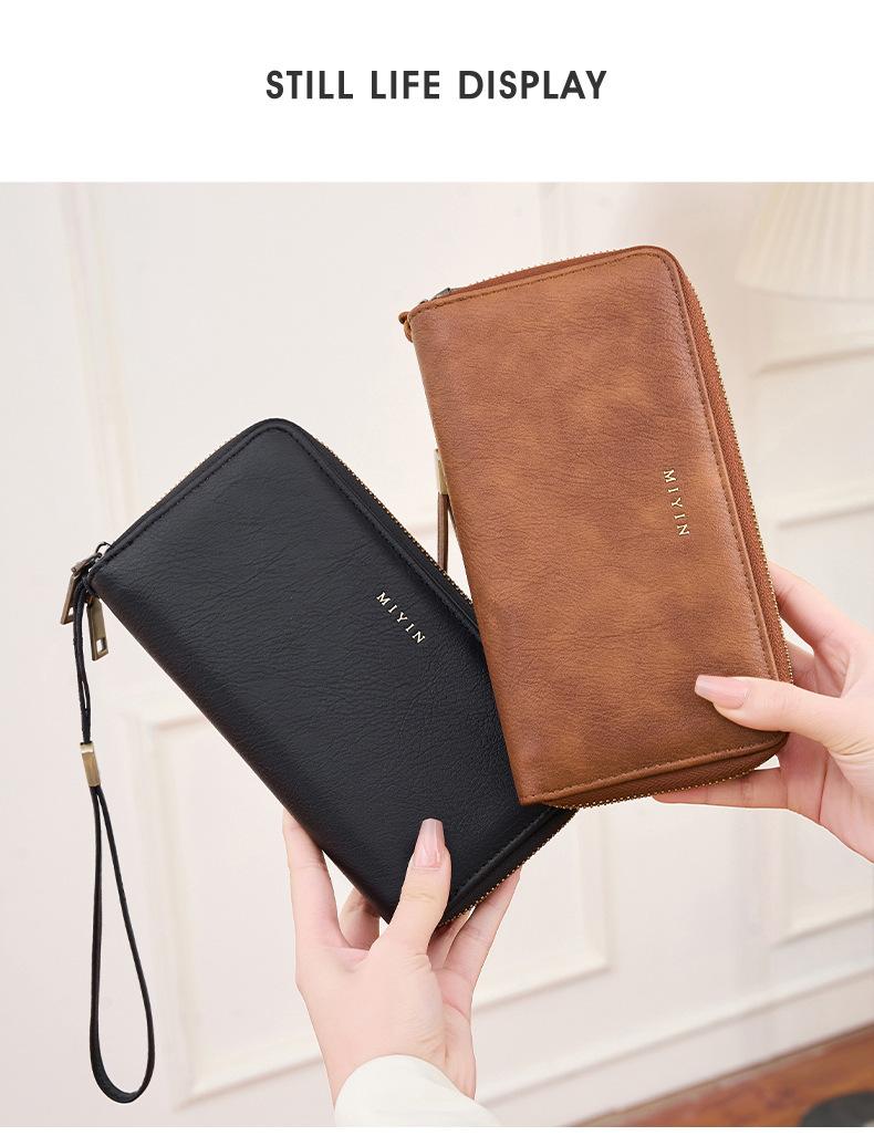 Billetera para mujer RFID nueva transfronteriza con doble cremallera, moda retro, multifuncional, larga, simple, de color puro, tipo sobre