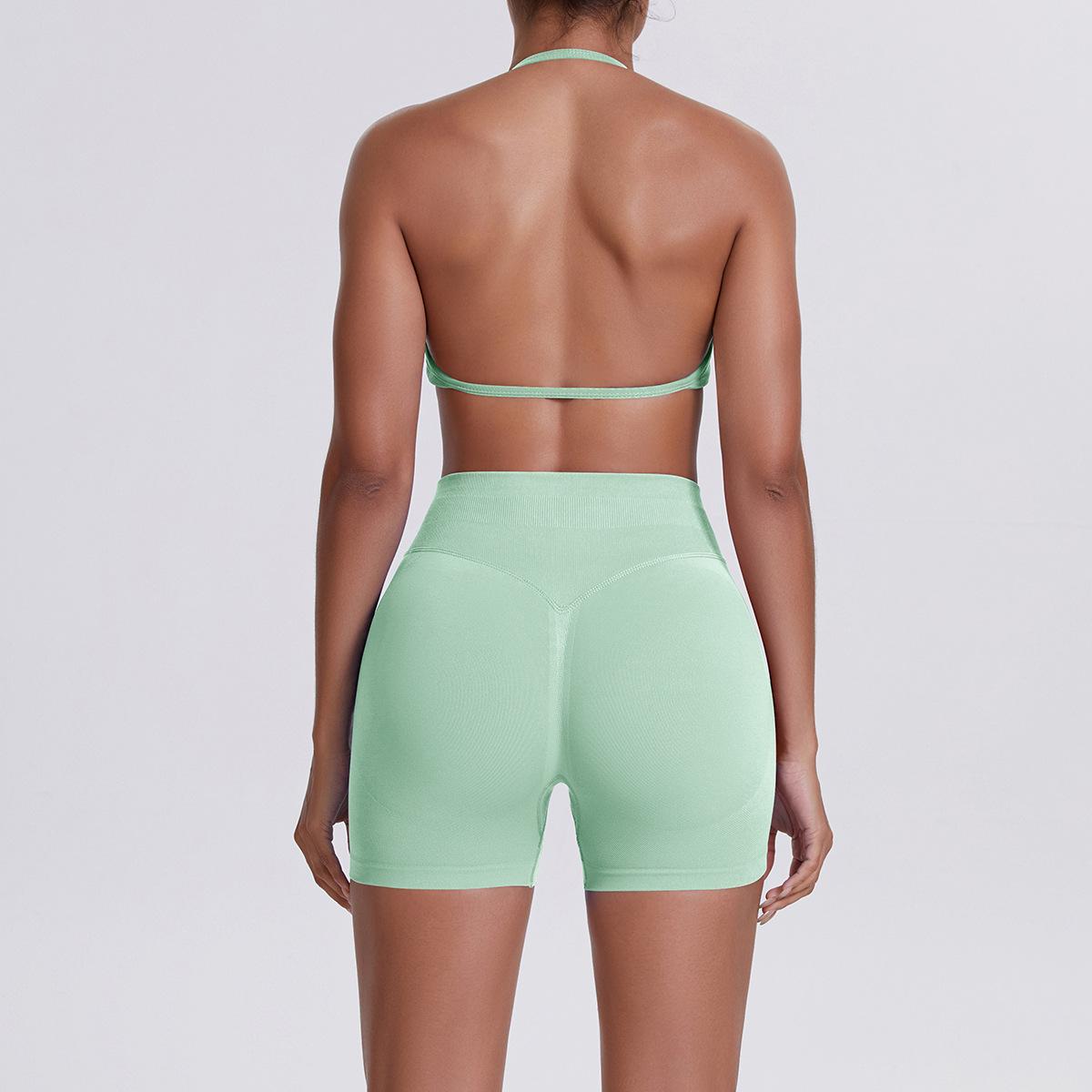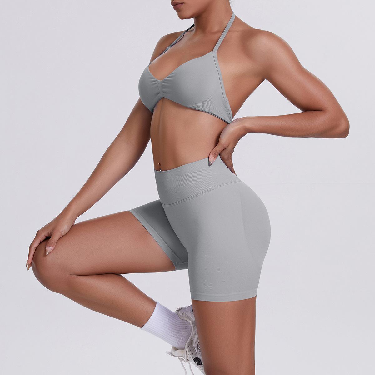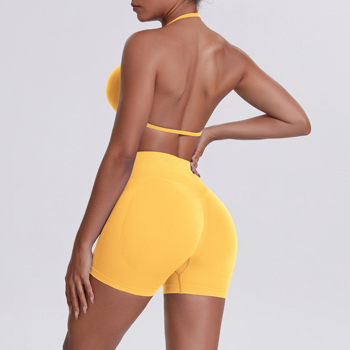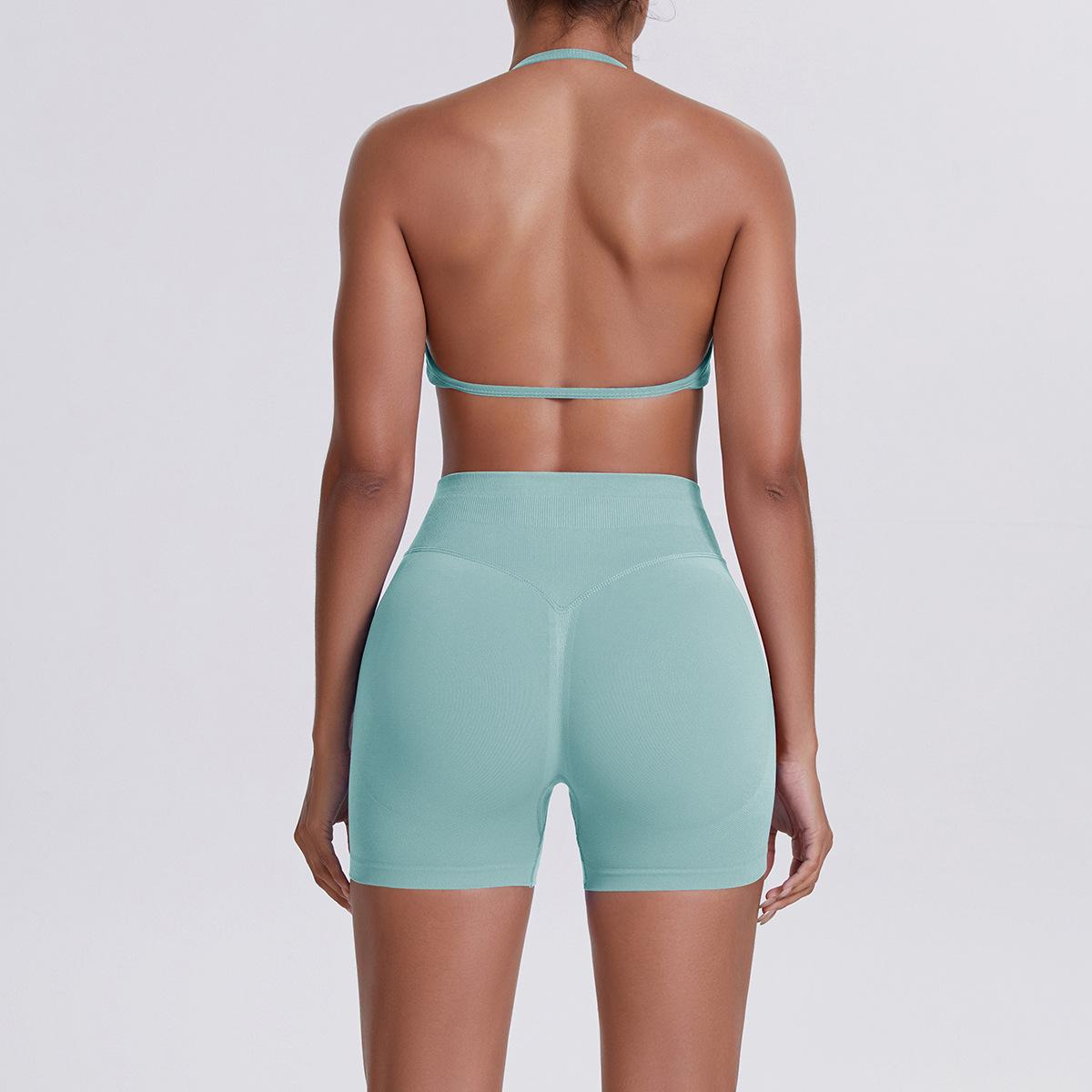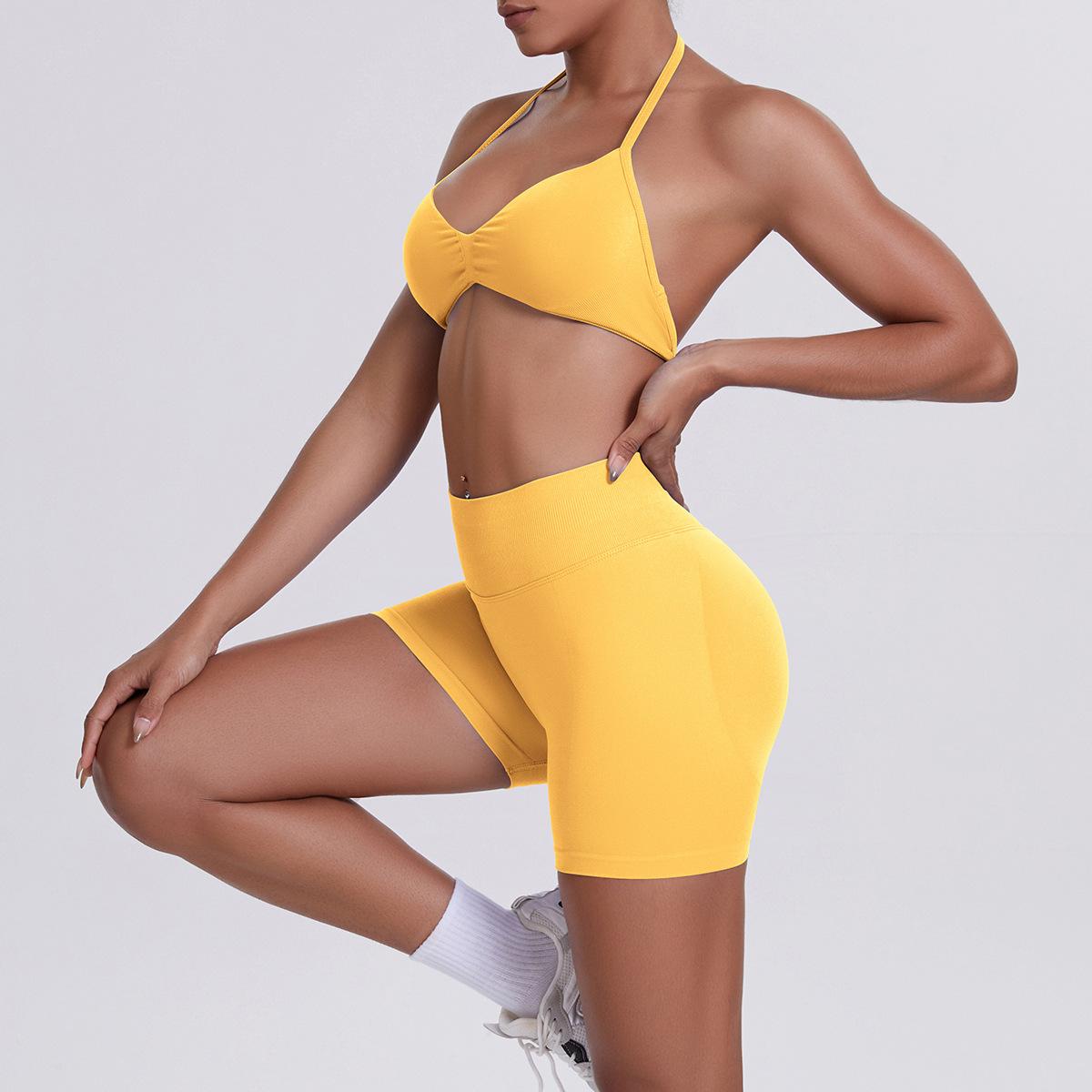 Sujetador halter de espalda hermosa de color sólido sin costuras transfronterizo, shorts, traje de yoga ajustado para correr, fitness, deportes, conjunto de dos piezas