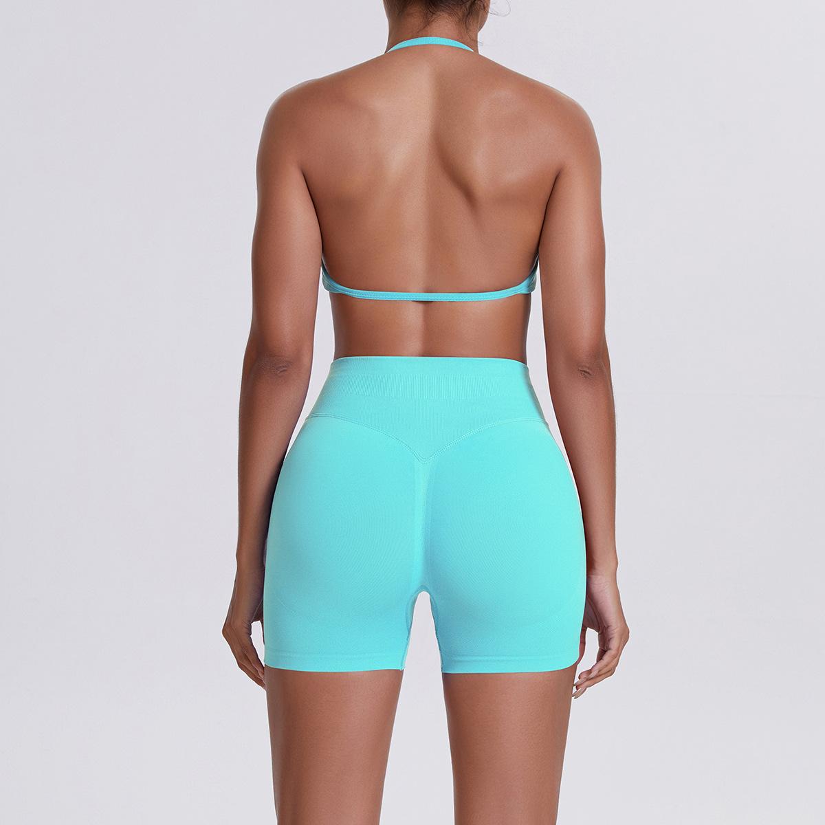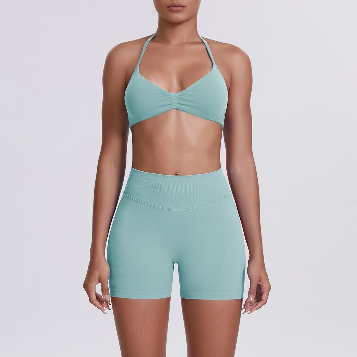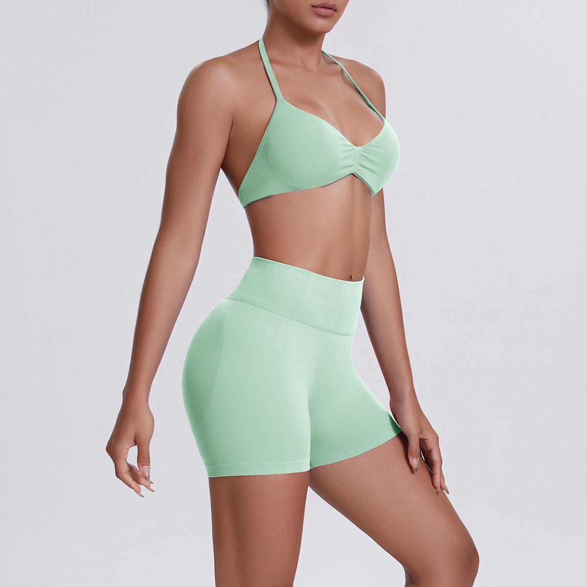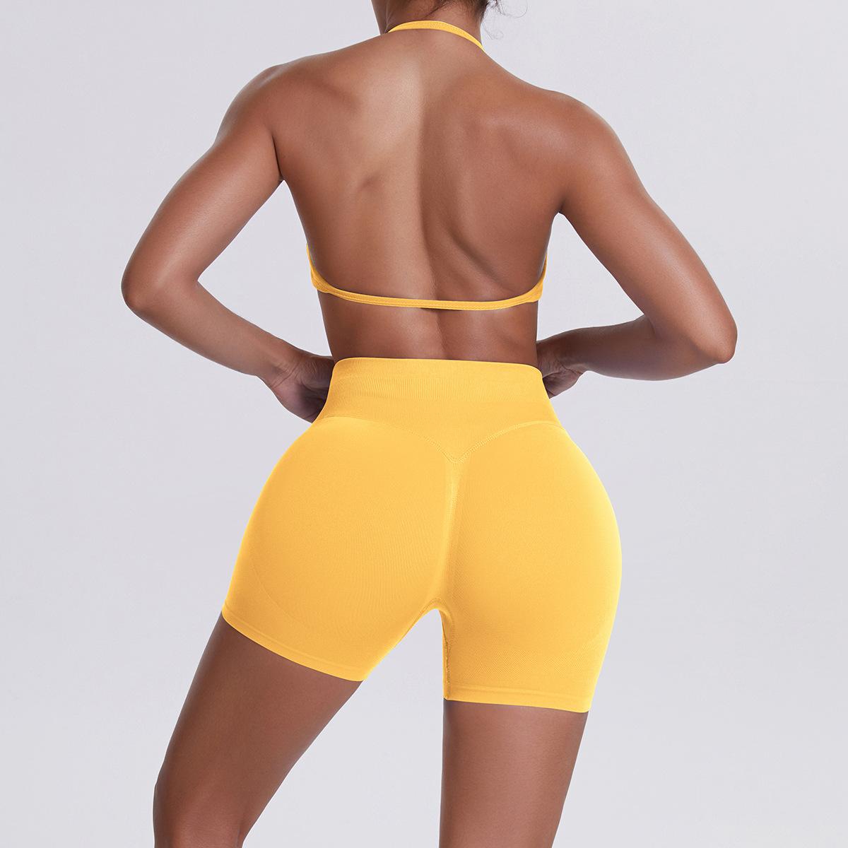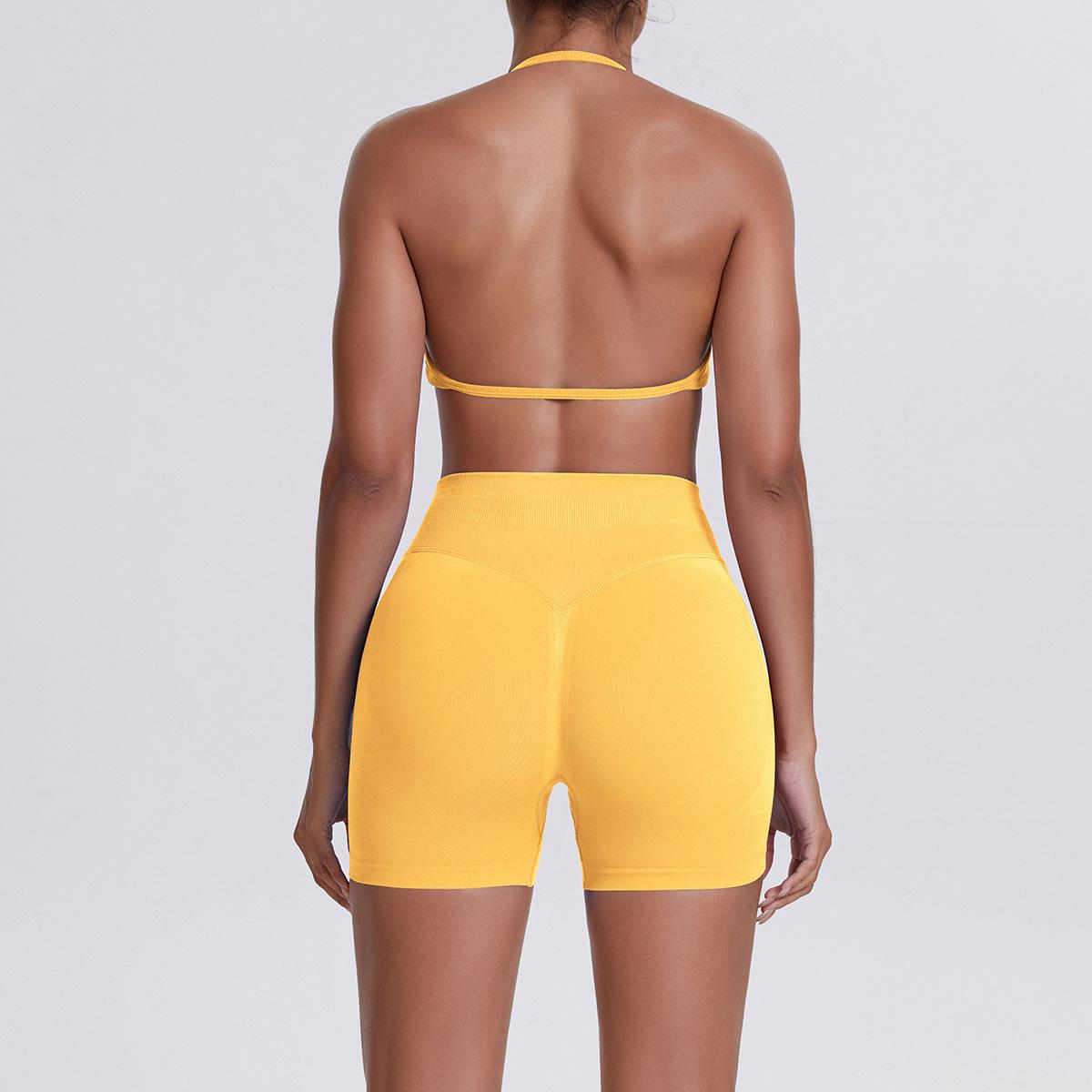 Sujetador halter de espalda hermosa de color sólido sin costuras transfronterizo, shorts, traje de yoga ajustado para correr, fitness, deportes, conjunto de dos piezas