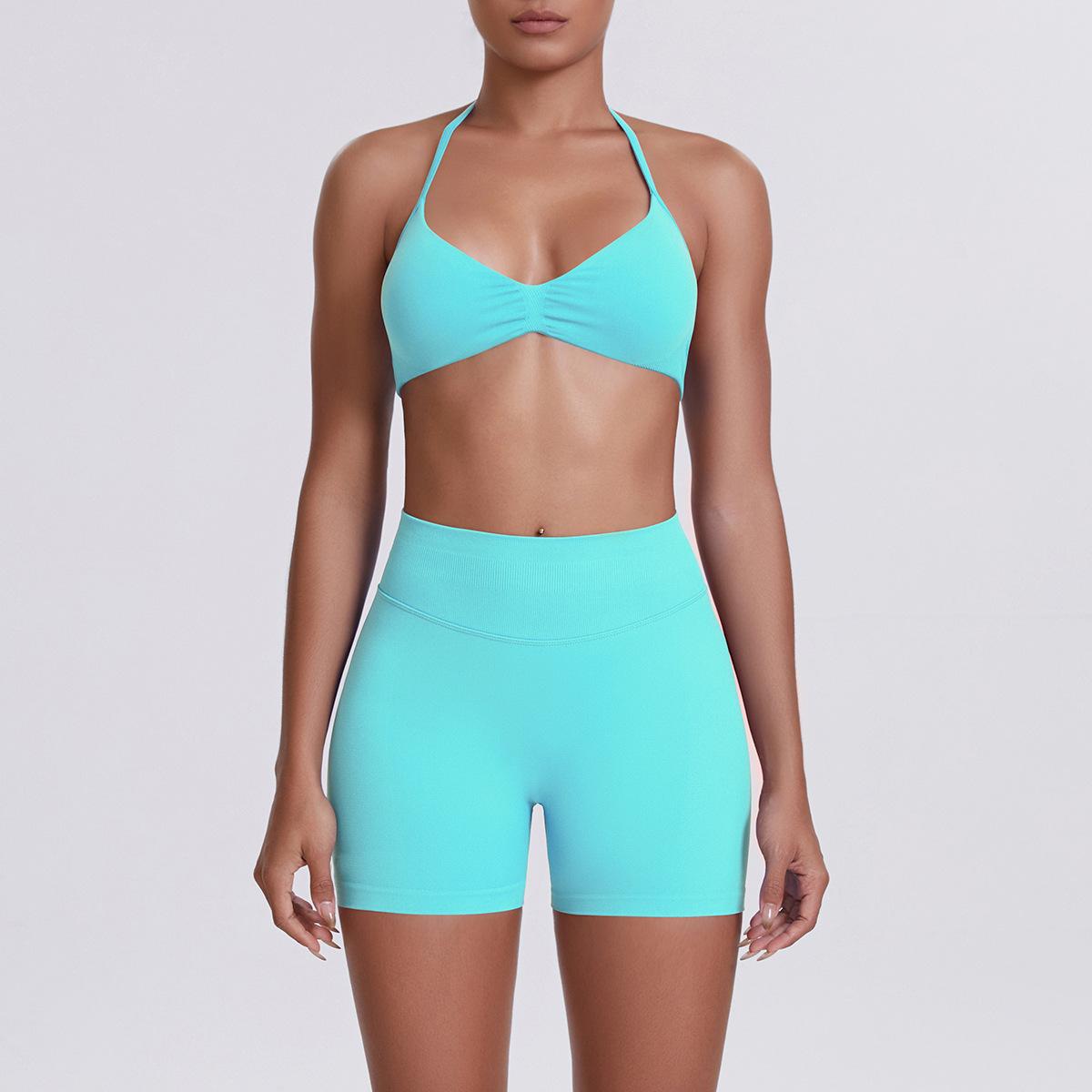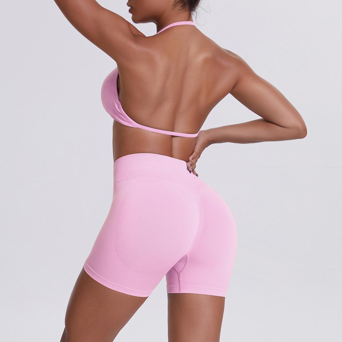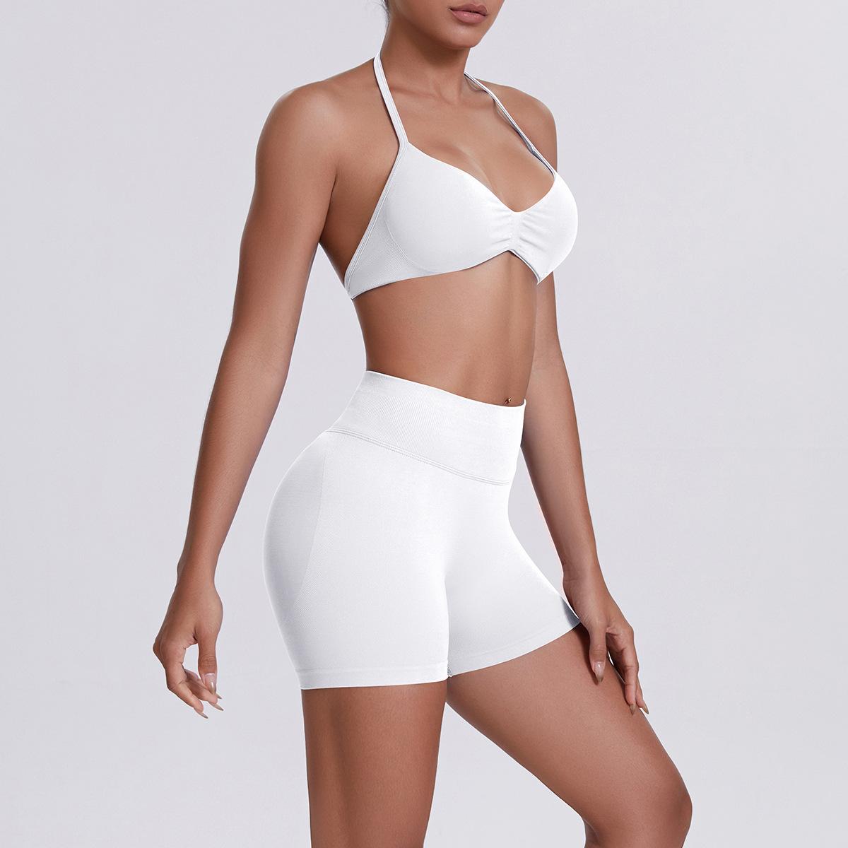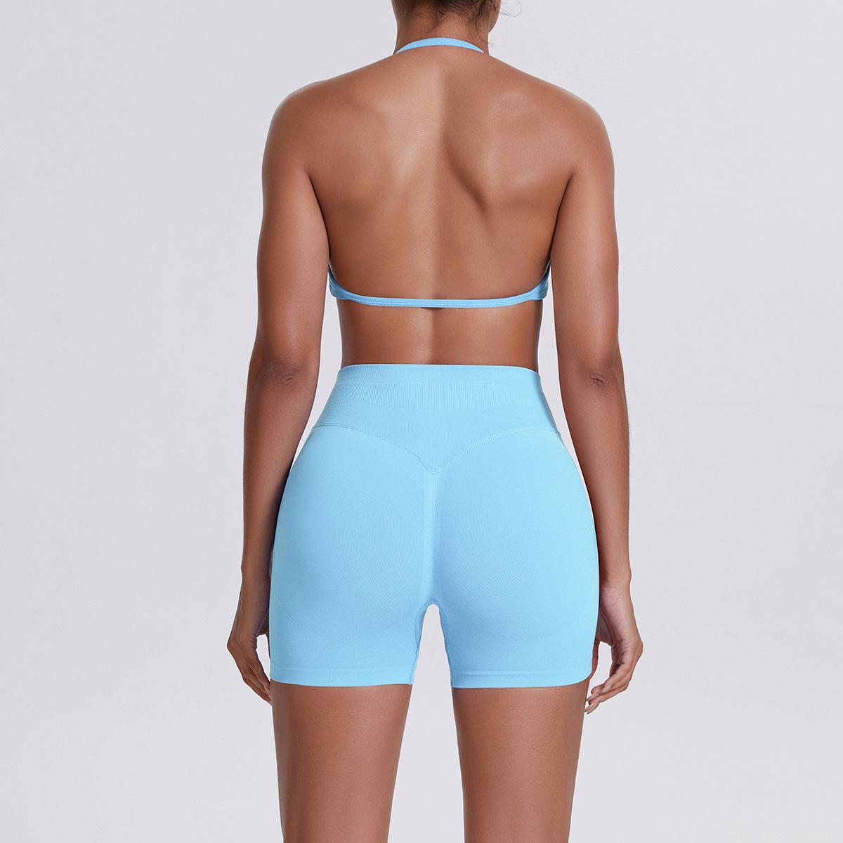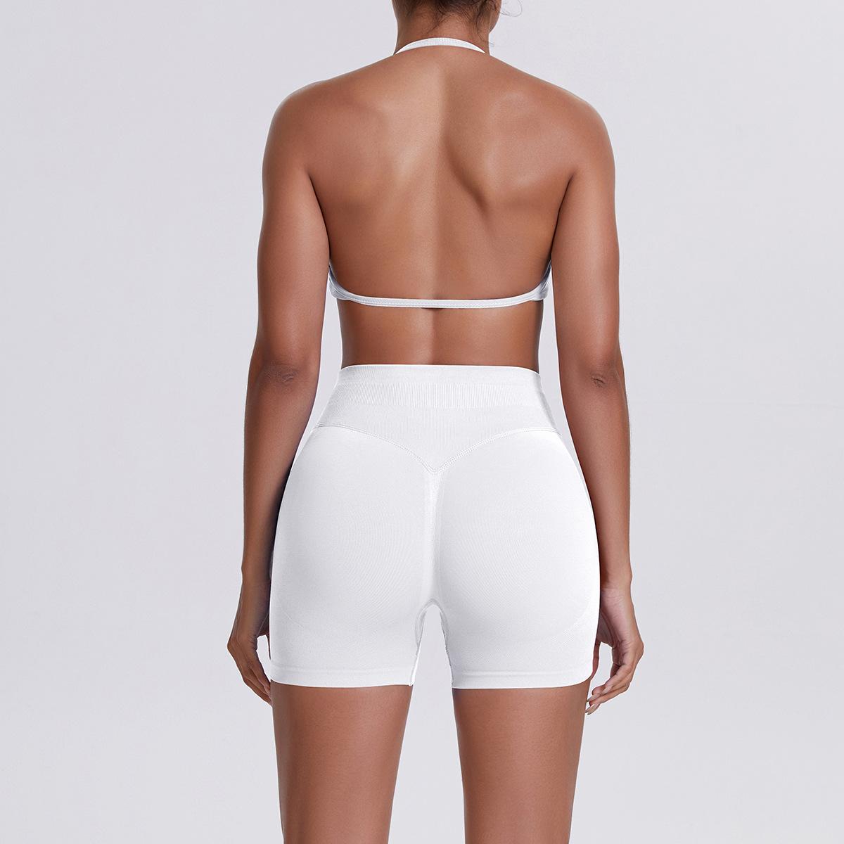 Sujetador halter de espalda hermosa de color sólido sin costuras transfronterizo, shorts, traje de yoga ajustado para correr, fitness, deportes, conjunto de dos piezas