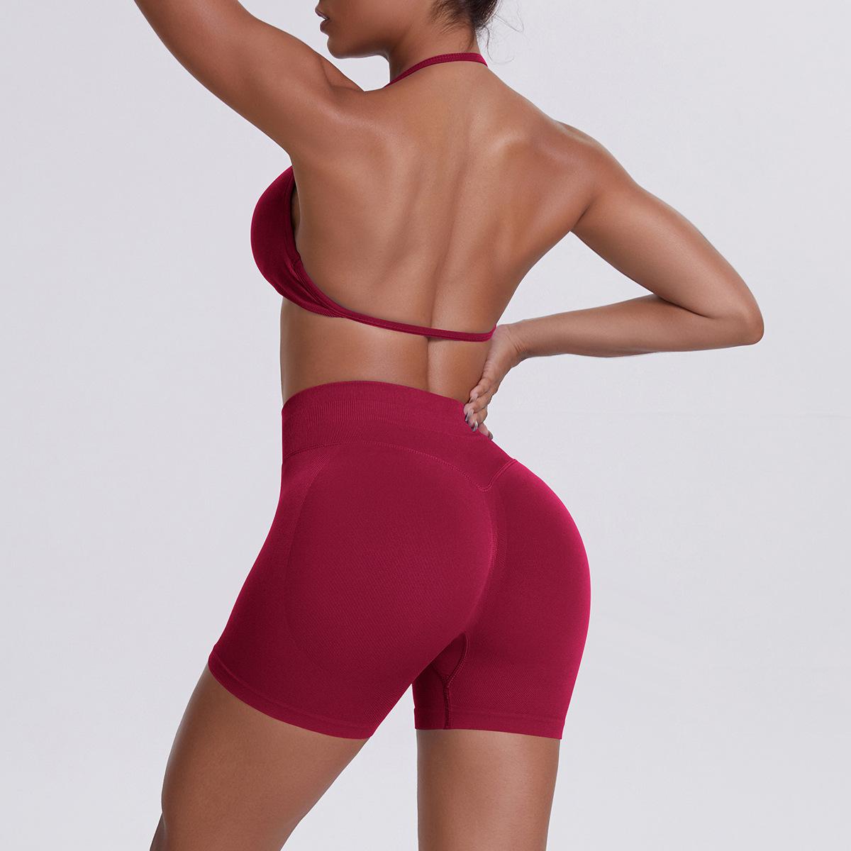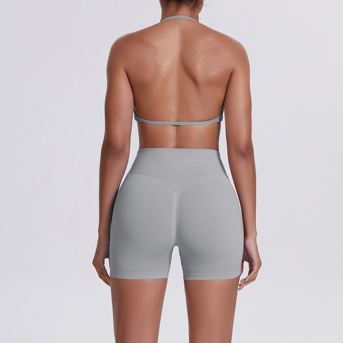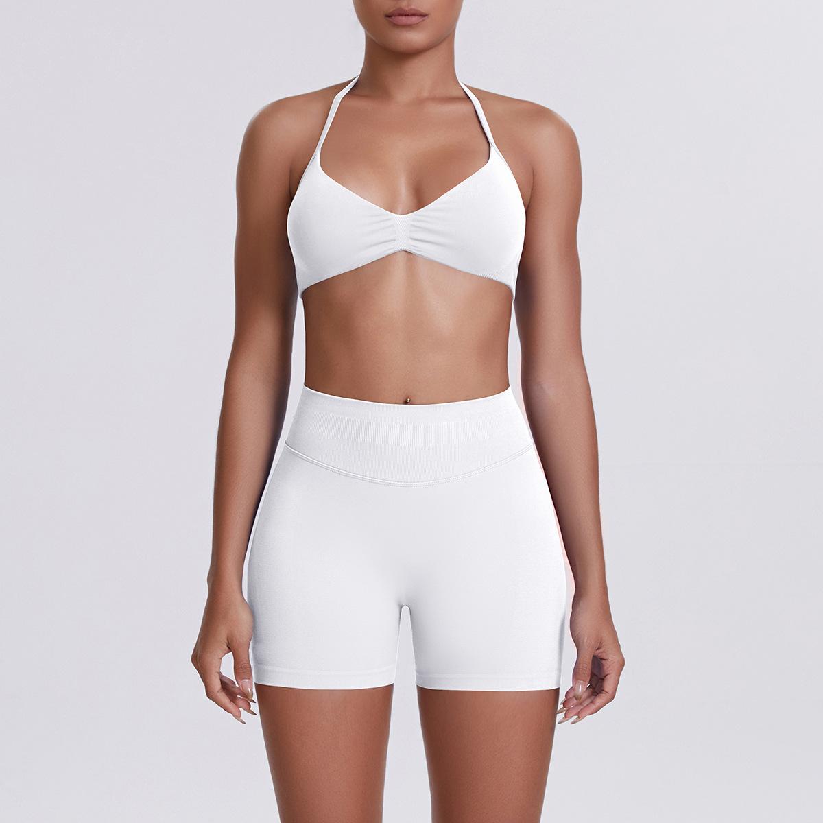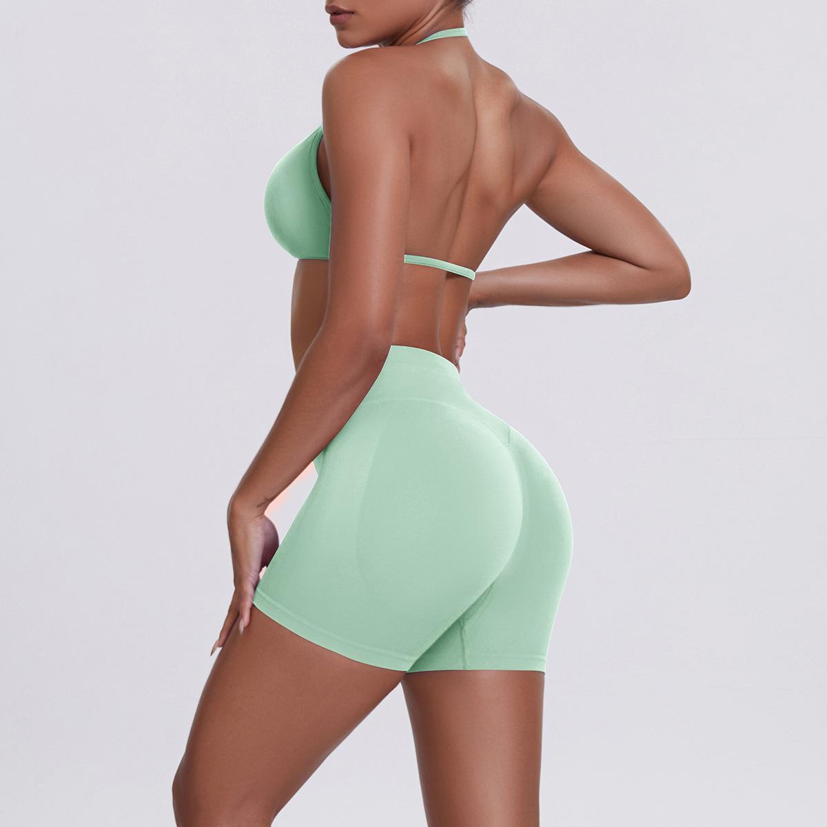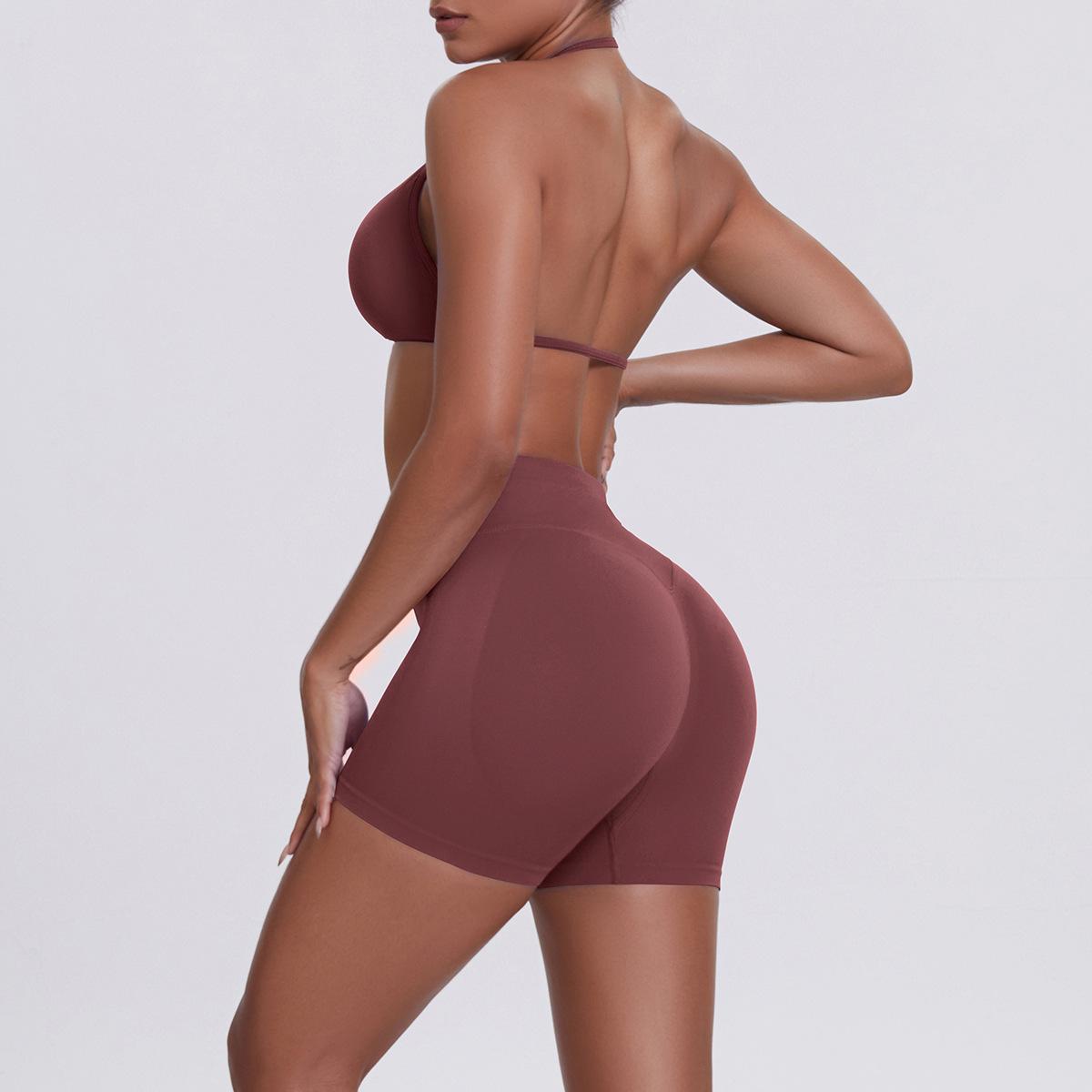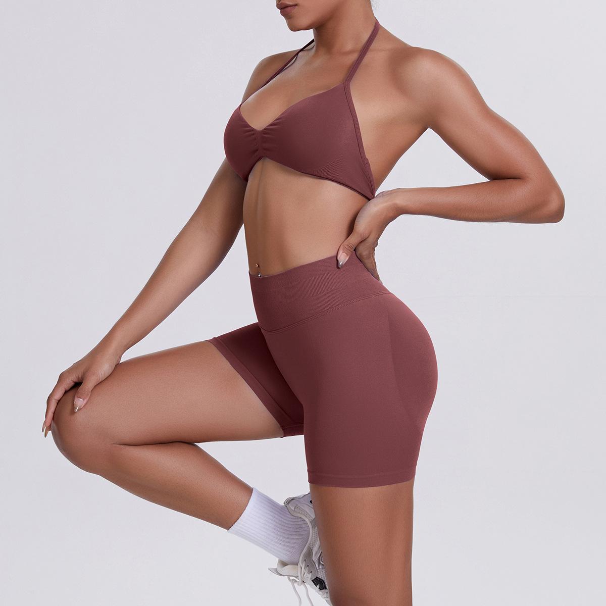 Sujetador halter de espalda hermosa de color sólido sin costuras transfronterizo, shorts, traje de yoga ajustado para correr, fitness, deportes, conjunto de dos piezas