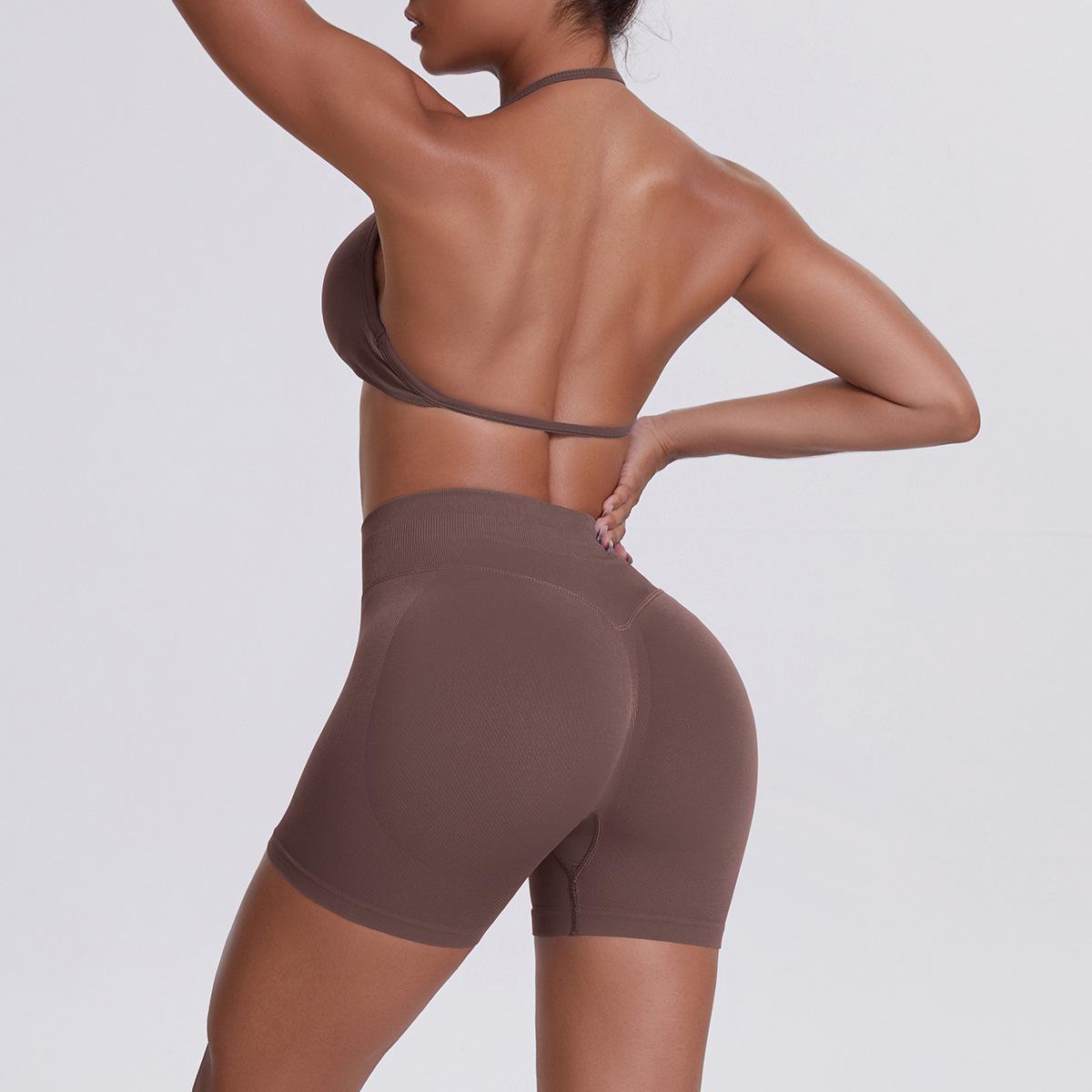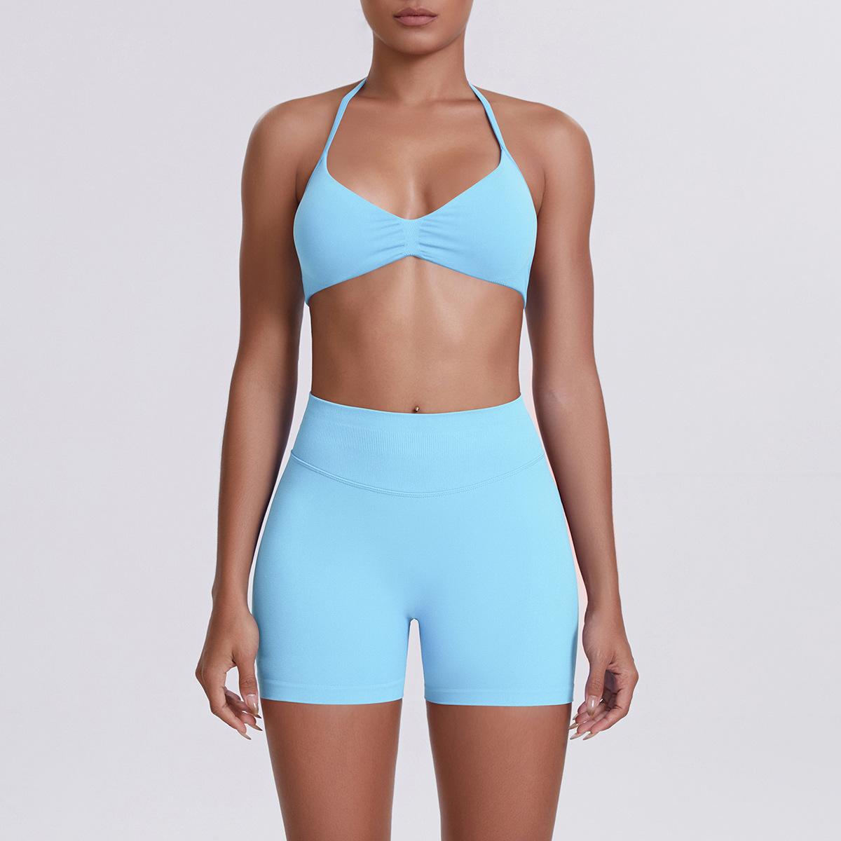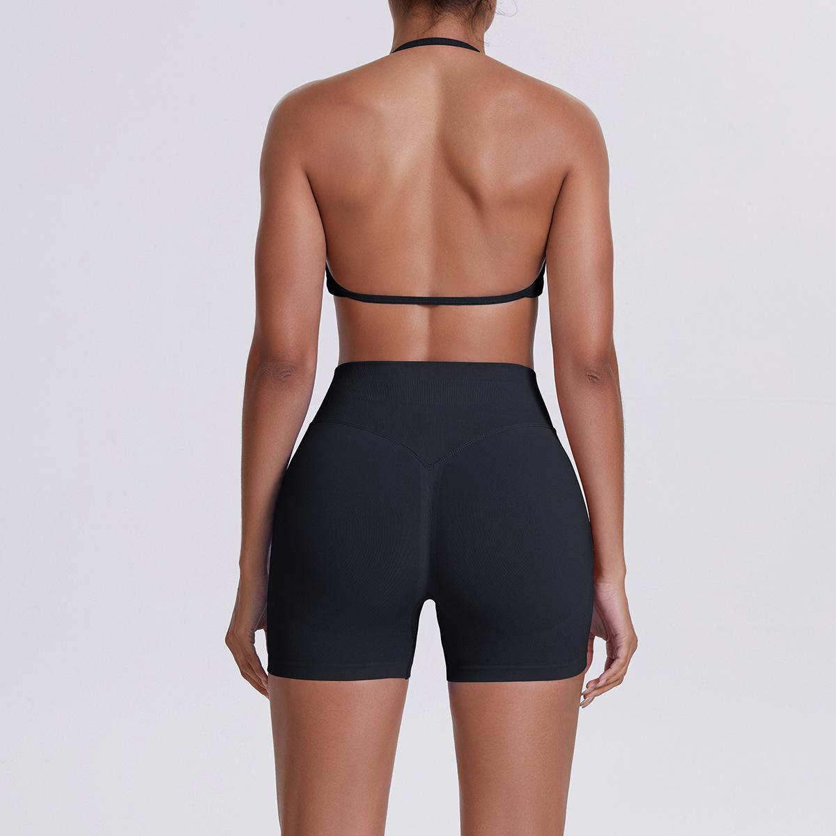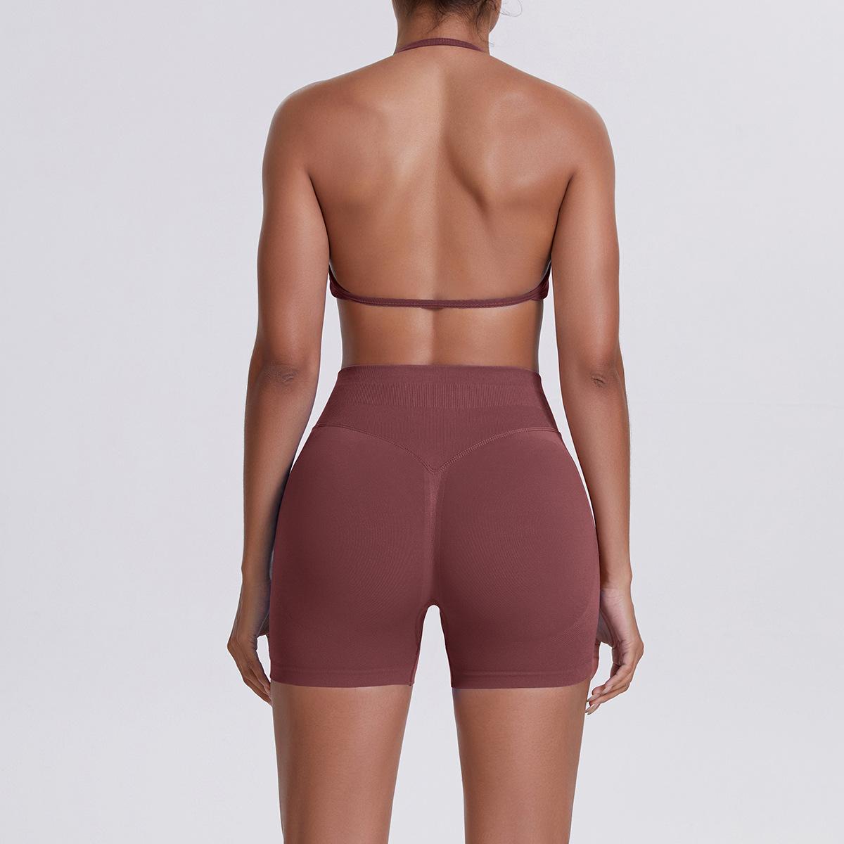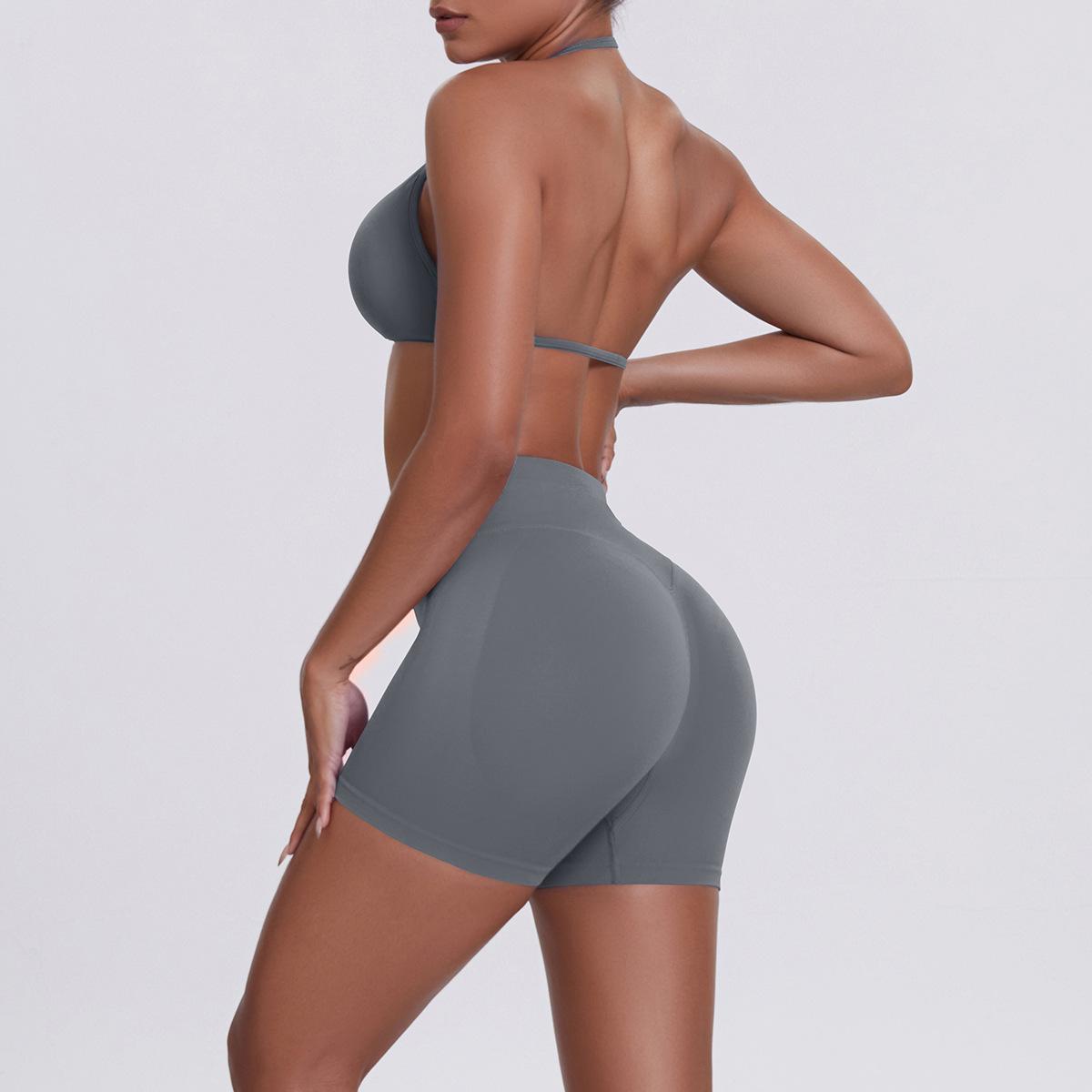Sujetador halter de espalda hermosa de color sólido sin costuras transfronterizo, shorts, traje de yoga ajustado para correr, fitness, deportes, conjunto de dos piezas