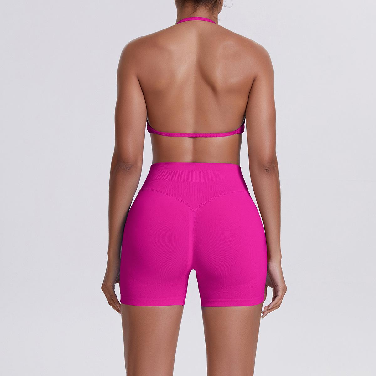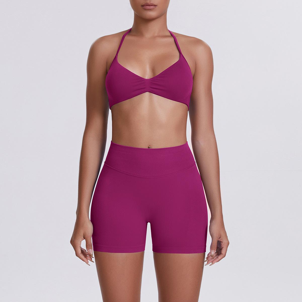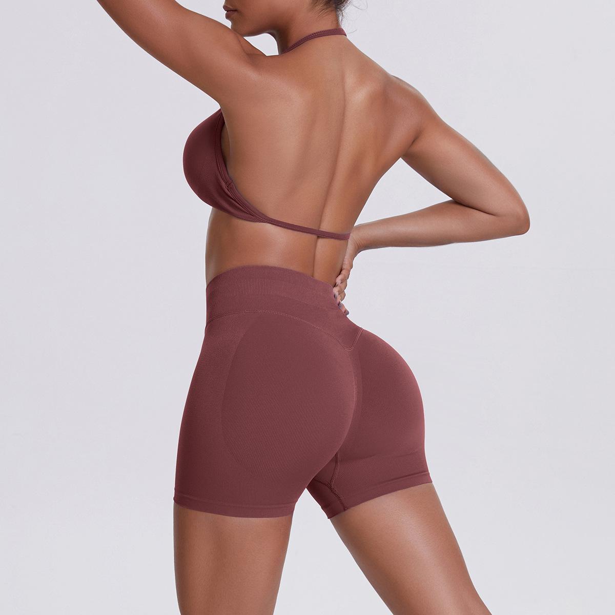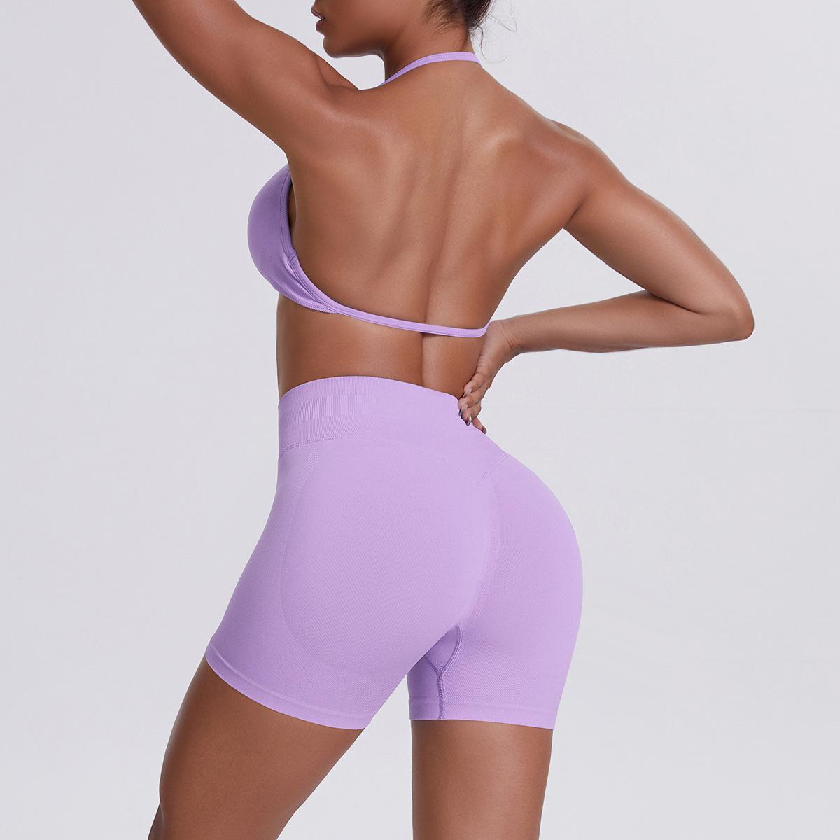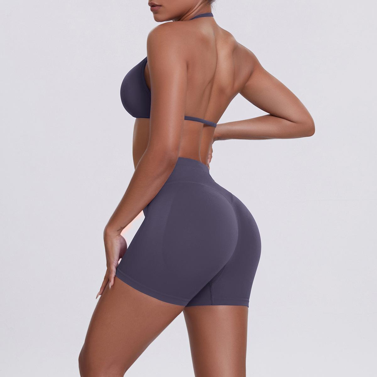 Sujetador halter de espalda hermosa de color sólido sin costuras transfronterizo, shorts, traje de yoga ajustado para correr, fitness, deportes, conjunto de dos piezas