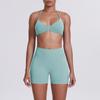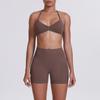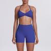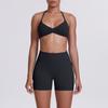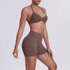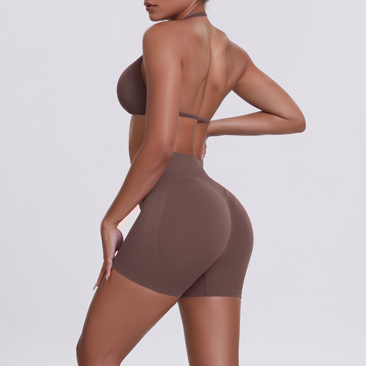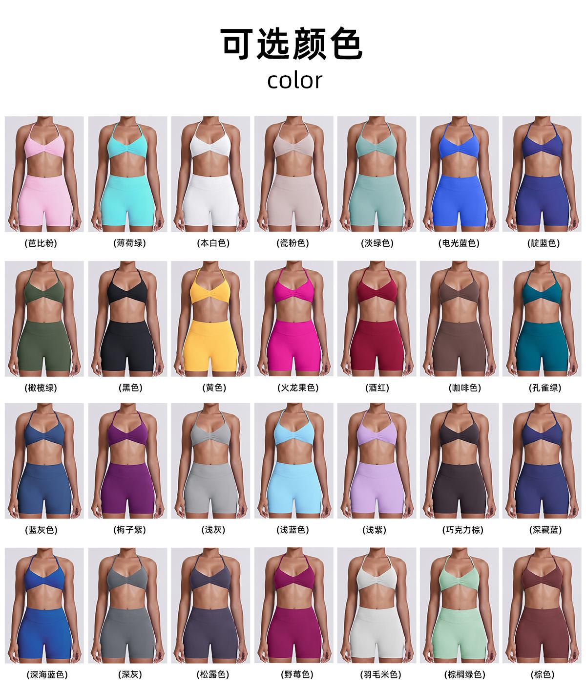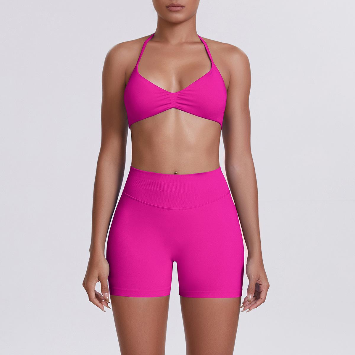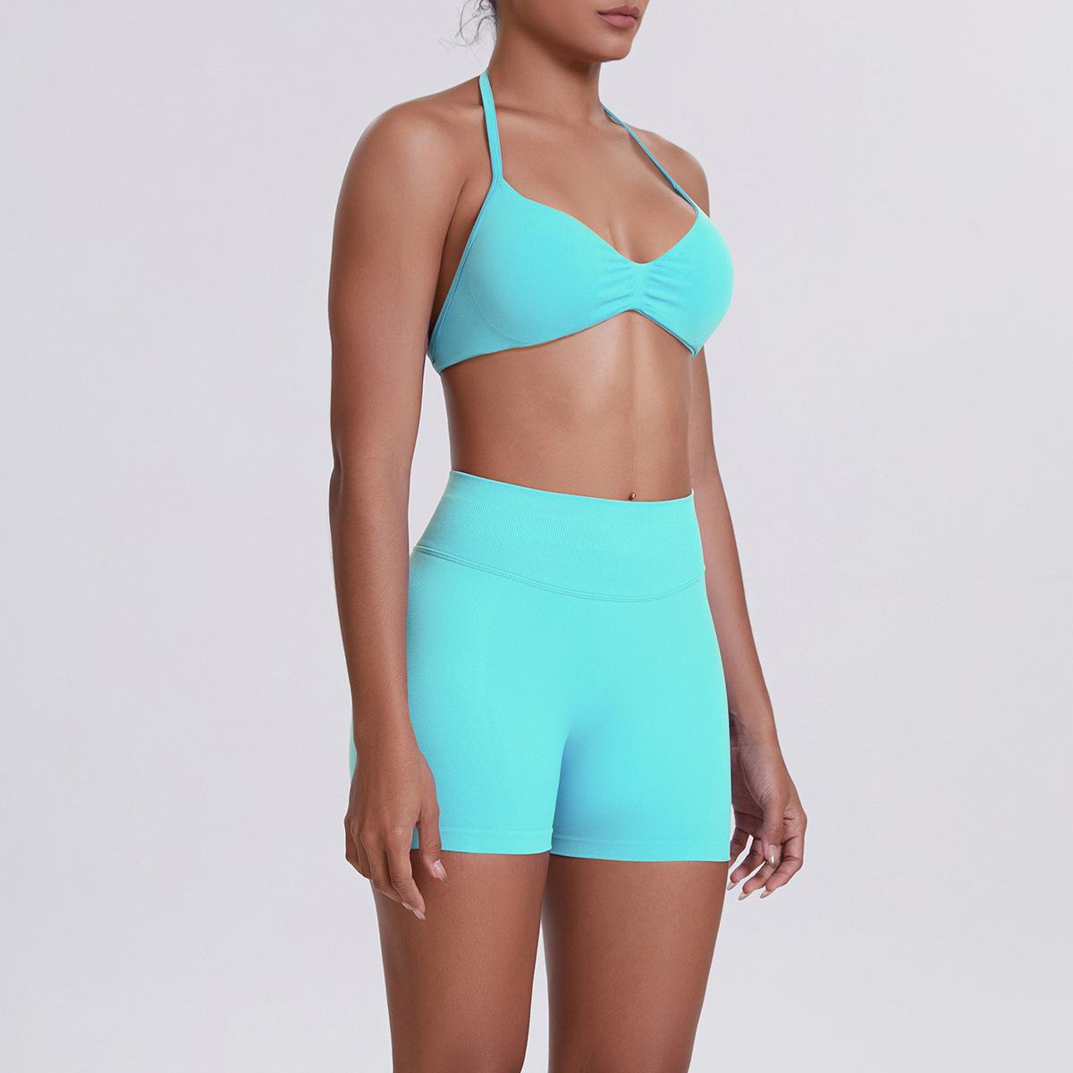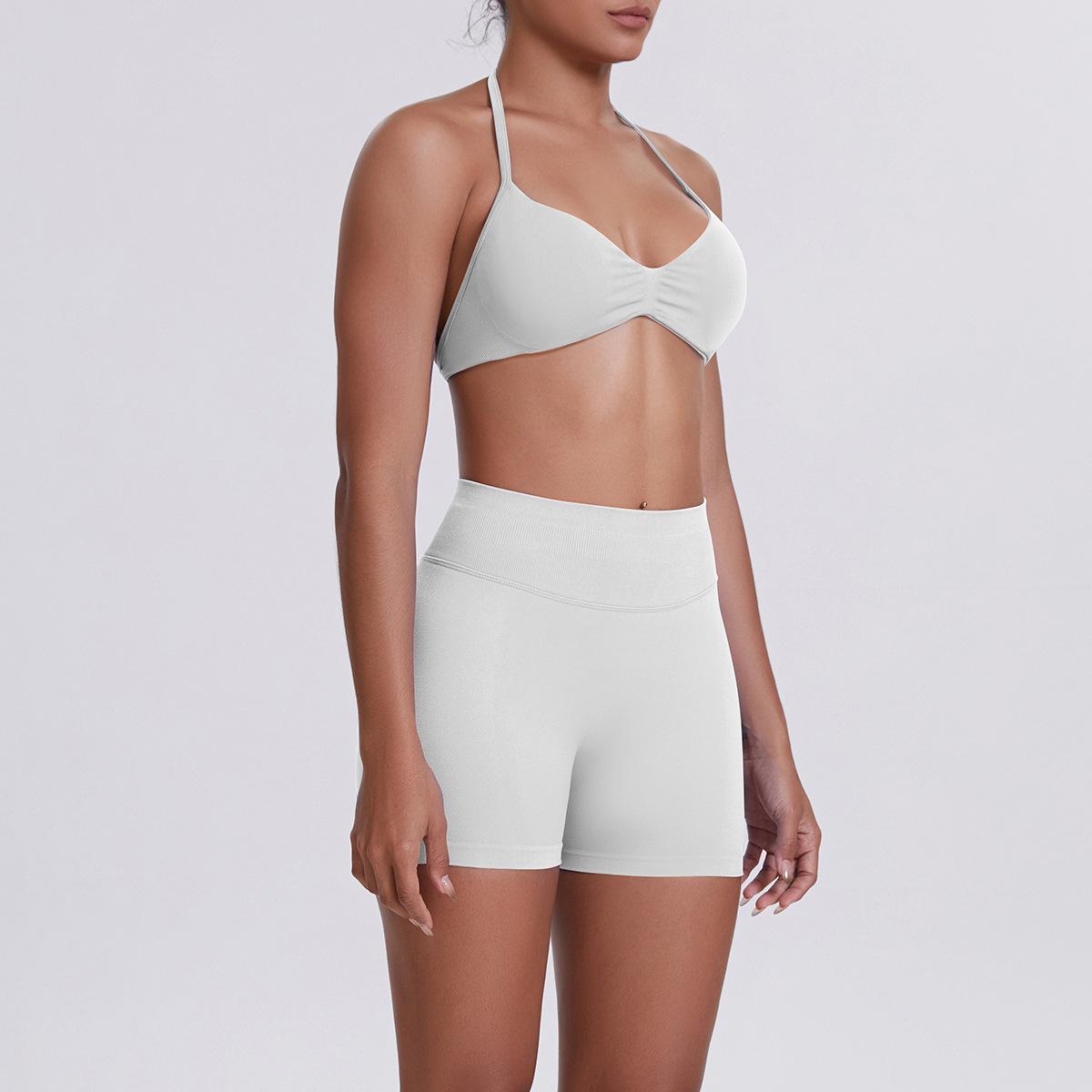Sujetador halter de espalda hermosa de color sólido sin costuras transfronterizo, shorts, traje de yoga ajustado para correr, fitness, deportes, conjunto de dos piezas