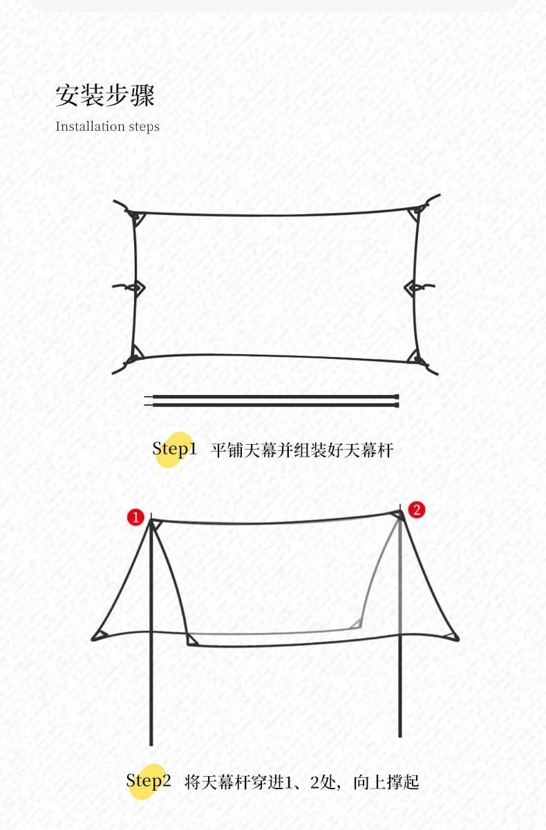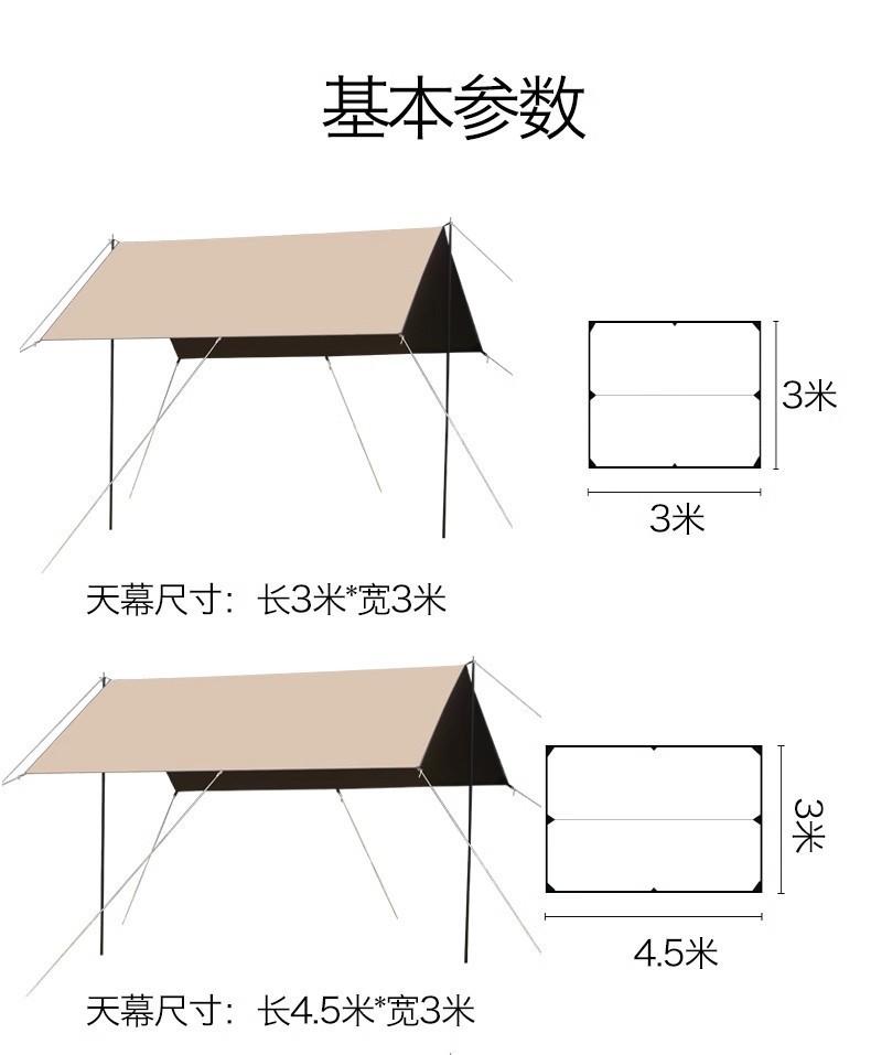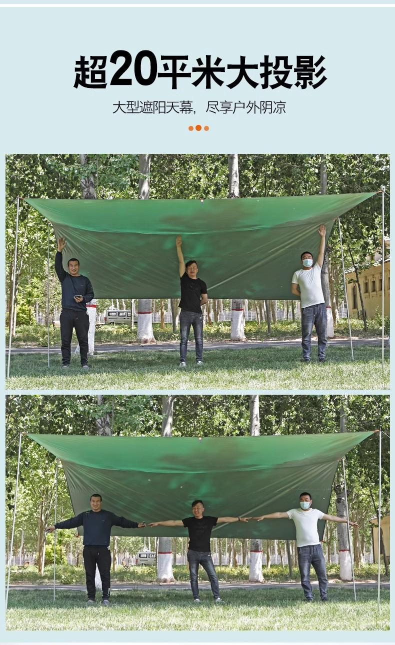 Toldo Cuadrado Exterior para Camping Sombrilla Protección Solar Ligero Tienda de Campaña con Pegamento Negro para Exterior Camping Portátil Impermeable Toldo Juego Completo