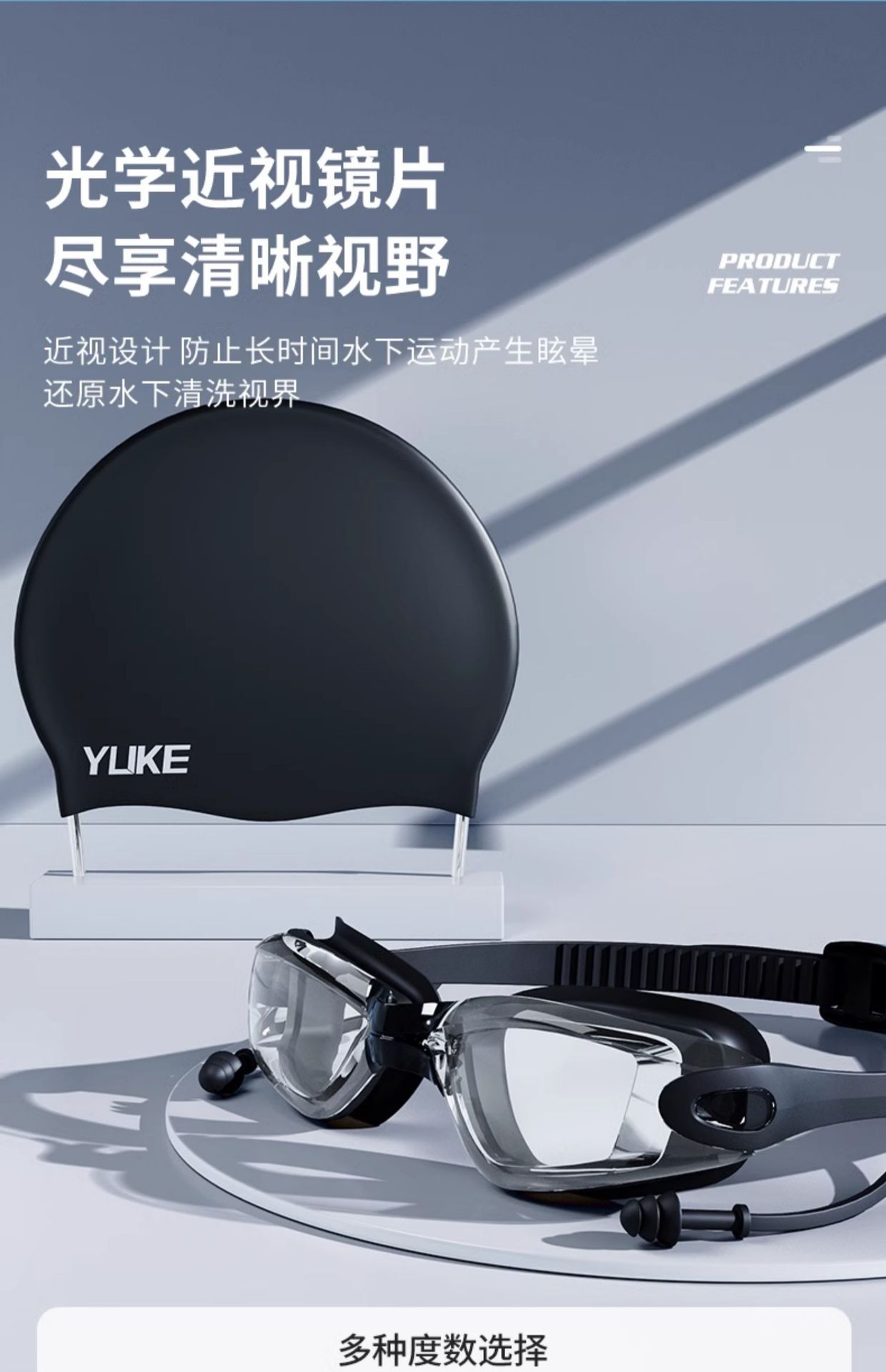 Gafas de natación Yuke impermeables antivaho HD miopía con graduación para hombre y mujer profesionales de competición gafas de natación set gorro equipo