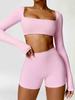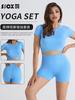 Conjunto de traje de yoga transfronterizo sin costuras de alta elasticidad conjunto deportivo fitness secado rápido manga corta shorts conjunto de dos piezas conjunto ajustado