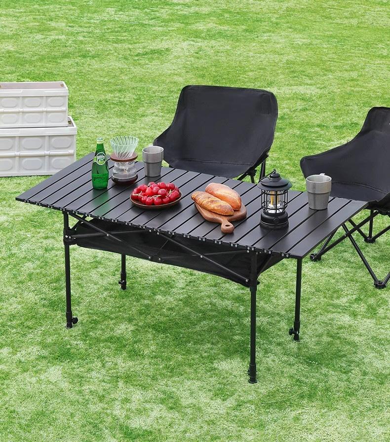 95 Height-Adjustable Roll-Up Table + Mesh Pocket [Black]