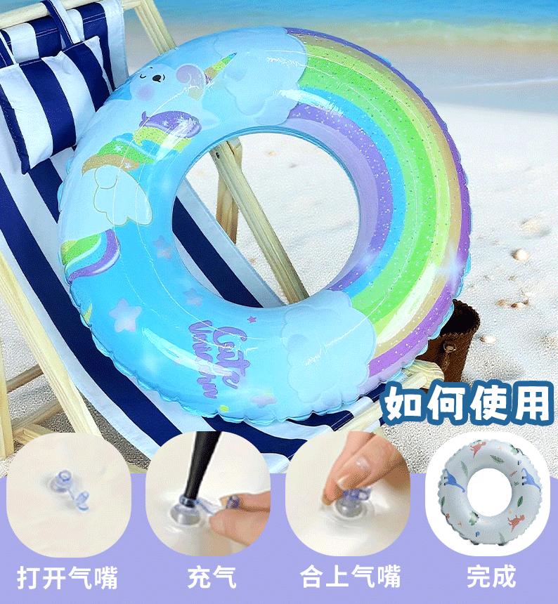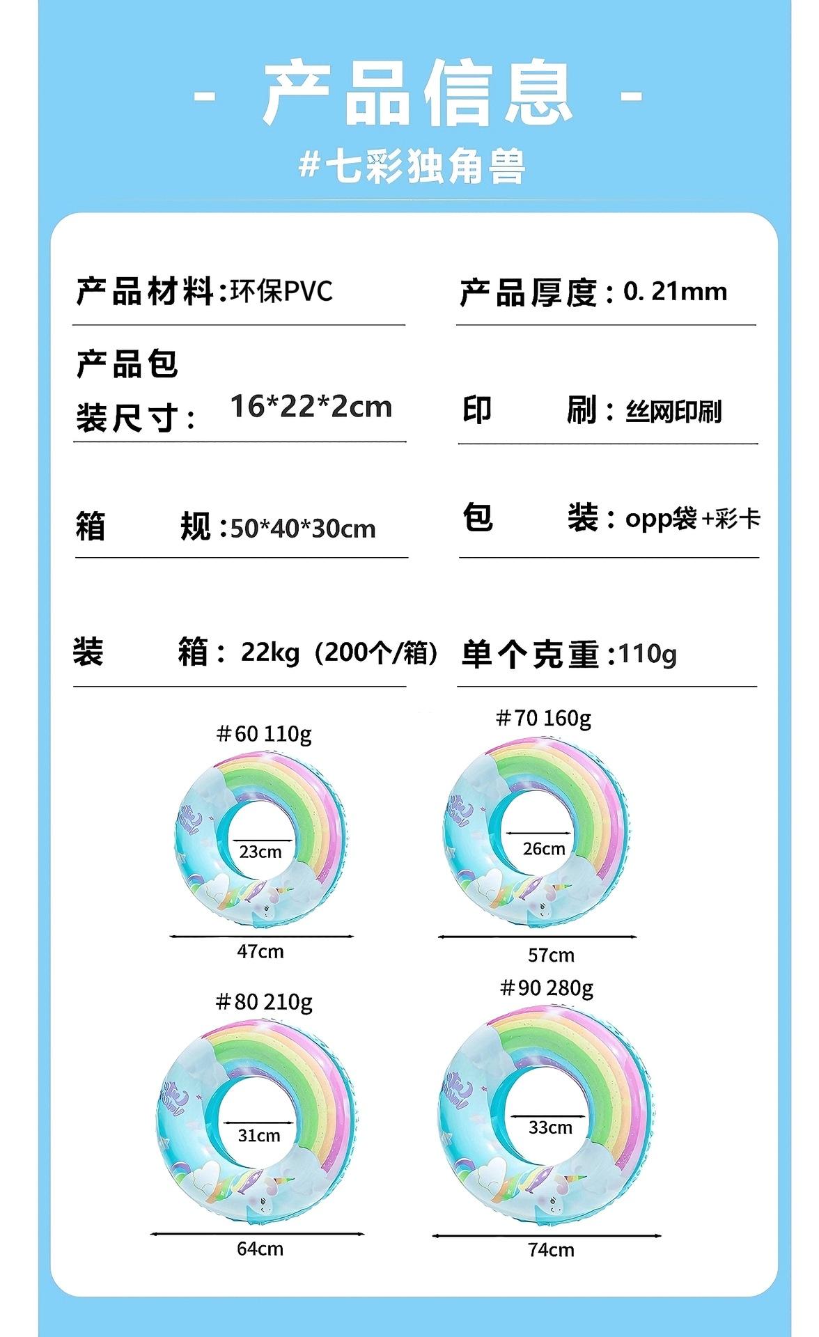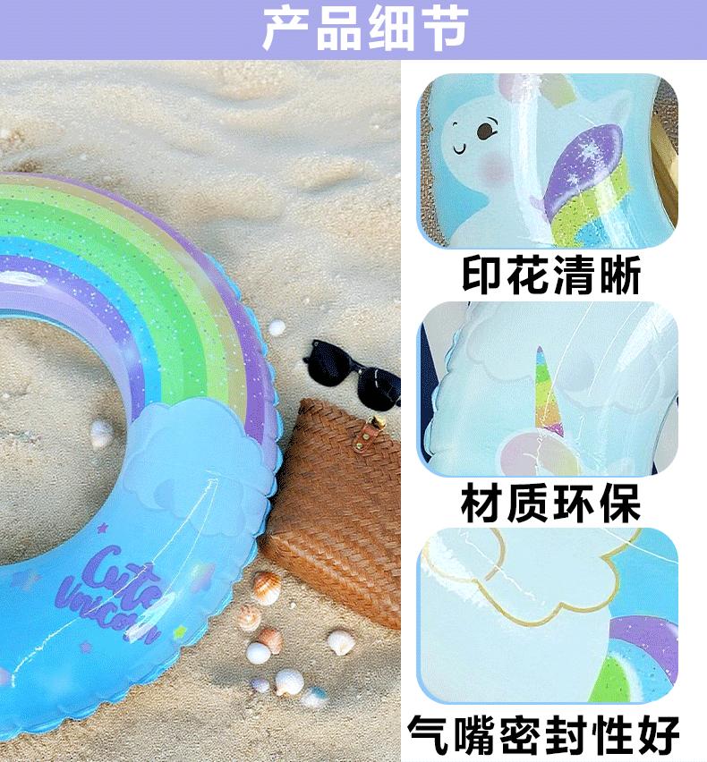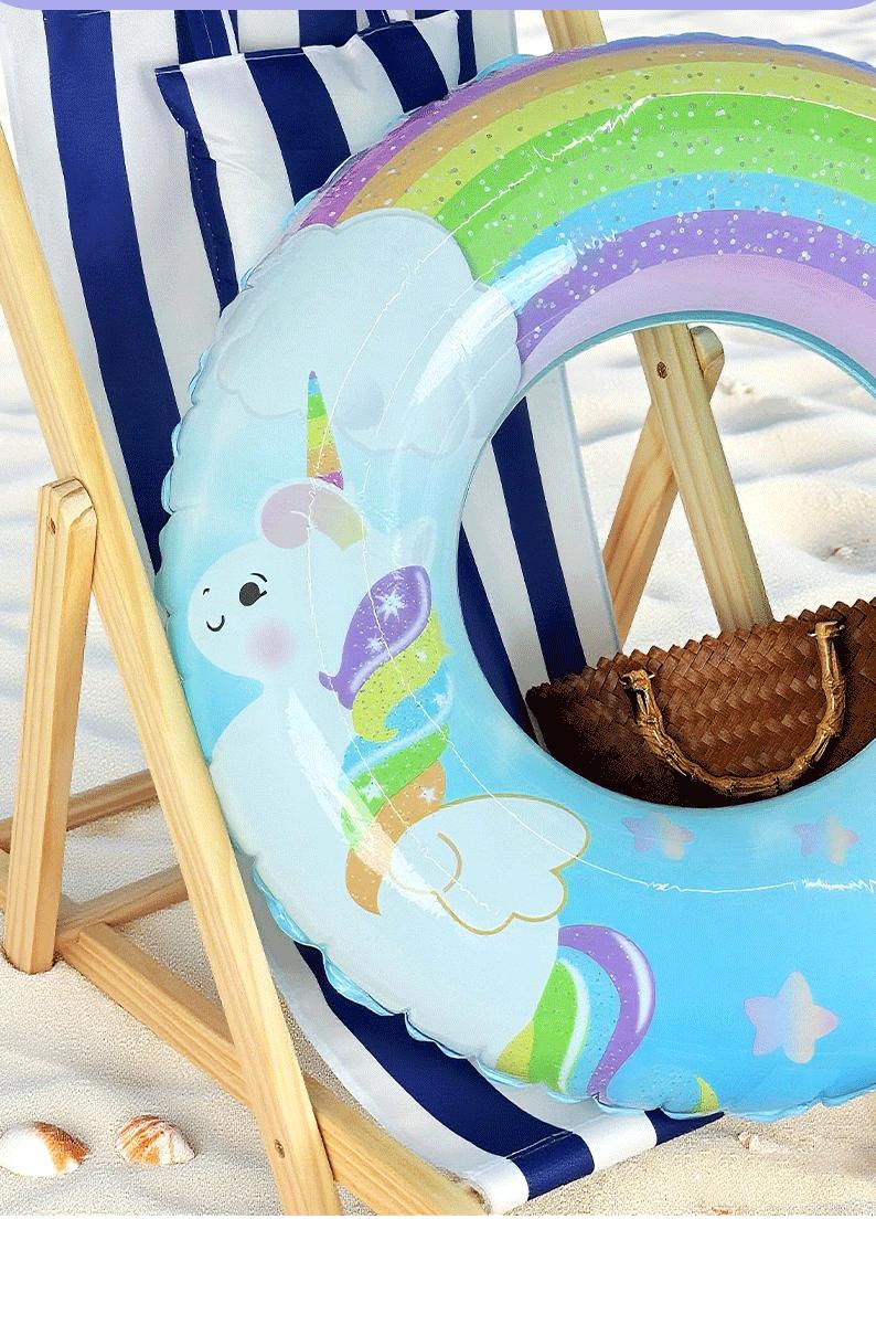 Flotador de natación con estampado de unicornio arcoíris superventas transfronterizo, engrosado para exteriores, patio, piscina, bebé disponible, salvavidas