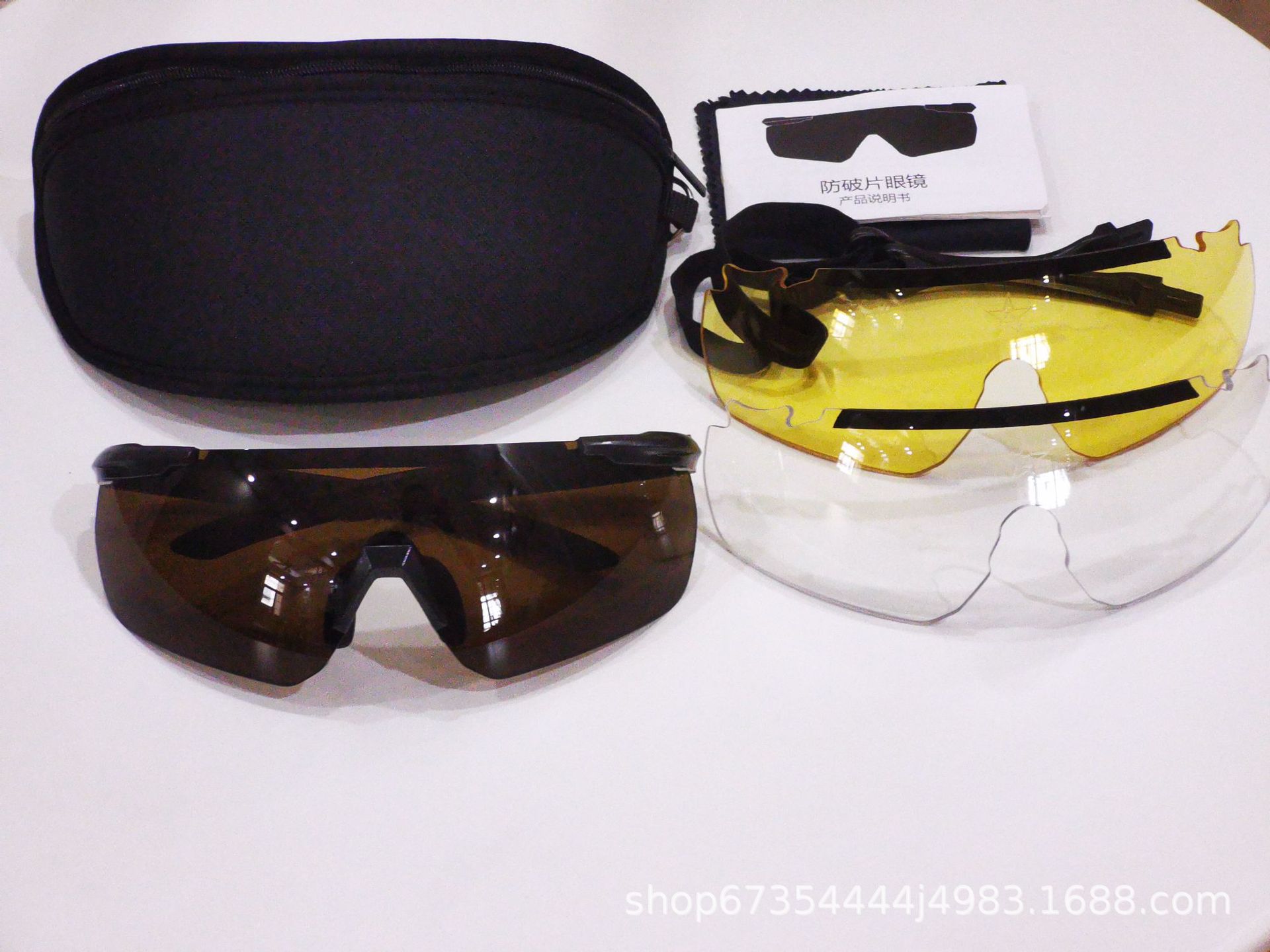 1. Montura 2. Lente transparente a prueba de viento 3. Lente amarilla para mejorar la visión nocturna