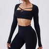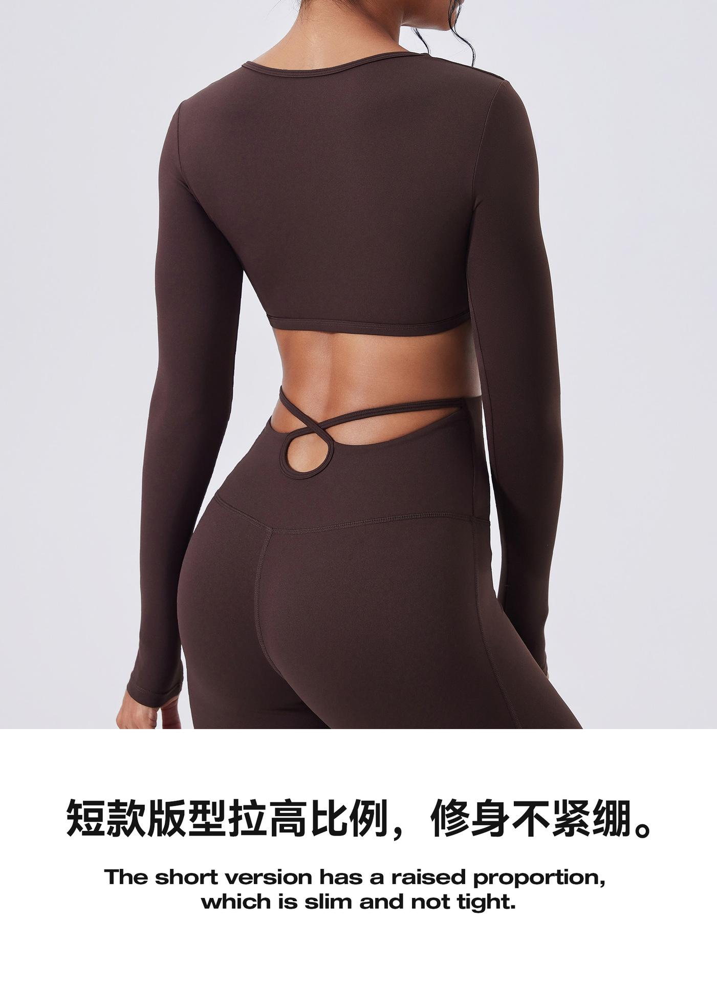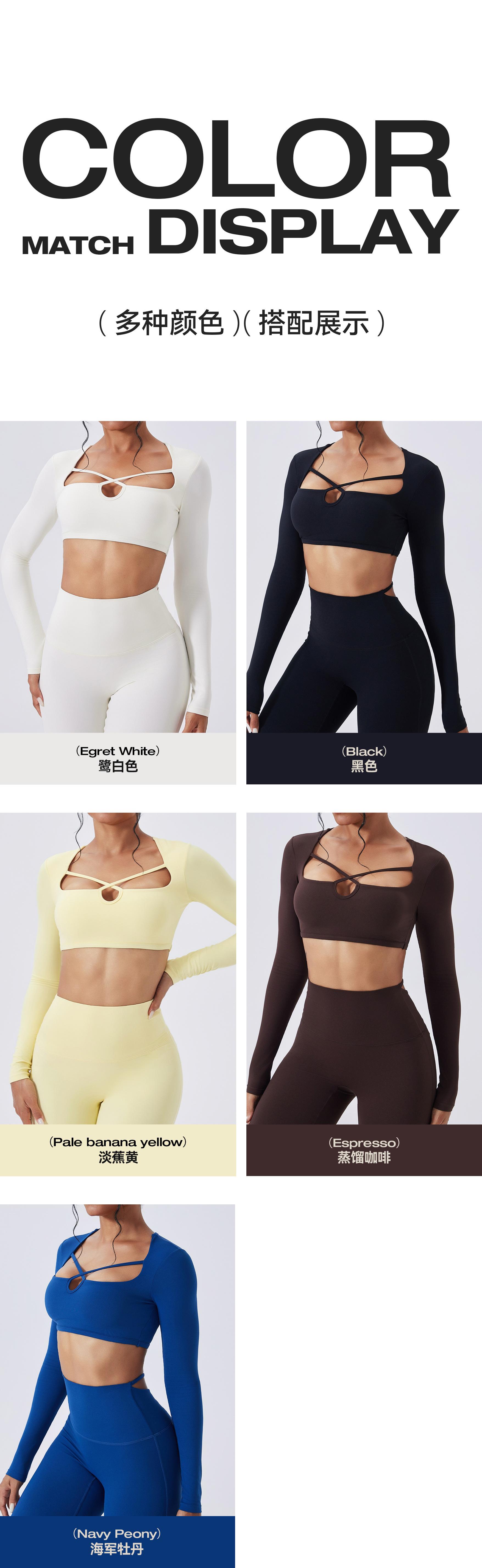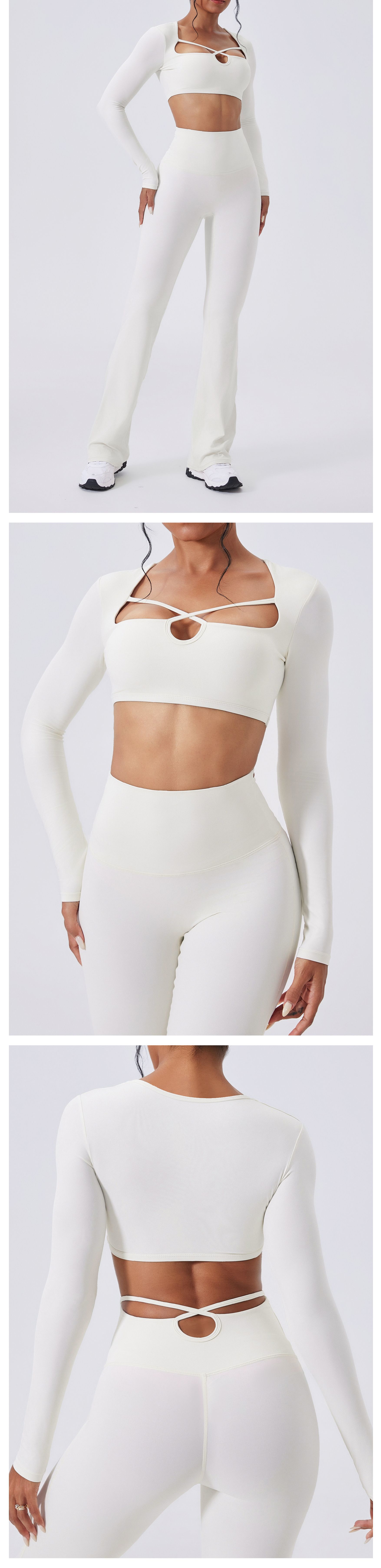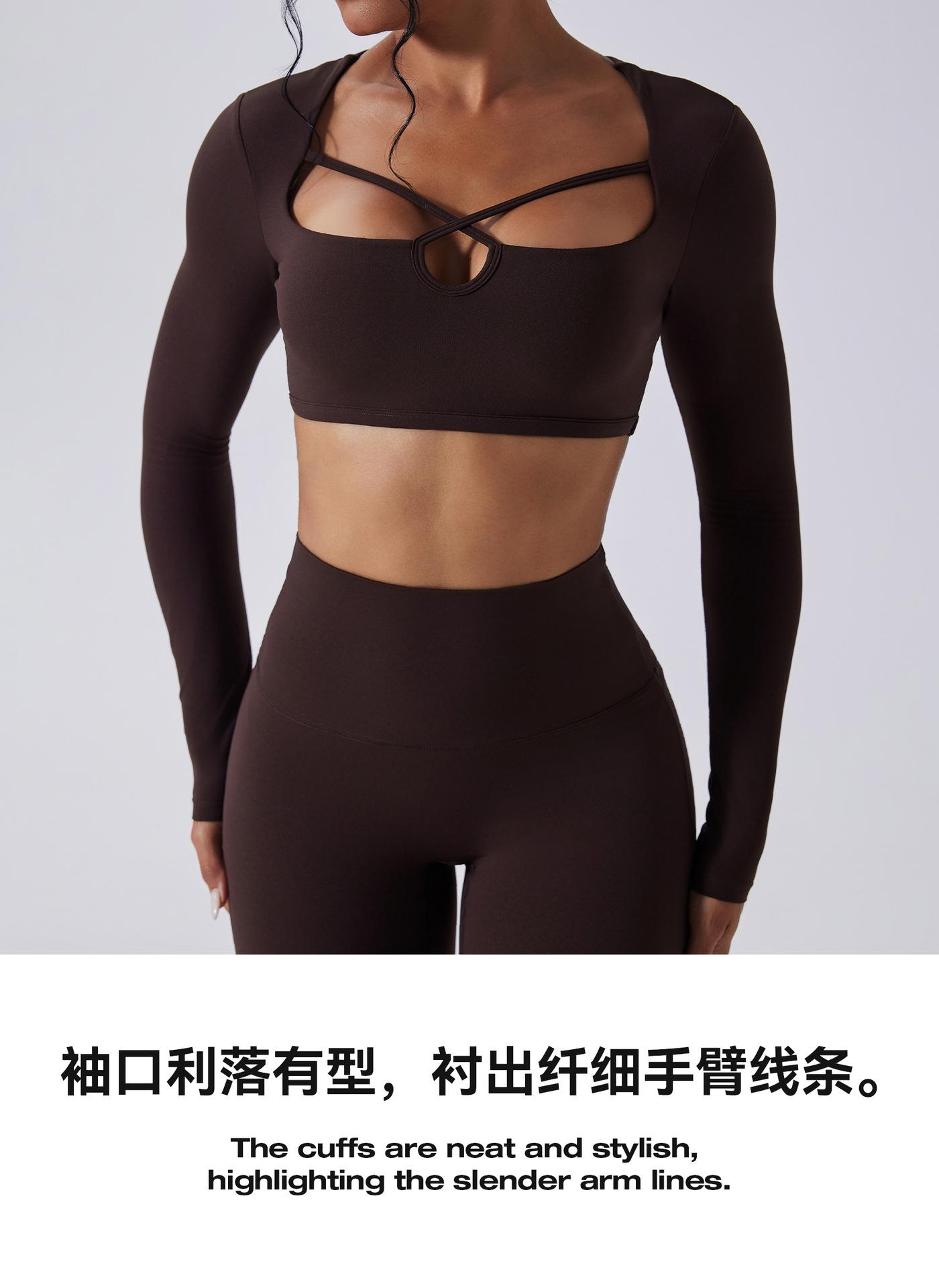 Pulgada Sombra Europeo y Americano Otoño e Invierno Cuello Cuadrado Calado Manga Larga Traje de Yoga Secado Rápido Top Casual Entrenamiento Correr Ropa Deportiva Fitness