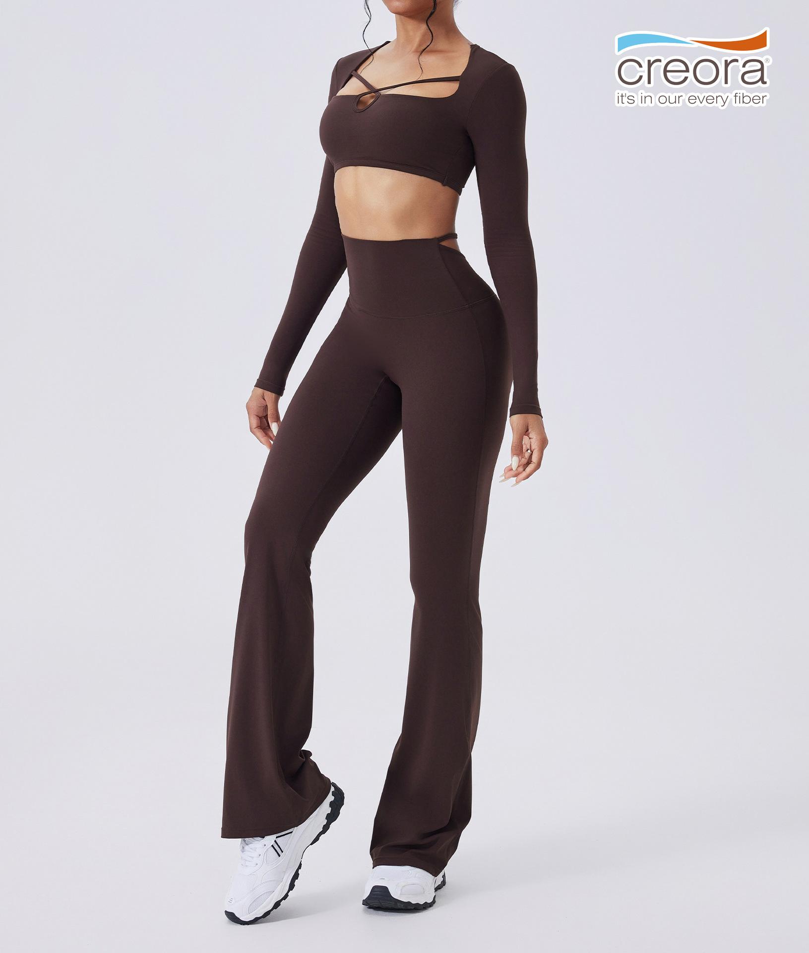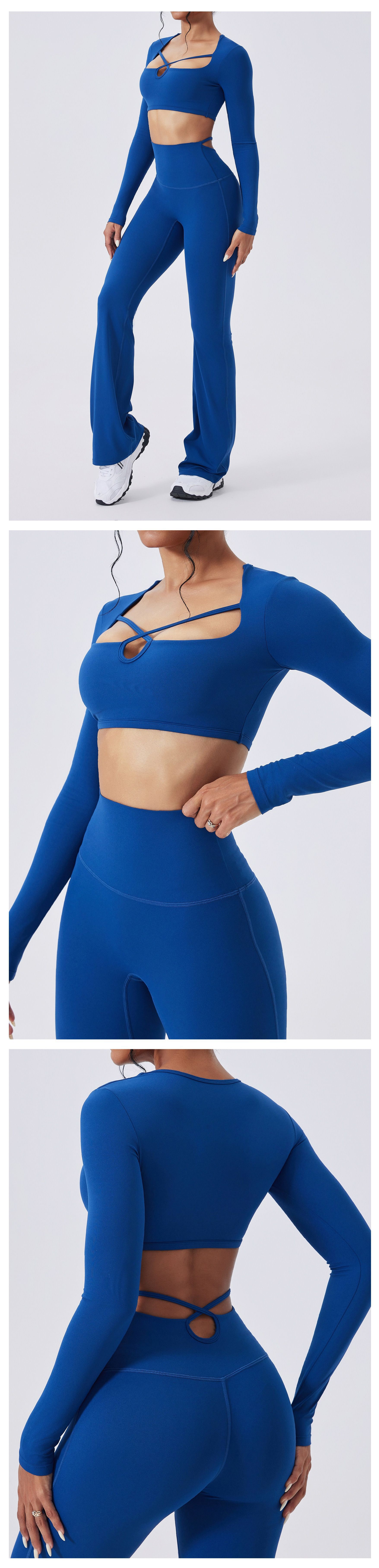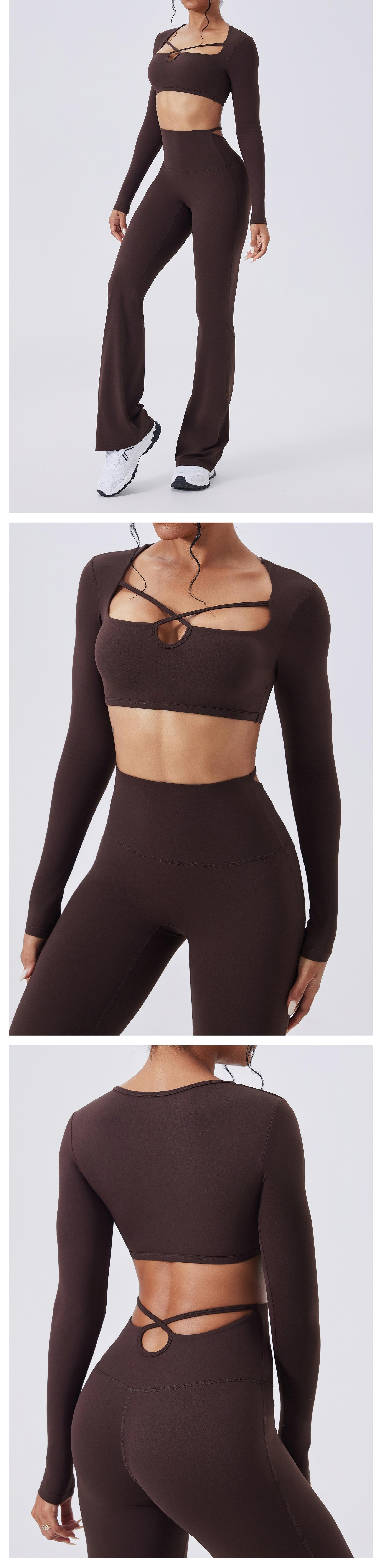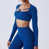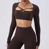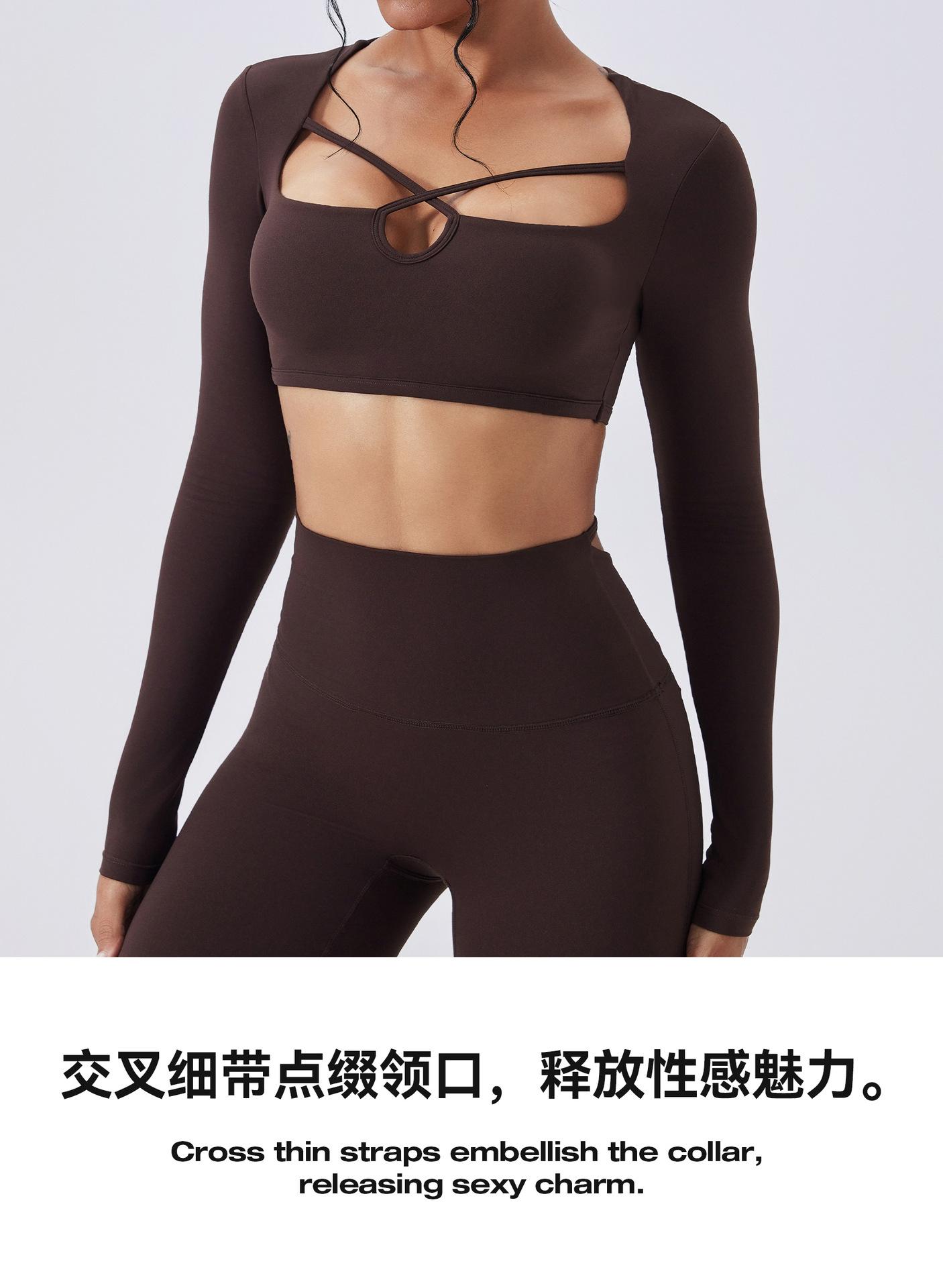 Pulgada Sombra Europeo y Americano Otoño e Invierno Cuello Cuadrado Calado Manga Larga Traje de Yoga Secado Rápido Top Casual Entrenamiento Correr Ropa Deportiva Fitness