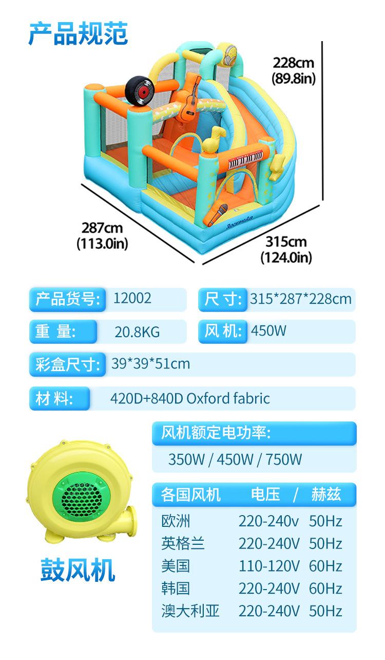 Castillo Inflable Transfronterizo para Interior Castillo Inflable Familiar para Niños Tobogán Hogar Tela Oxford Trampolín Inflable para Niños