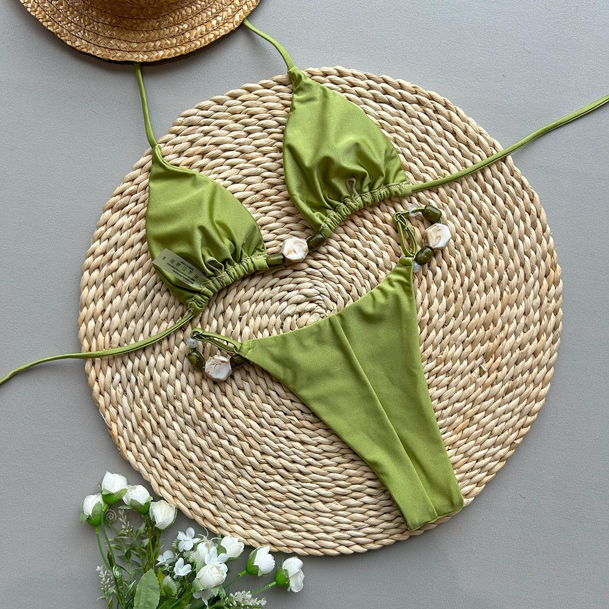 2025 Nuevo Bikini Sexy Europeo y Americano Bikini Color Puro Transfronterizo Dividido Traje de Baño para Mujer Traje de Baño Mujer