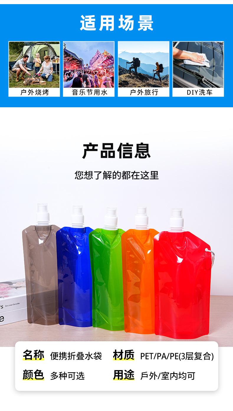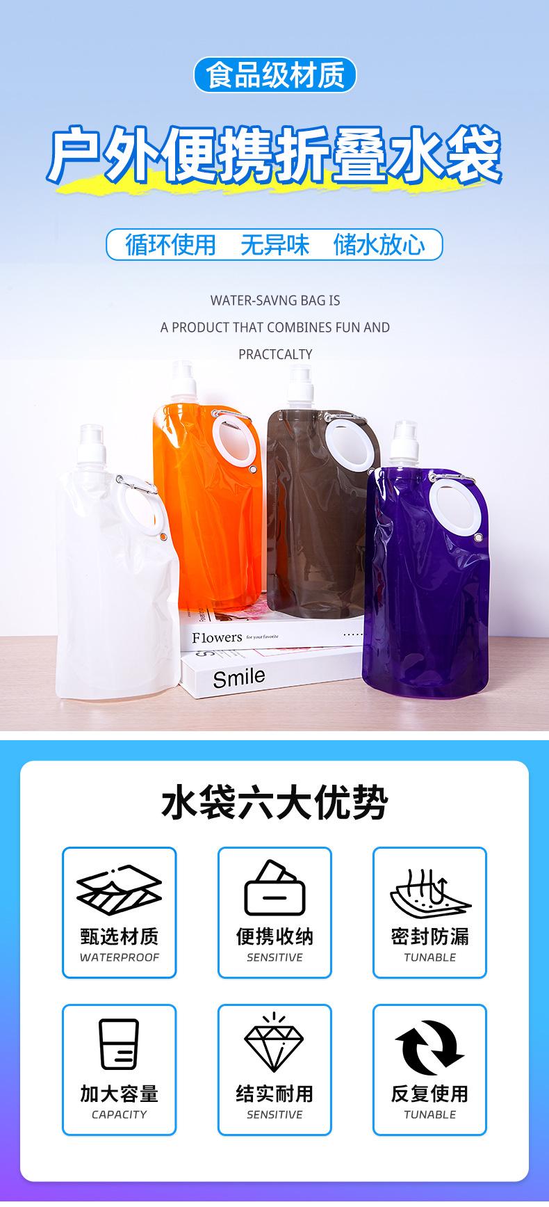 Bolsa de agua plegable de grado alimenticio transfronteriza, bolso de mano portátil, gran capacidad, montañismo, camping, festival de música, para beber, portátil