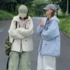 Chaqueta Funcional Versátil para Exterior a Prueba de Viento e Impermeable con Cuello Alto Azul Marino Retro Americano Protección Solar Cortavientos