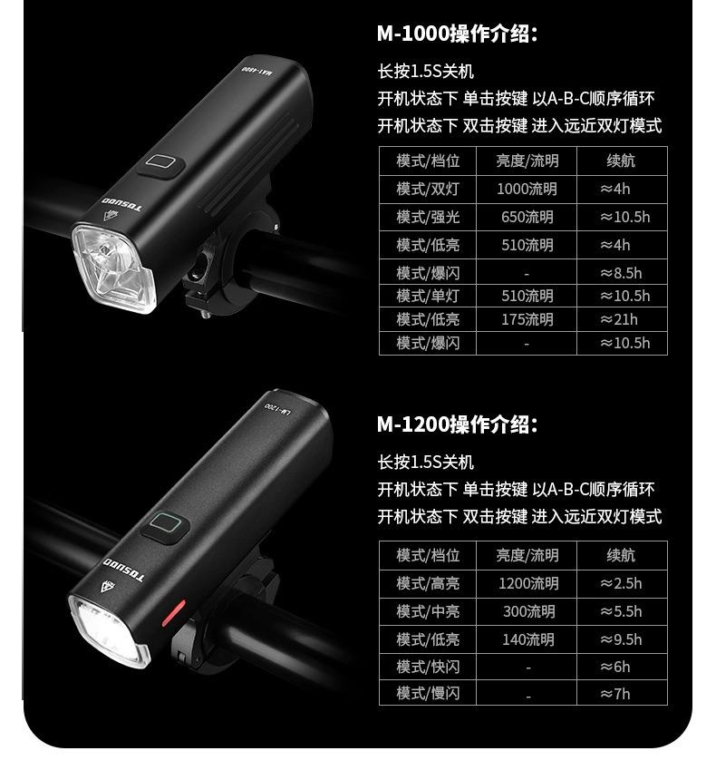 Luz para Ciclismo Nocturno Tosuod Luz Delantera para Bicicleta de Carretera Luz Trasera Trasera para Bicicleta de Montaña Equipo de Ciclismo Alto Brillo