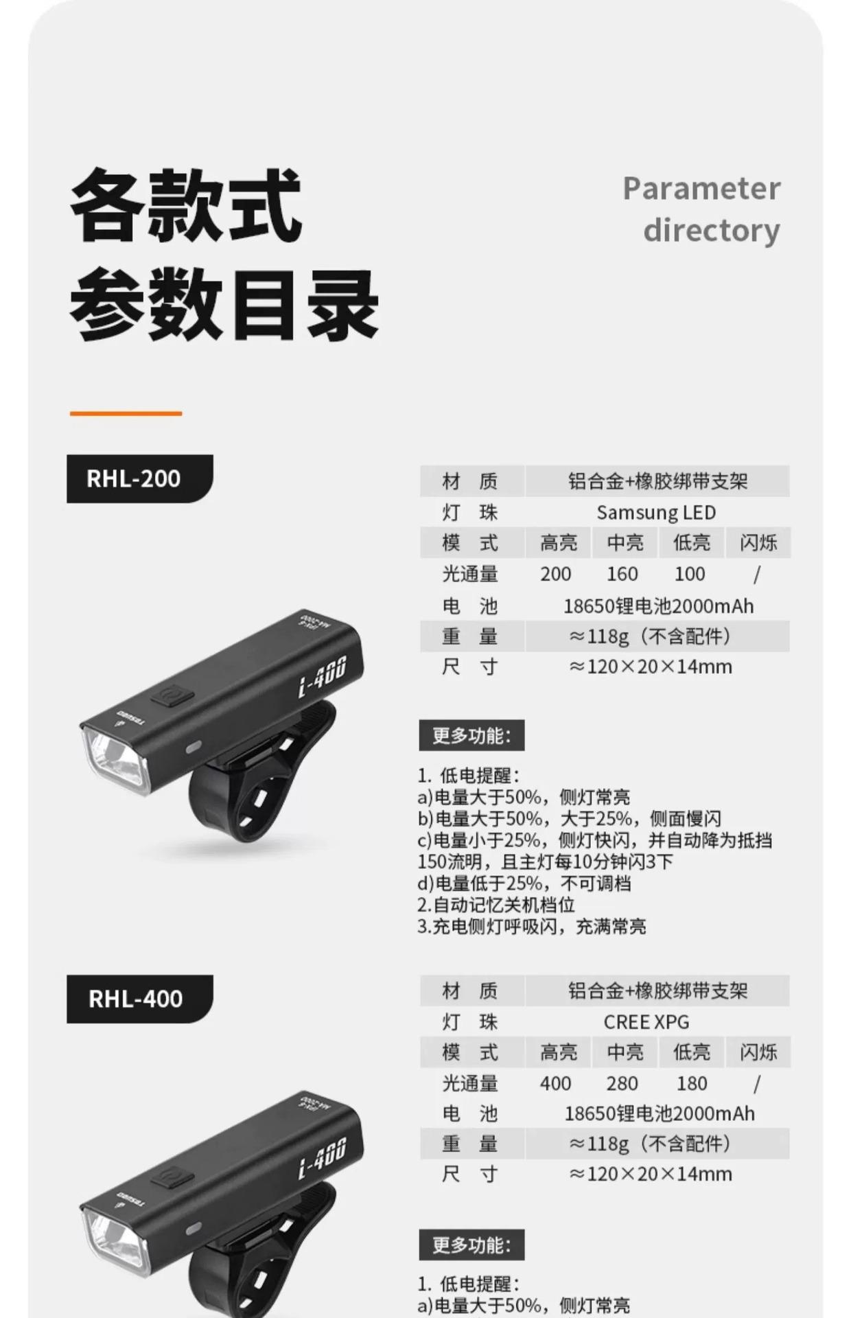 RH-200 lumen headlight + Q3 tail light [sitting pole model]