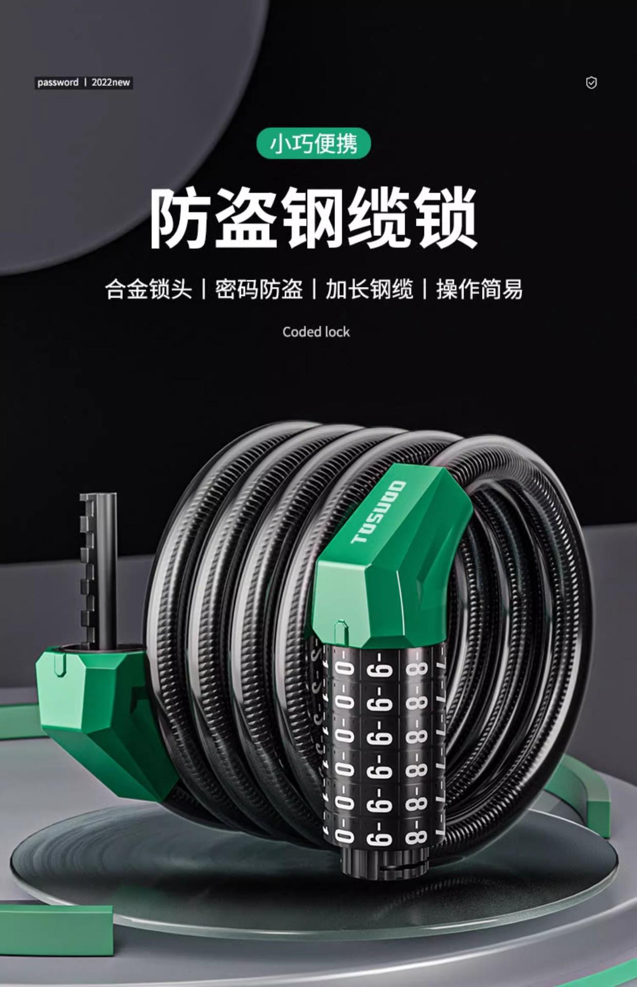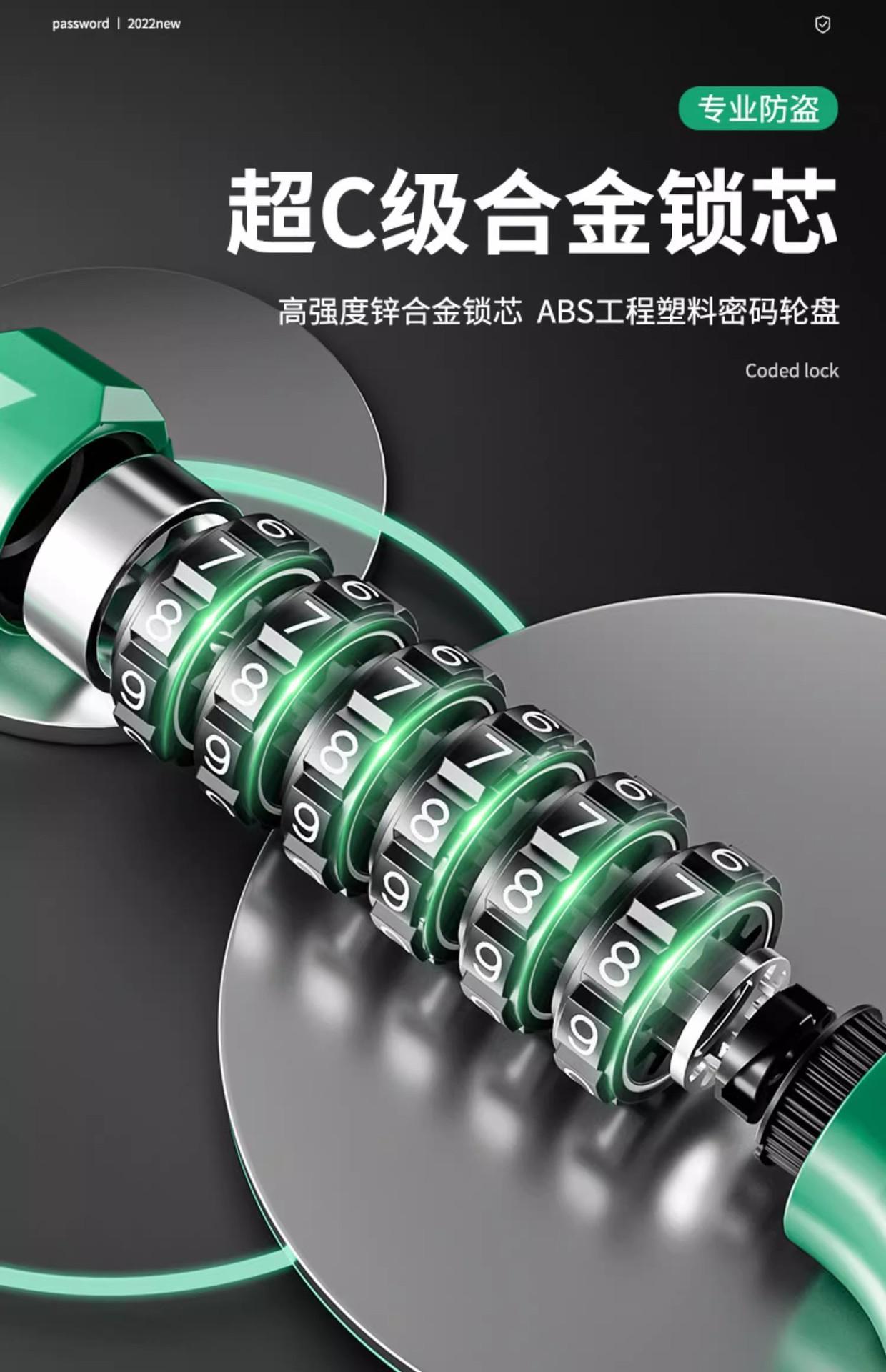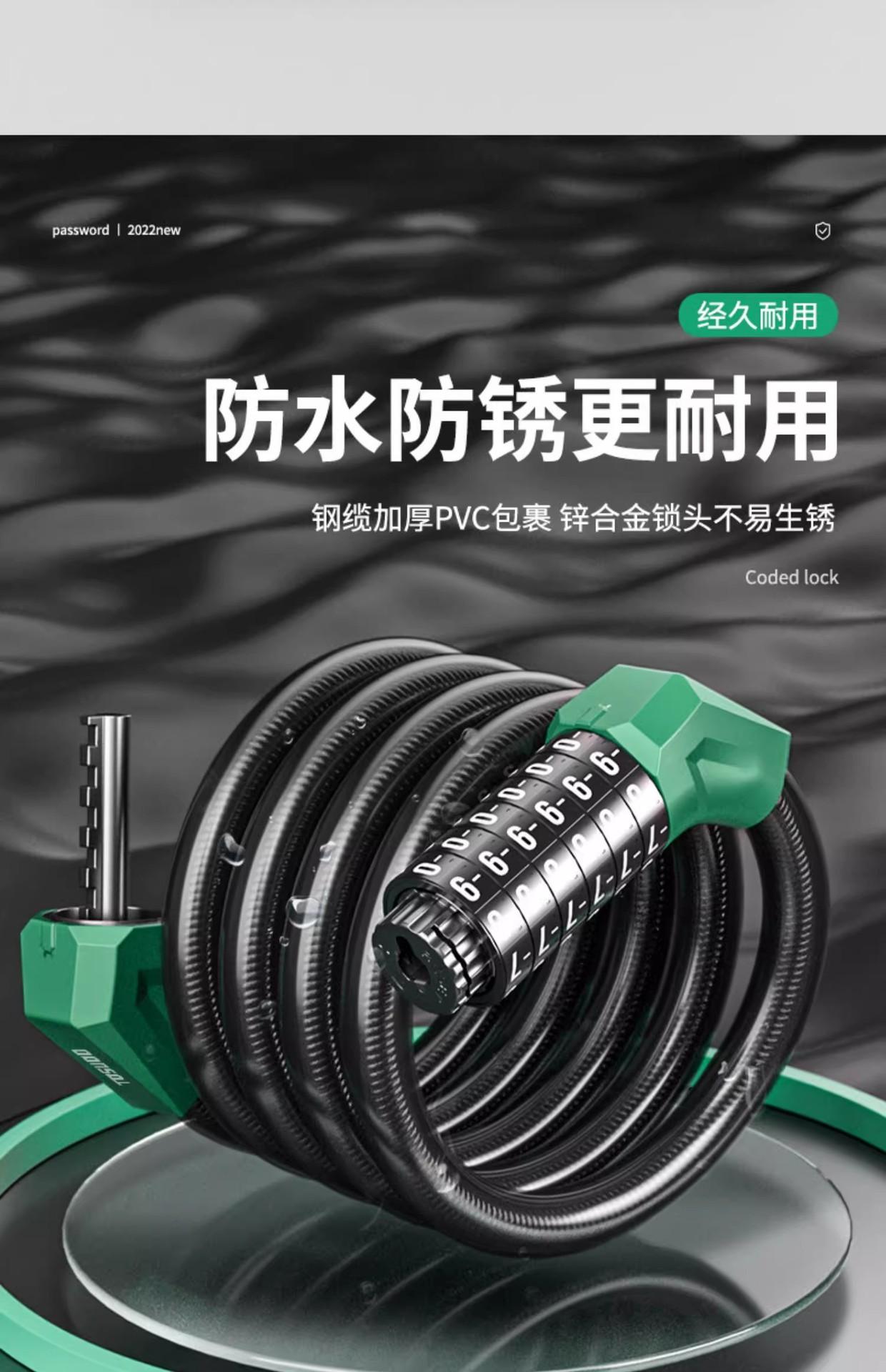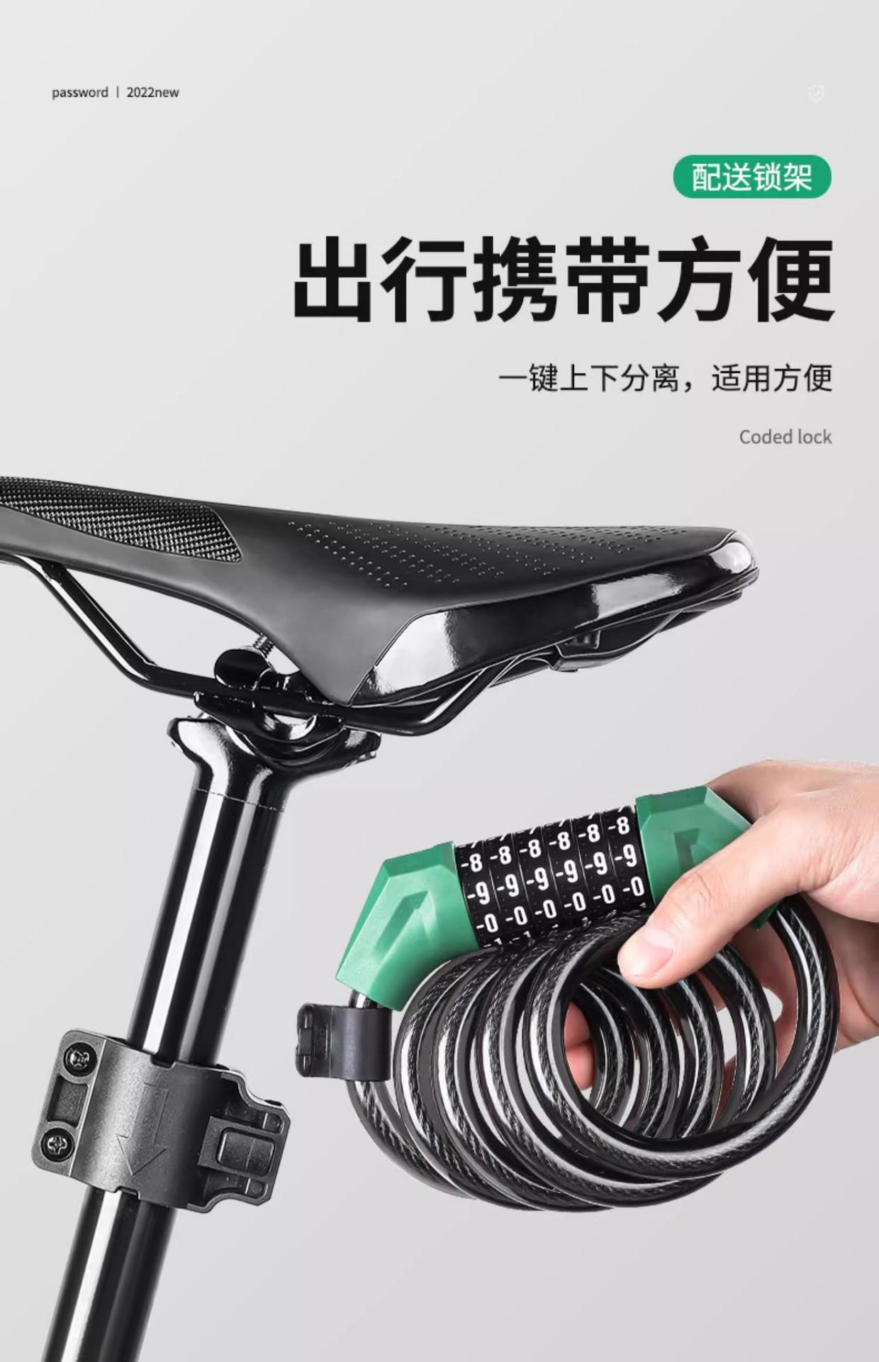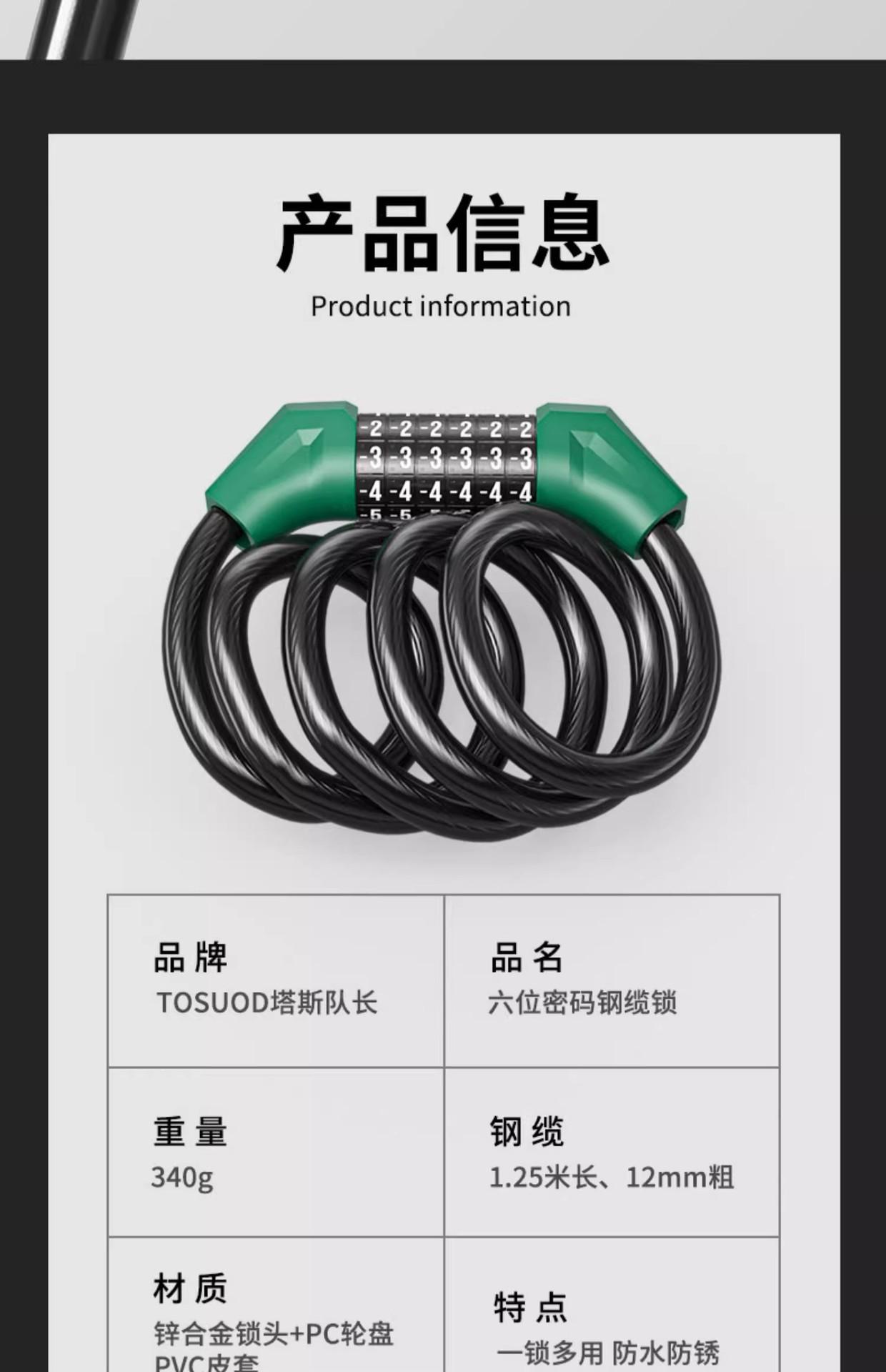 Tosuod Candado Nuevo de Contraseña de 6 Dígitos Bicicleta Bicicleta de Montaña Portátil Cable de Acero Candado Antirrobo Bicicleta de Carretera Candado de Cadena