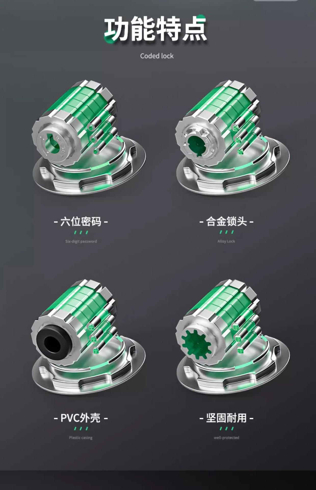 6-digit combination lock silver [free lock frame for 1.25m], 6-digit combination lock black [free lock frame f...