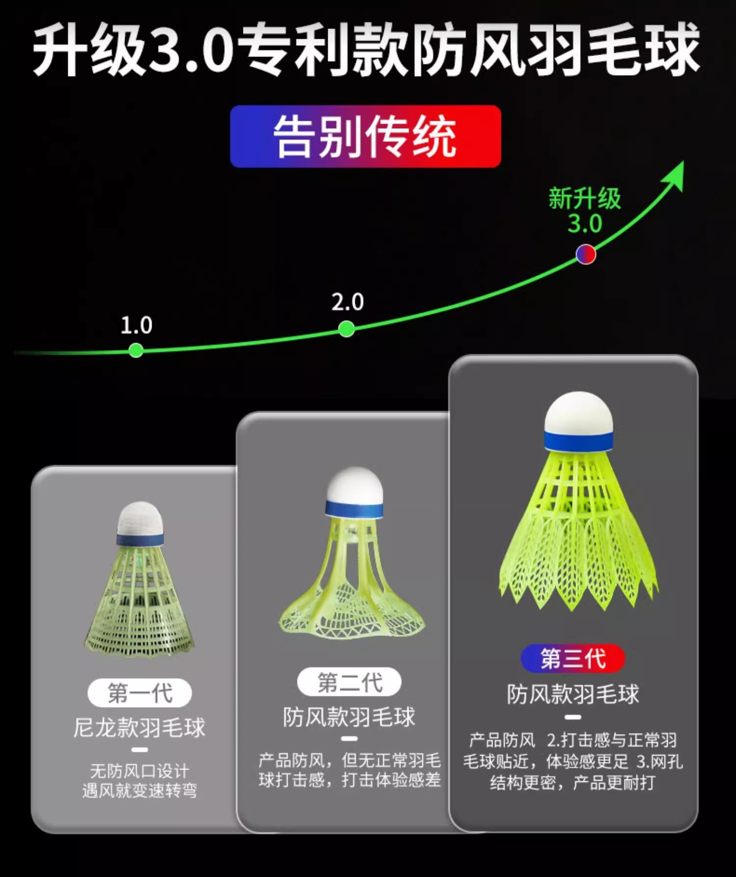 Windproof and durable nylon badminton-glowing style-red-3 pieces