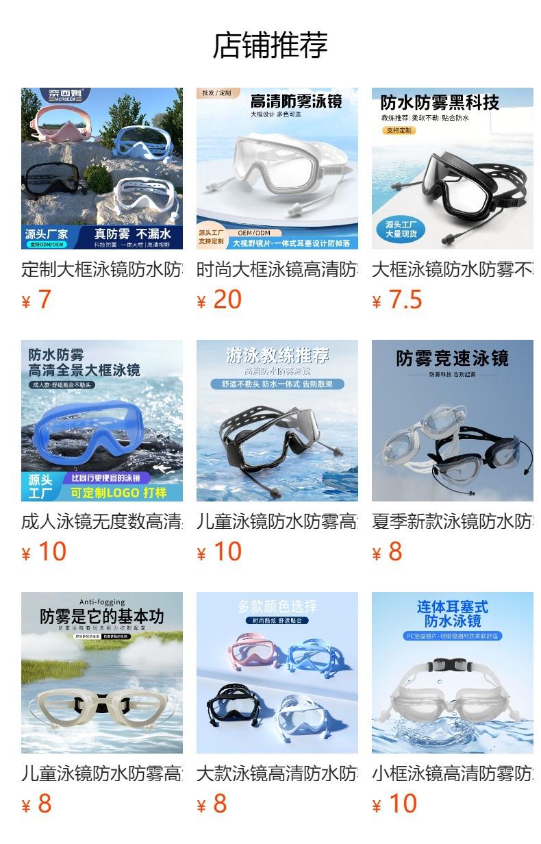 Fabricante Mayorista Gafas de Natación Personalizadas de Montura Grande Impermeables y Antivaho Gafas de Natación de Alta Definición Tapones para los Oídos de Una Pieza Gafas de Natación de Silicona