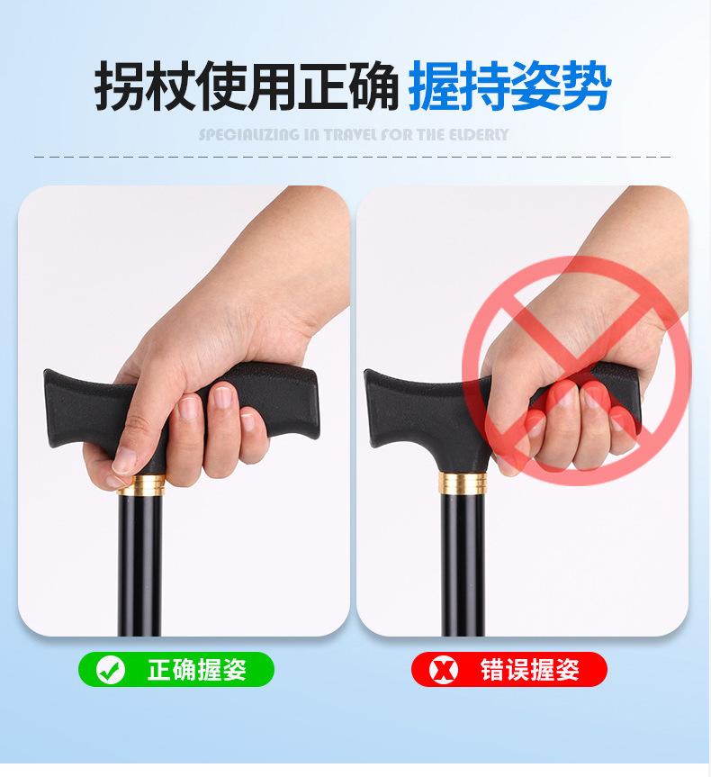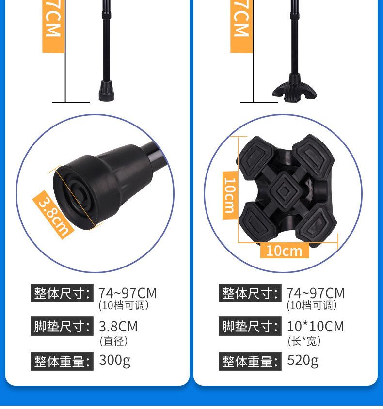 Muleta de cuatro patas de aleación de aluminio para exteriores para ancianos, bastón para caminar antideslizante, bastón de senderismo deportivo asistencial, muleta con pasamanos retráctil