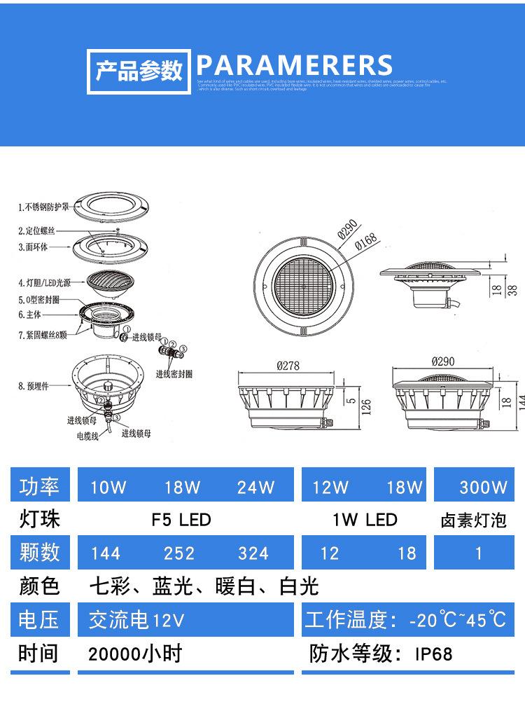 Equipo de piscina COOS PISCINA Película de plástico Piscina Lámpara impermeable especial Lámpara subacuática LED Lámpara de barril par56 Lámpara subacuática