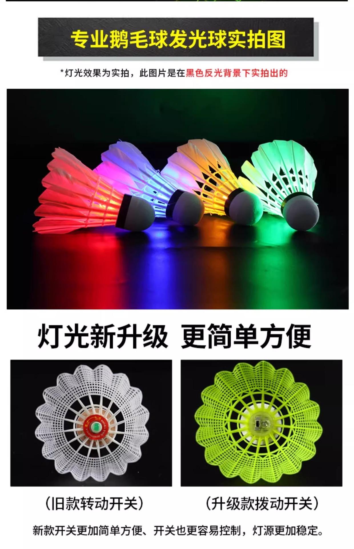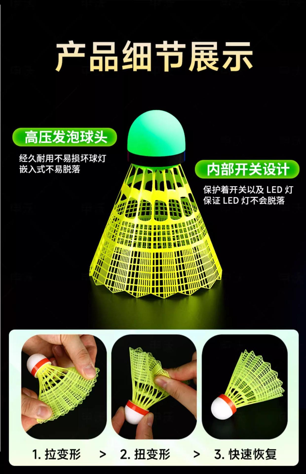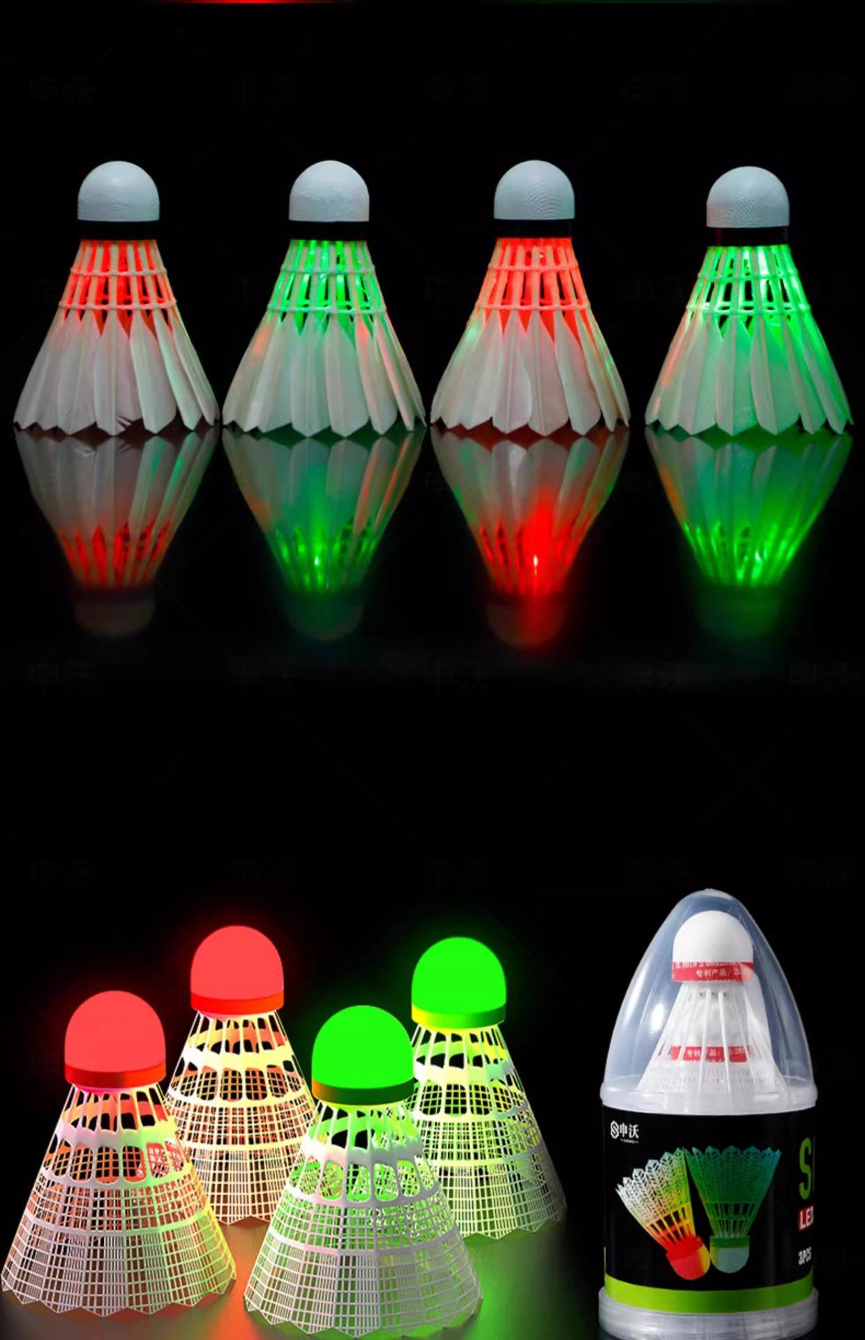 Bádminton Luminoso de Plástico a Prueba de Viento con Luz Entrenamiento al Aire Libre Exterior Nylon Noche Fluorescente Luminoso Set de Pelotas de Pluma de Ganso