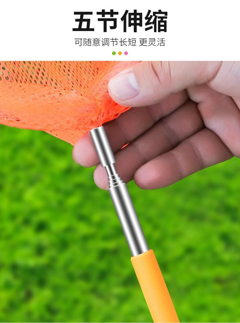 Especificaciones del producto: El mango de malla mide aproximadamente 86 cm de largo cuando está extendido y aproximadamente 37 cm cuando está retraído. El diámetro y la profundidad de la malla metálica son de aproximadamente 20 cm. Existe un pequeño margen de error.
