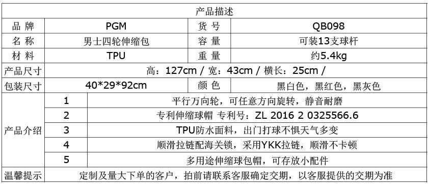 Bolsa de Golf PGM para Hombre Bolsa de Pelotas para Transporte Aéreo Bolsa Telescópica Impermeable Bolsa Plana de Empuje de Cuatro Ruedas Fabricante de Golf