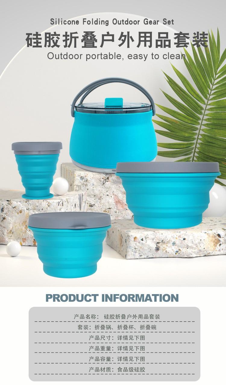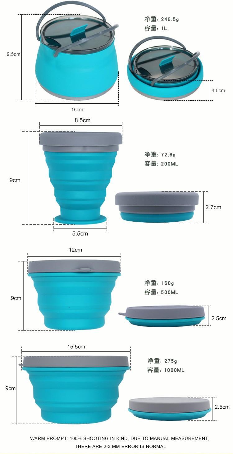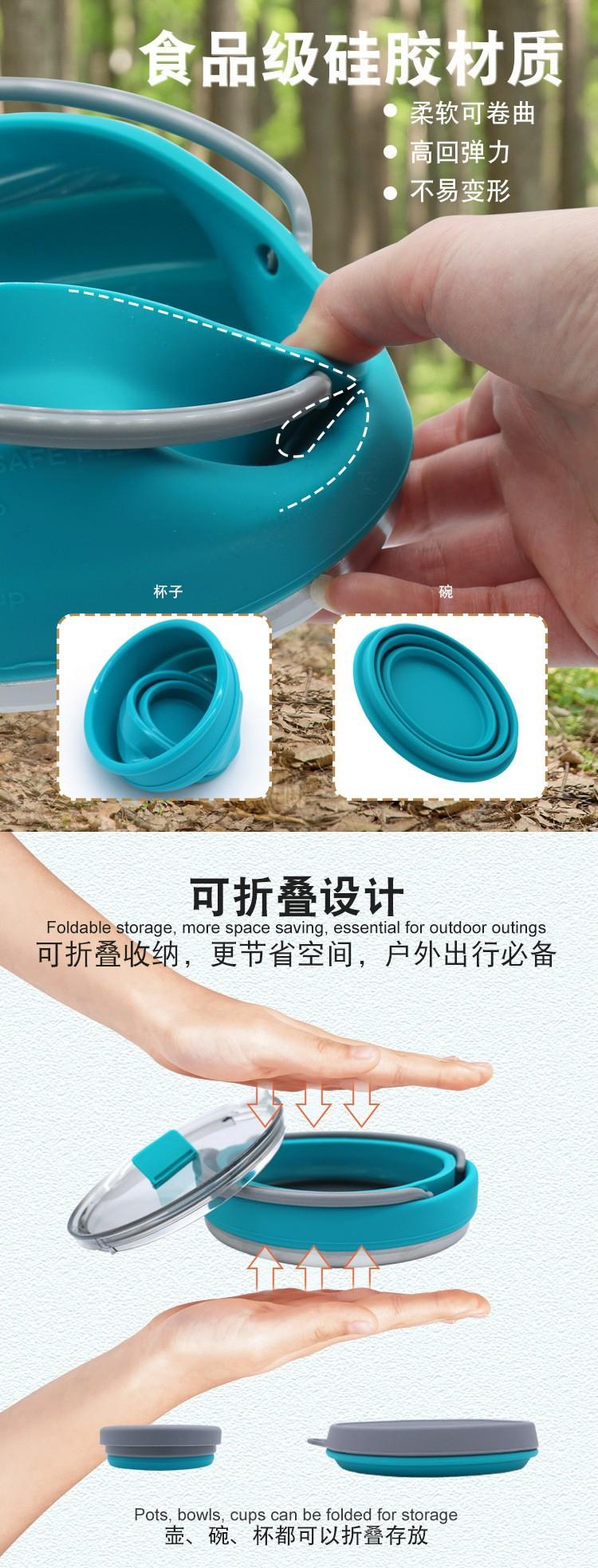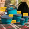 Hervidor Ultraligero de Silicona para Camping y Picnic, Viaje, Vajilla de Doble Uso, Plegable, Portátil, Ecológico, Tazón Colapsable de Grado Alimenticio
