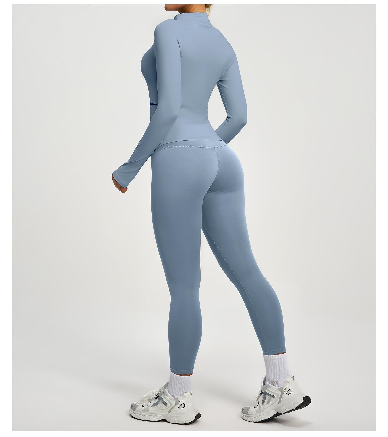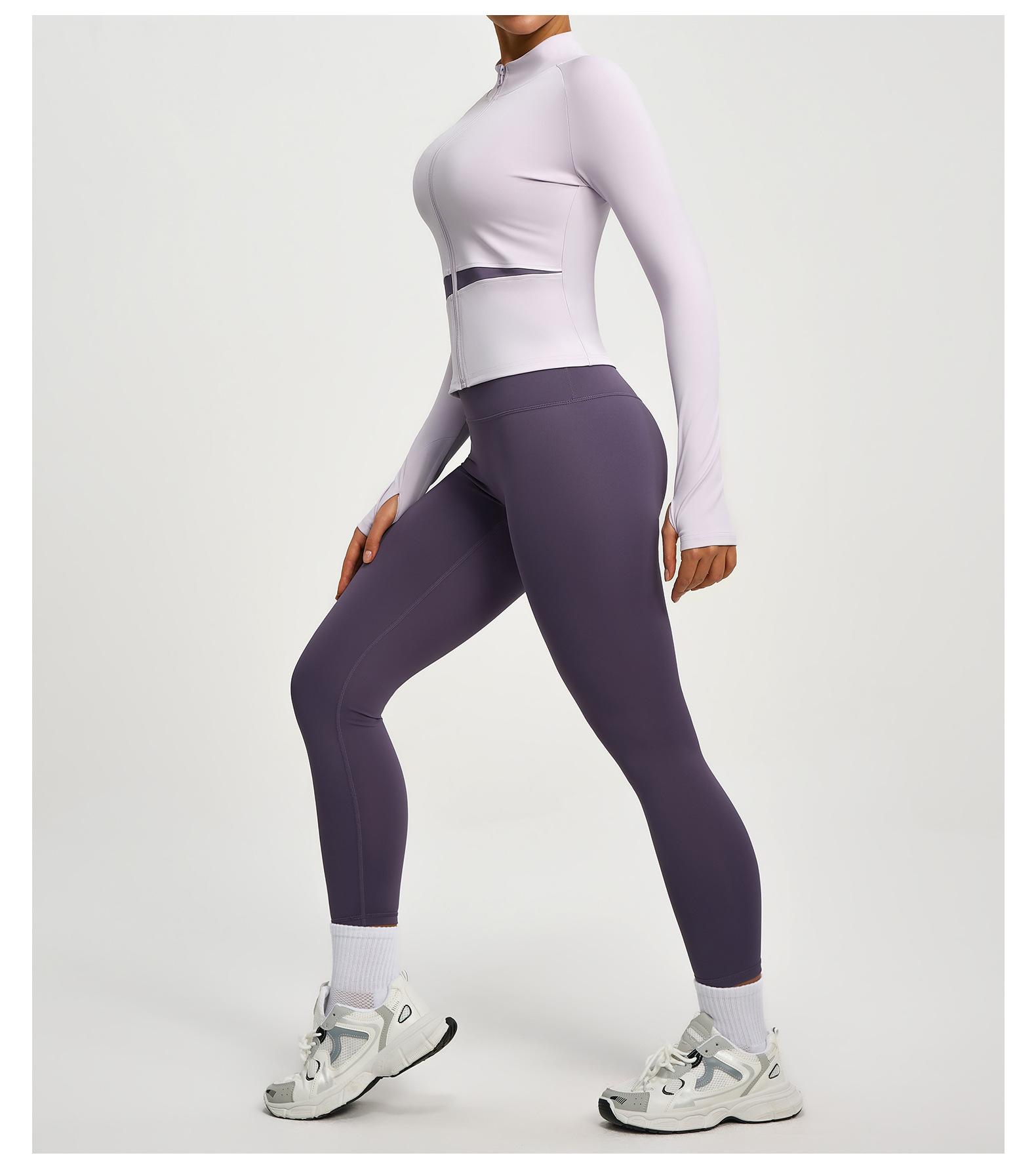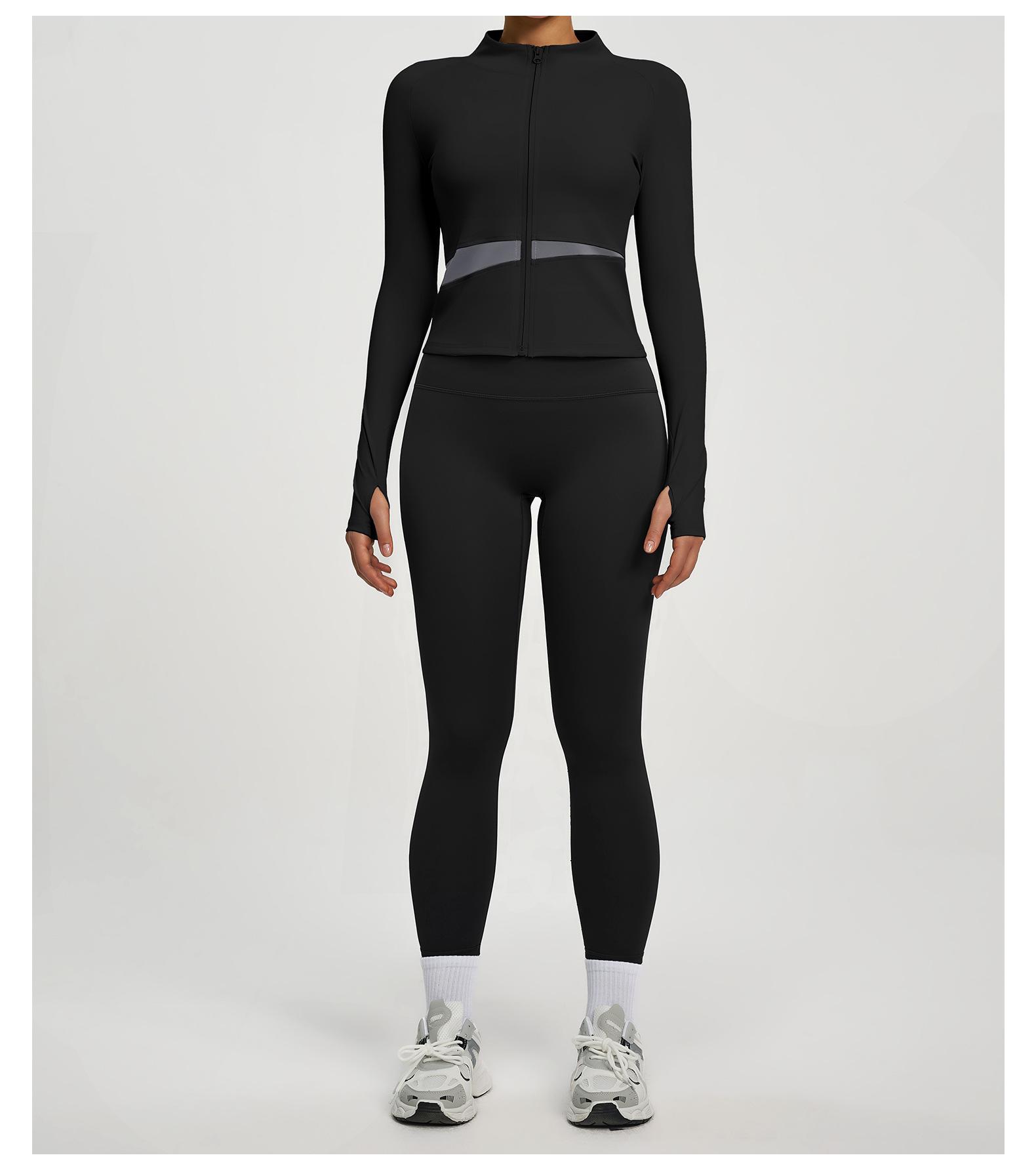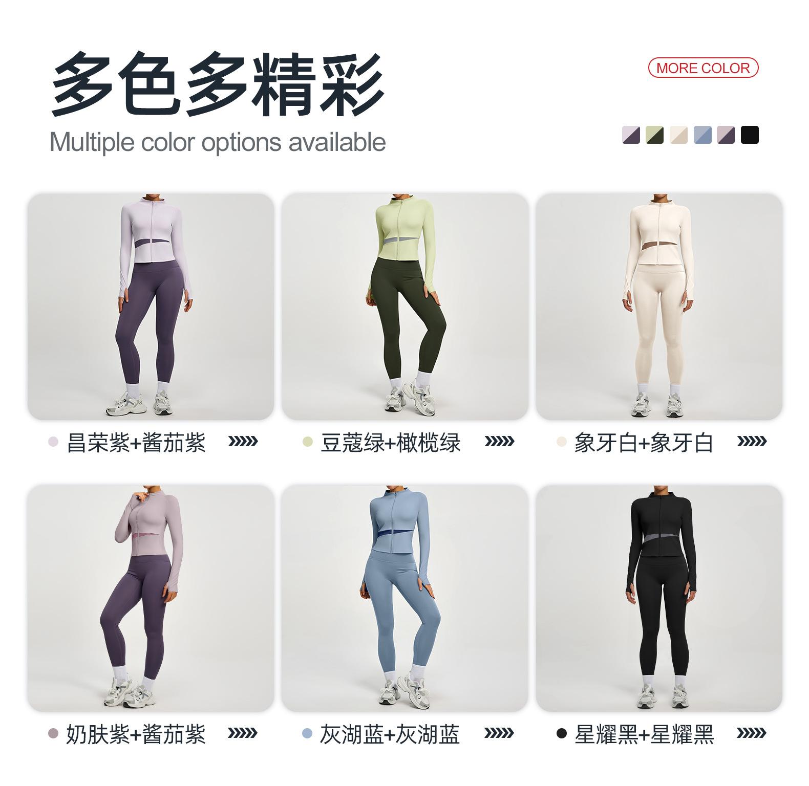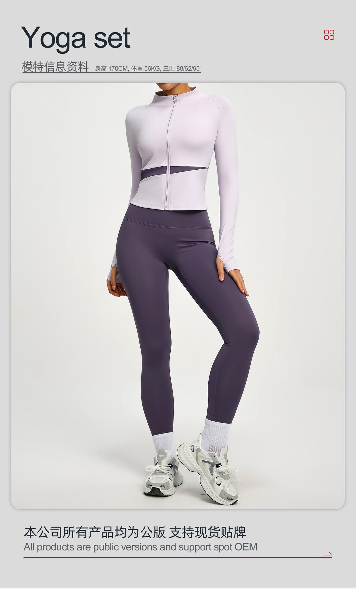 Conjunto de Yoga Colorblock Transfronterizo Sin Costuras para Correr y Deportes de Alto Impacto Cintura Alta Adelgazante Conjunto de Traje de Fitness para Mujer