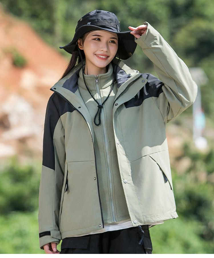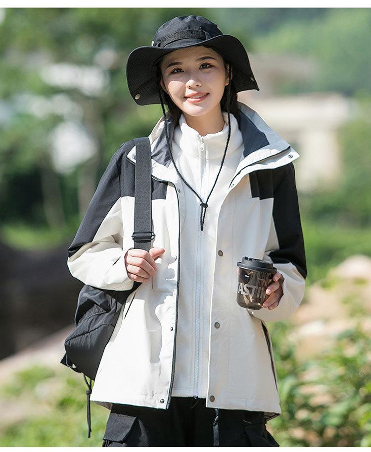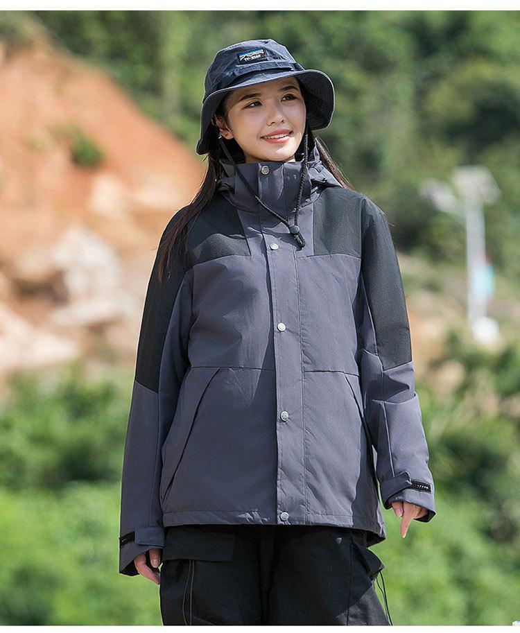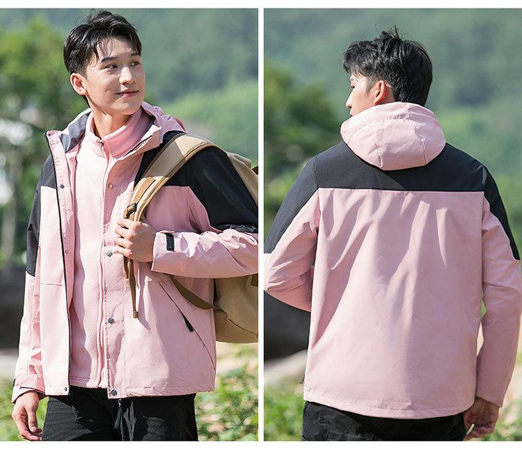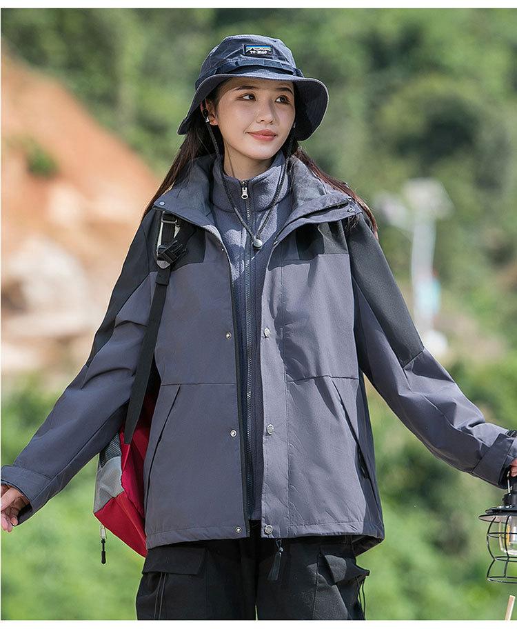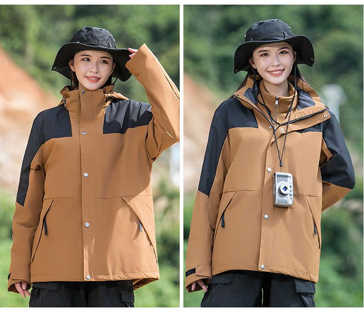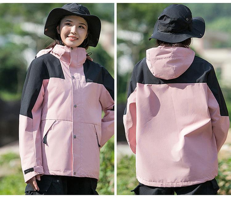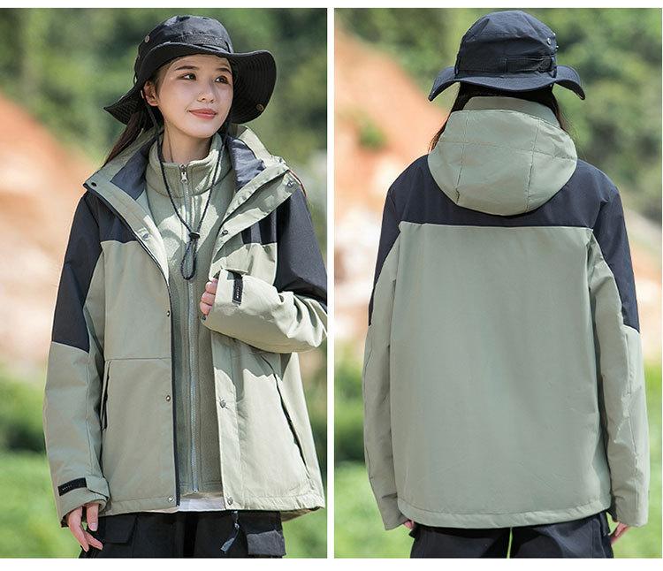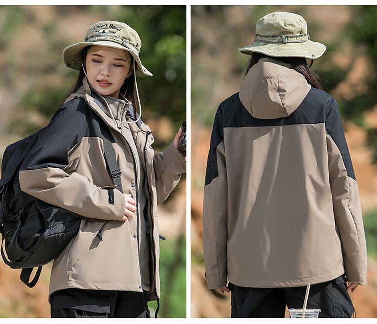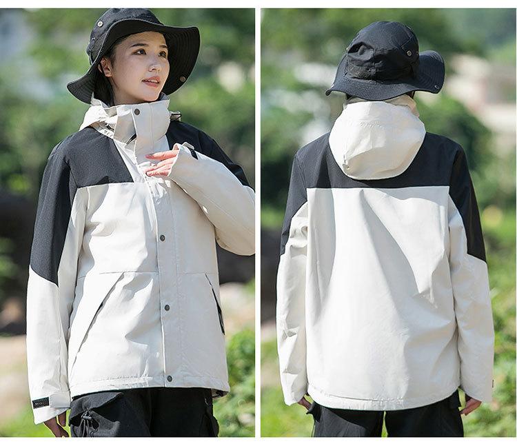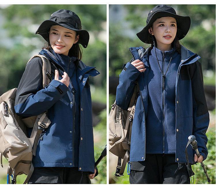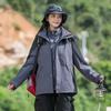 Traje de montañismo para pareja de otoño e invierno para exteriores, bloque de color, impermeable, cortavientos, deportivo, forro desmontable tres en uno, chaqueta de tormenta, soleado