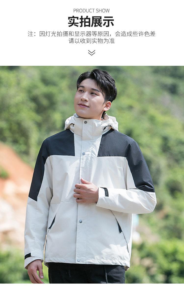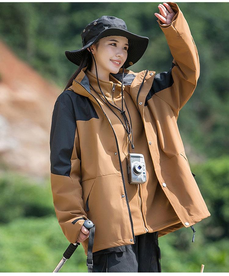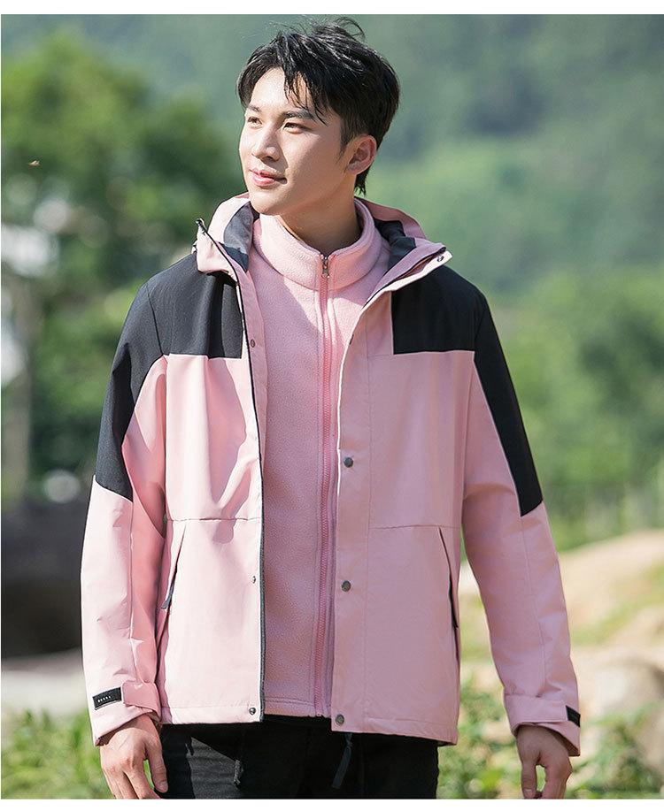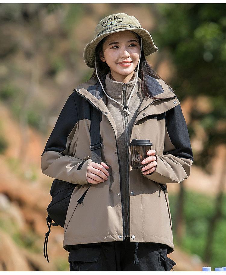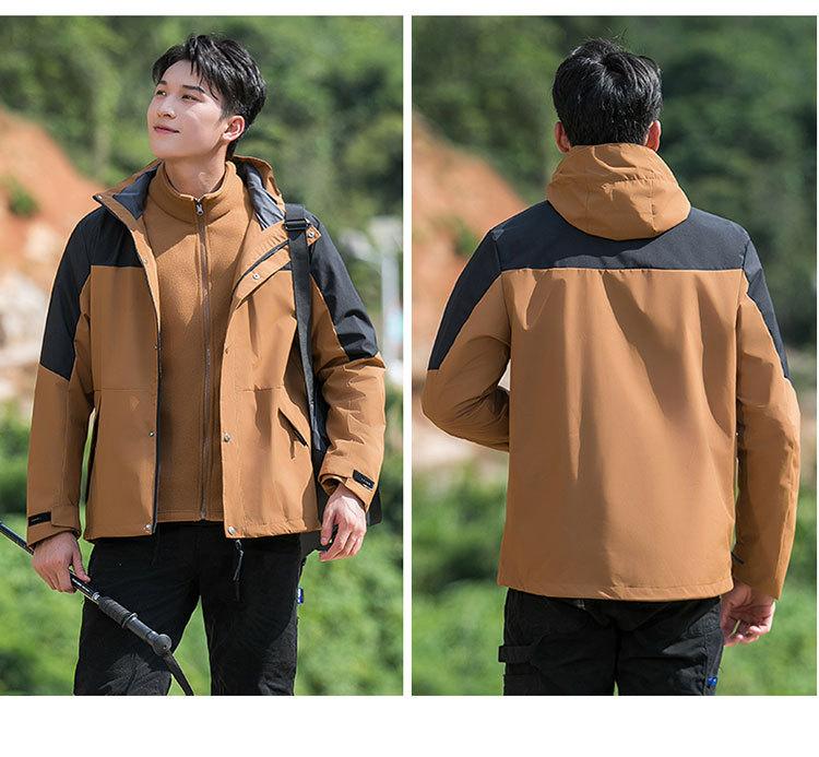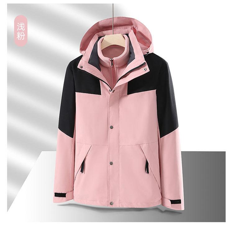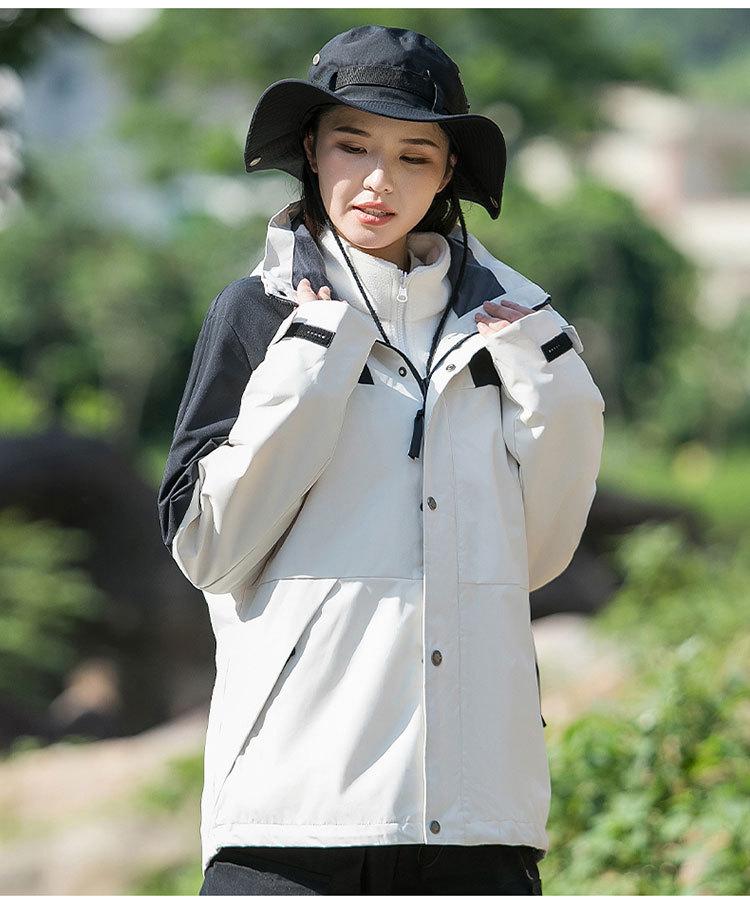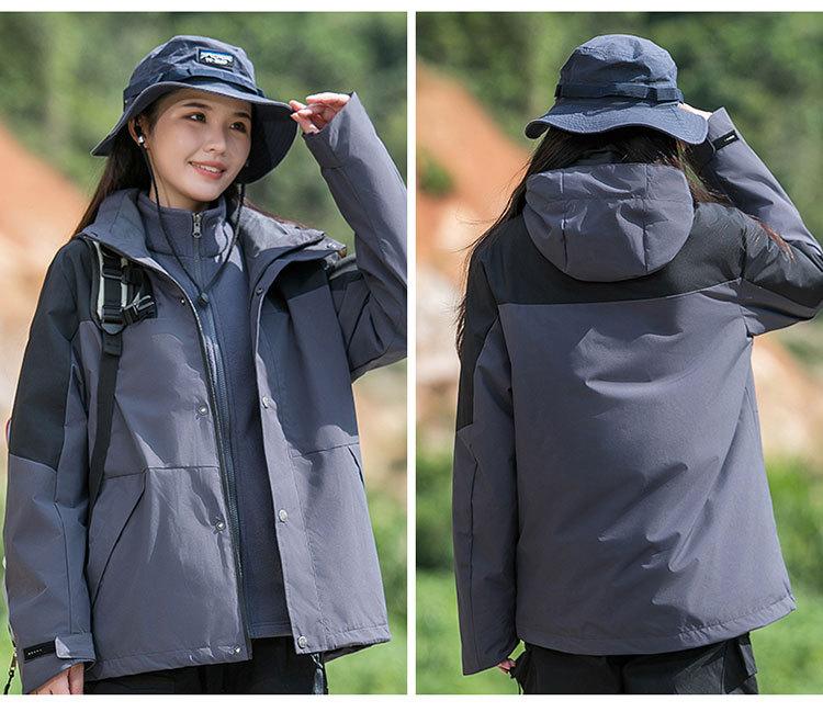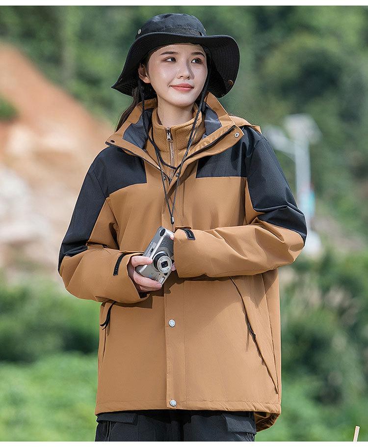 Traje de montañismo para pareja de otoño e invierno para exteriores, bloque de color, impermeable, cortavientos, deportivo, forro desmontable tres en uno, chaqueta de tormenta, soleado