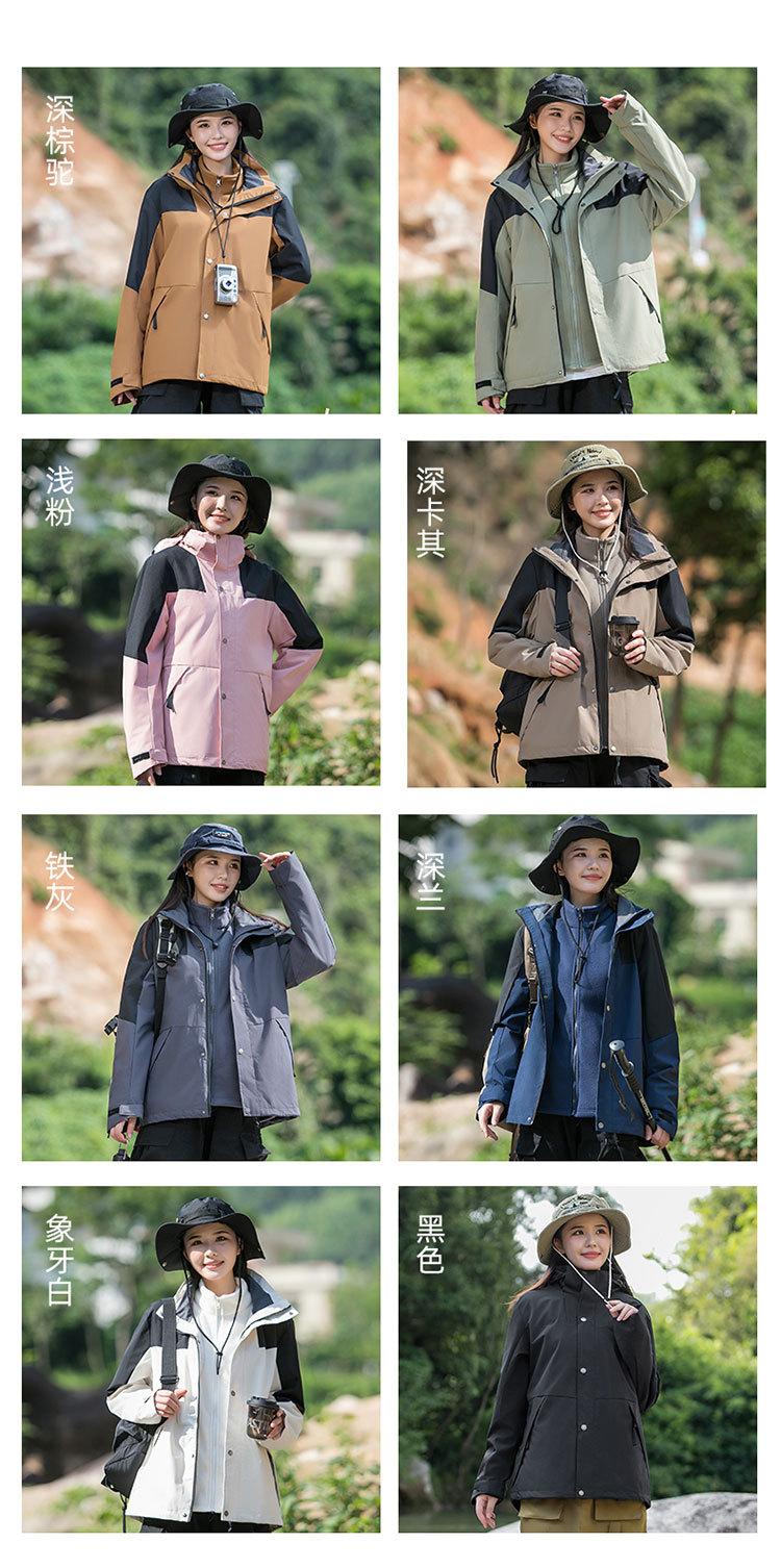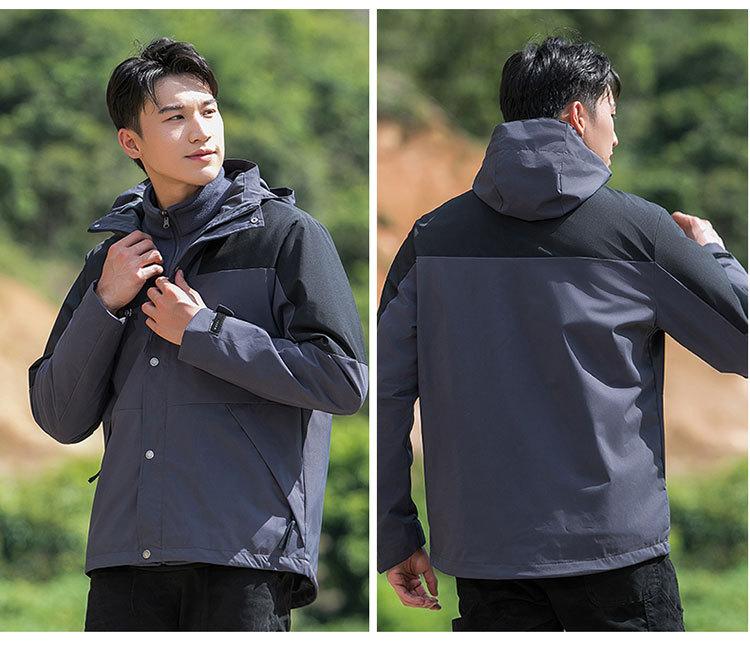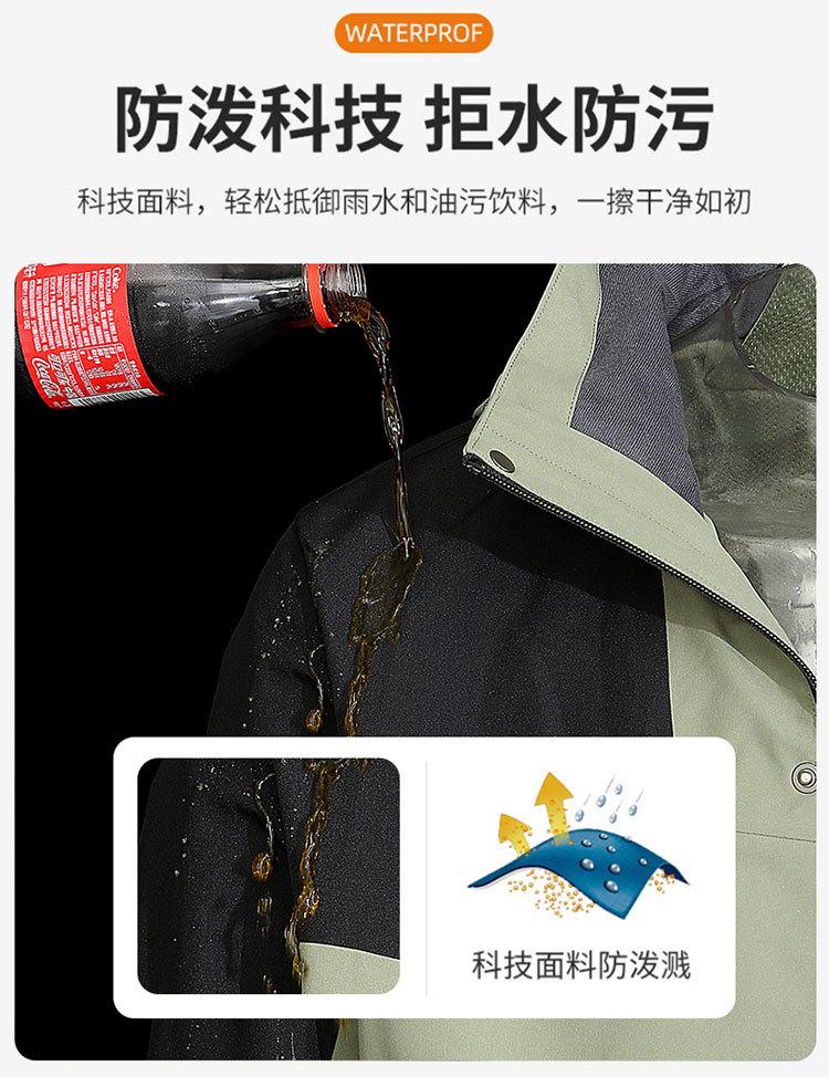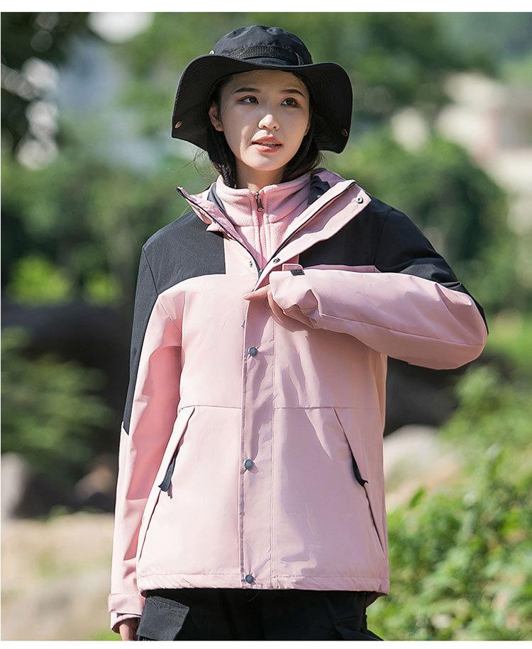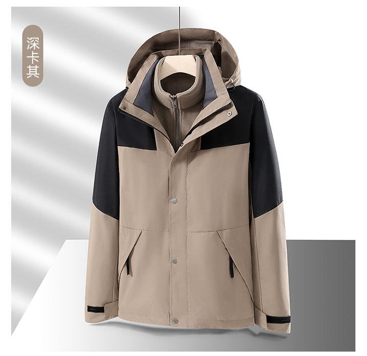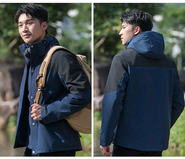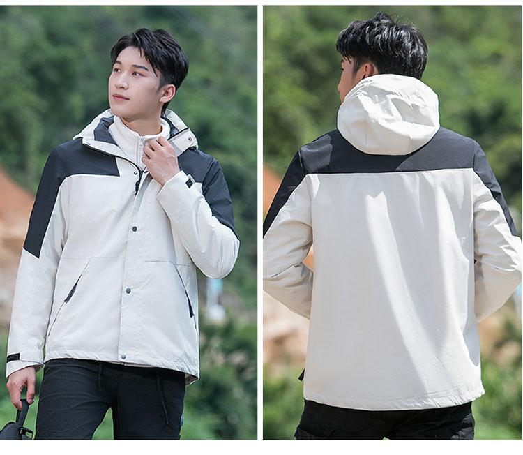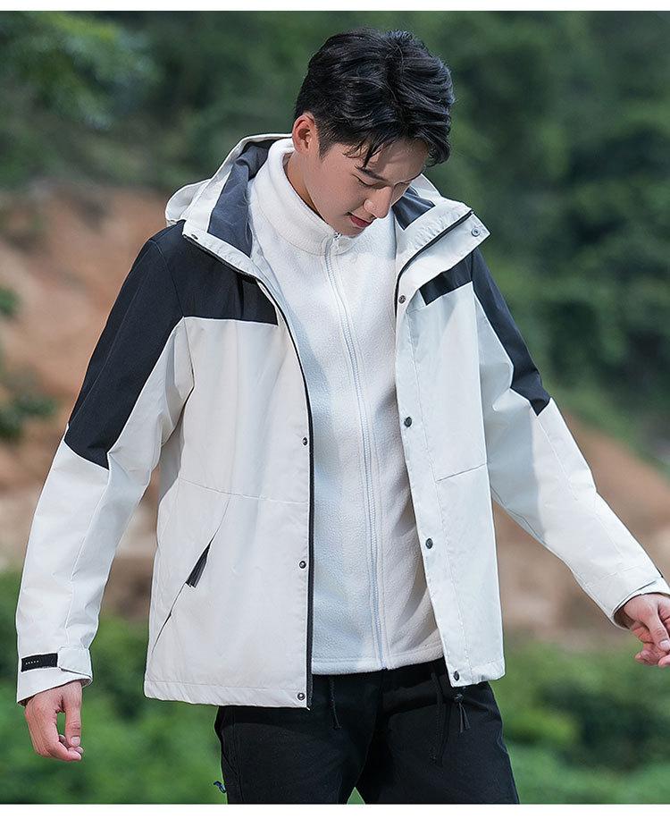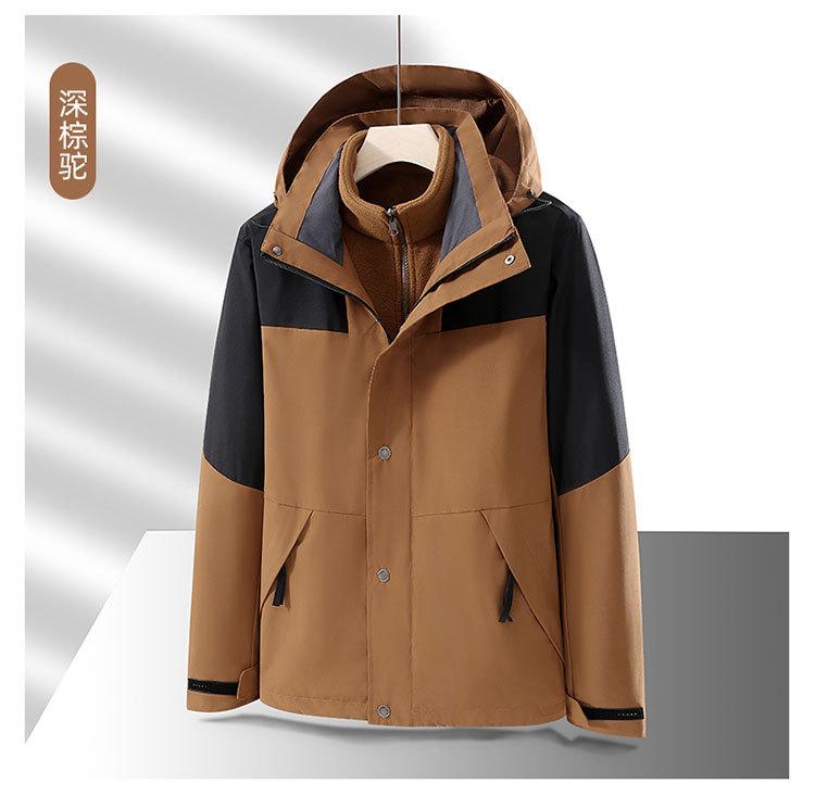 Traje de montañismo para pareja de otoño e invierno para exteriores, bloque de color, impermeable, cortavientos, deportivo, forro desmontable tres en uno, chaqueta de tormenta, soleado
