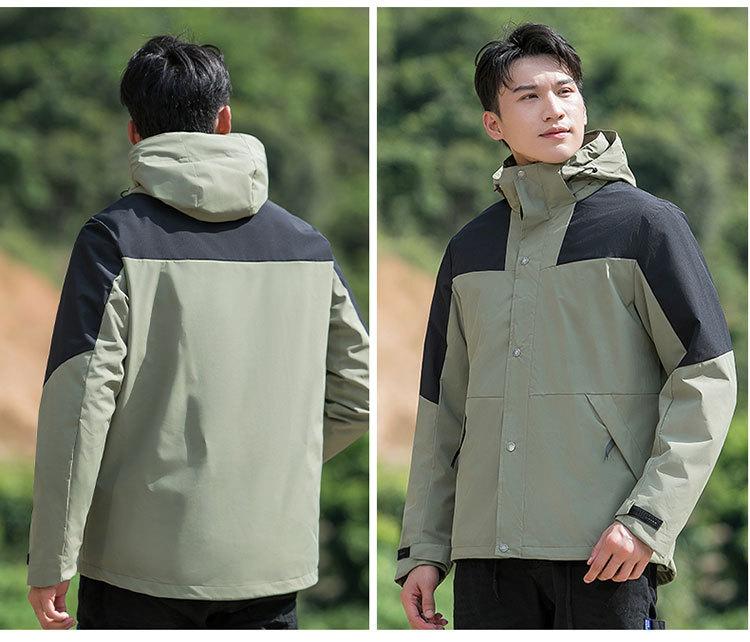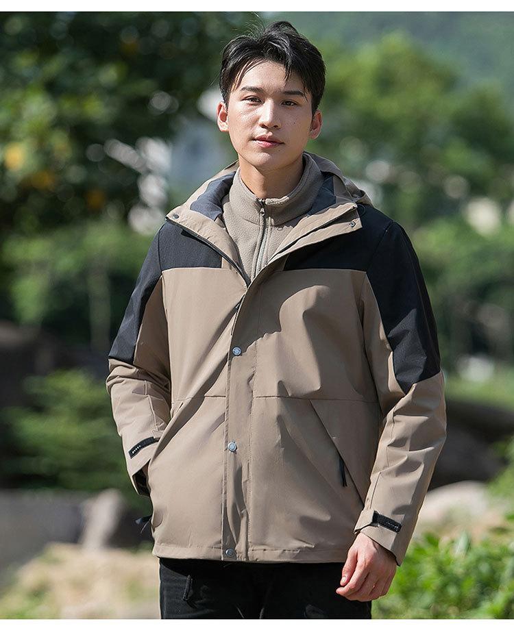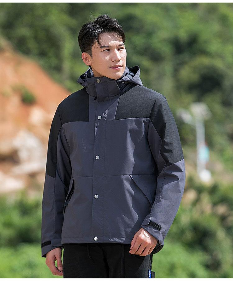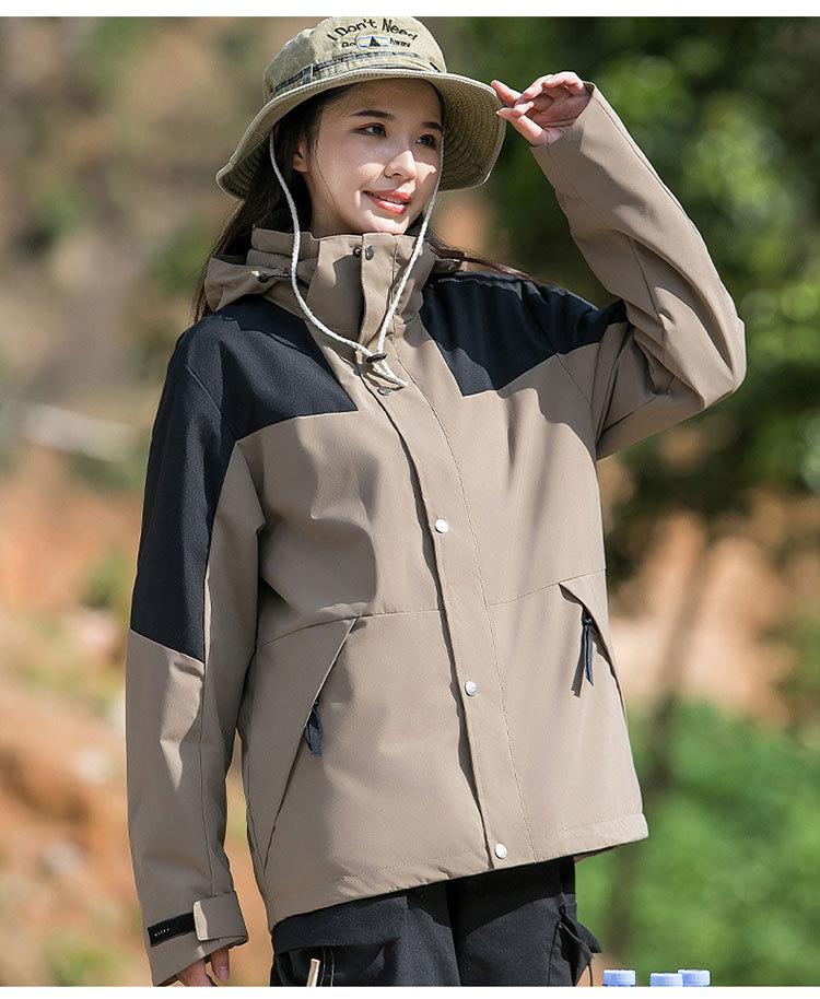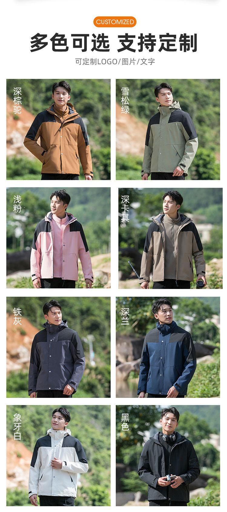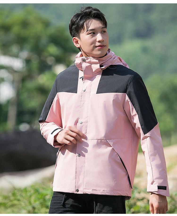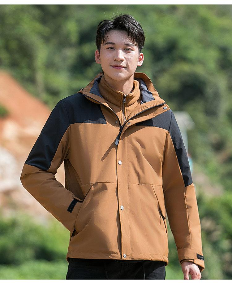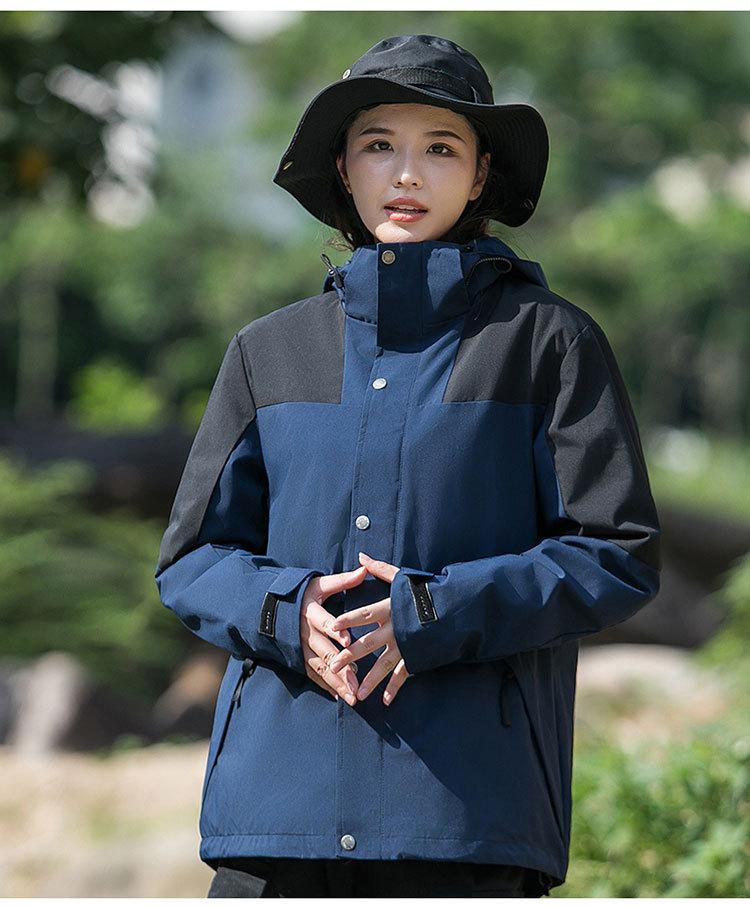 Traje de montañismo para pareja de otoño e invierno para exteriores, bloque de color, impermeable, cortavientos, deportivo, forro desmontable tres en uno, chaqueta de tormenta, soleado