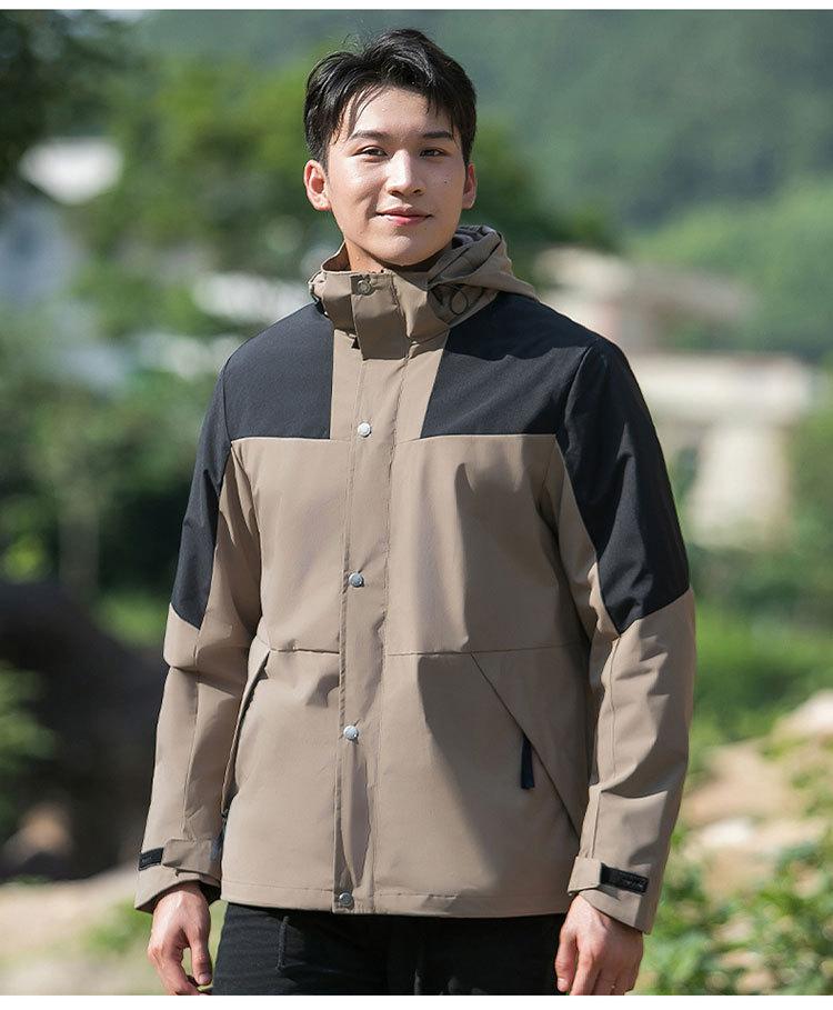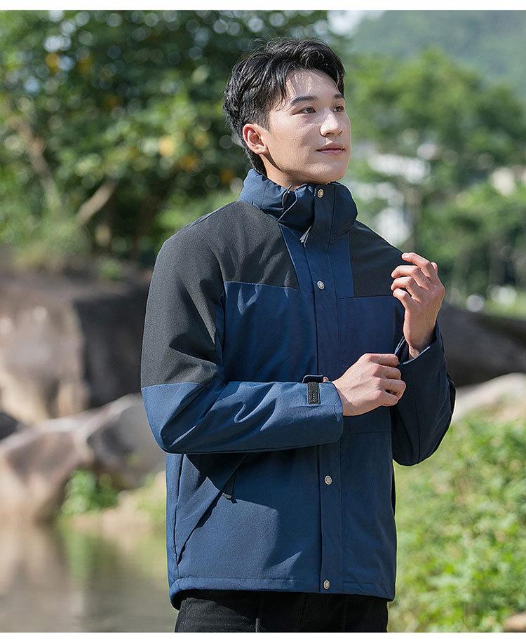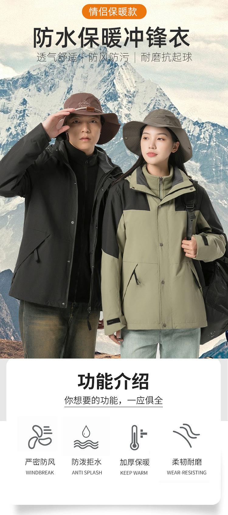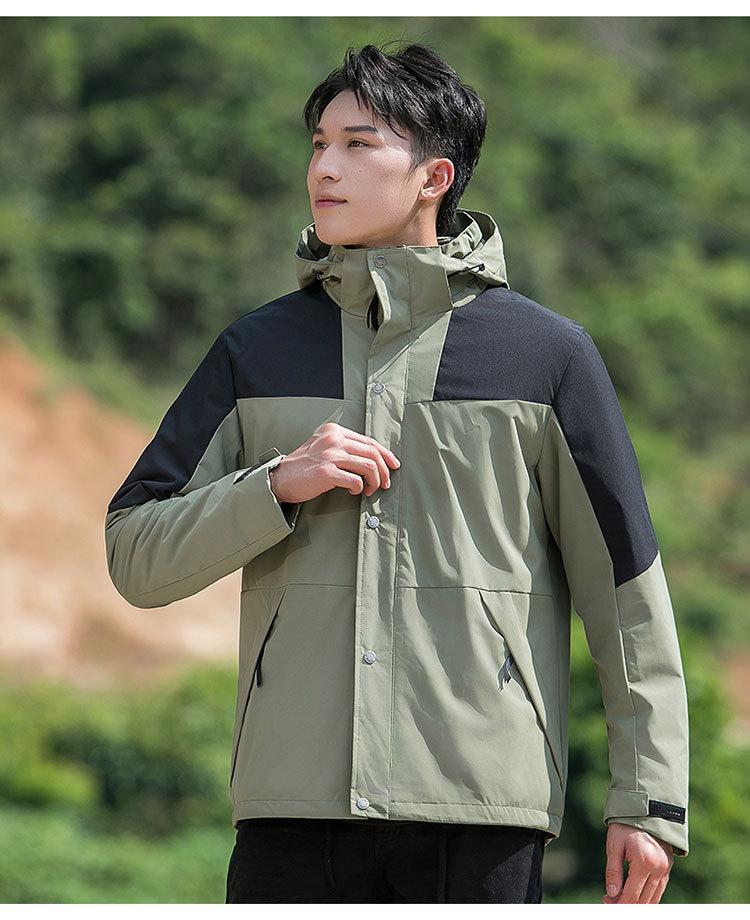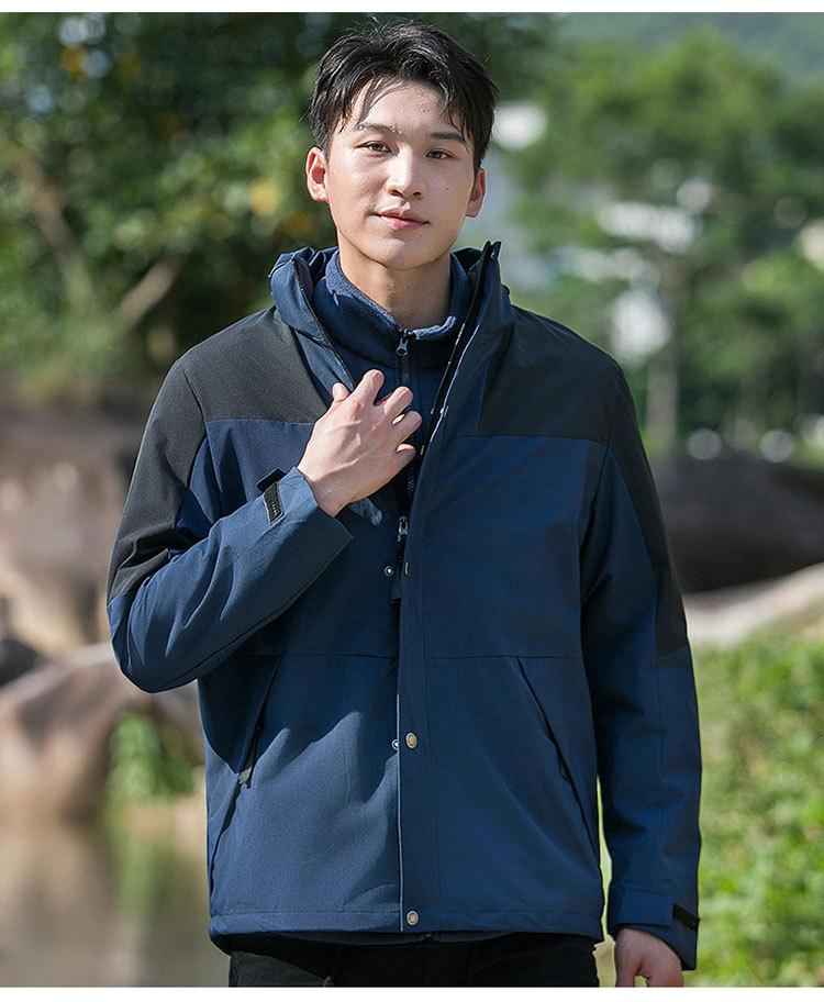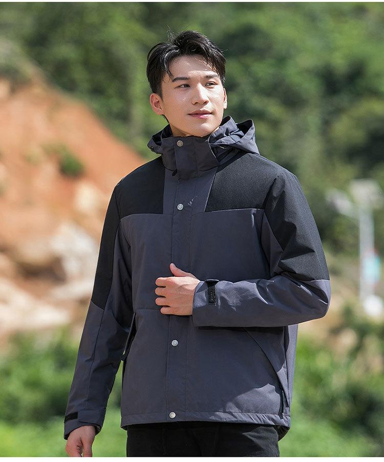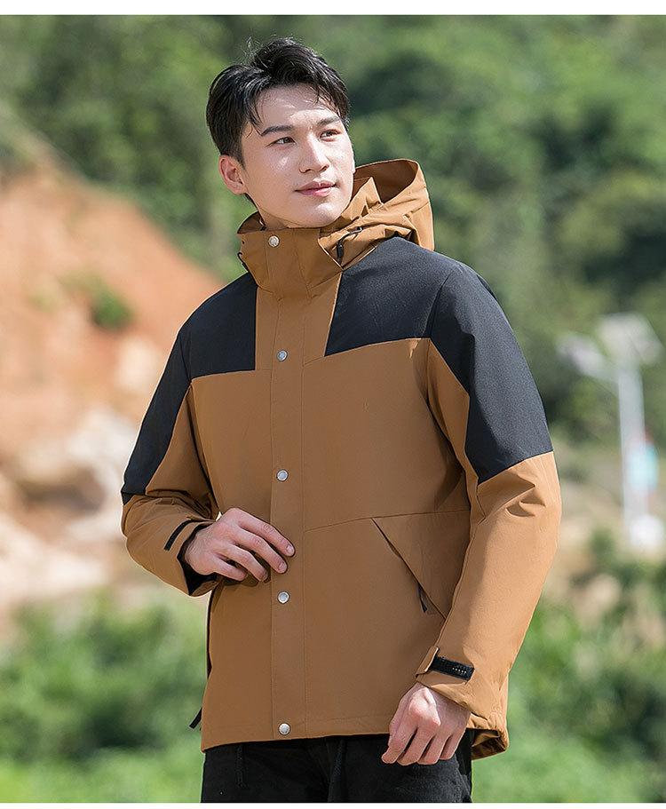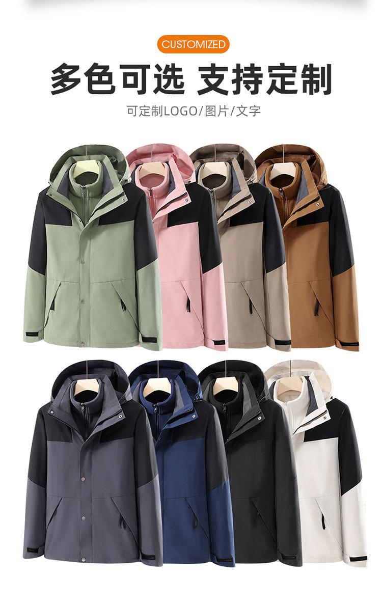 Traje de montañismo para pareja de otoño e invierno para exteriores, bloque de color, impermeable, cortavientos, deportivo, forro desmontable tres en uno, chaqueta de tormenta, soleado