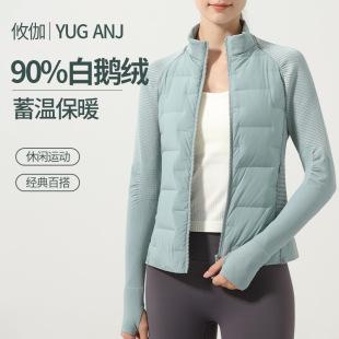 Chaqueta Deportiva de Plumón lulu para Mujer Plumón de Ganso Blanco Cálida Ultraligera Adelgazante Costuras Sin Costuras Ropa Deportiva para Correr y Fitness Abrigo