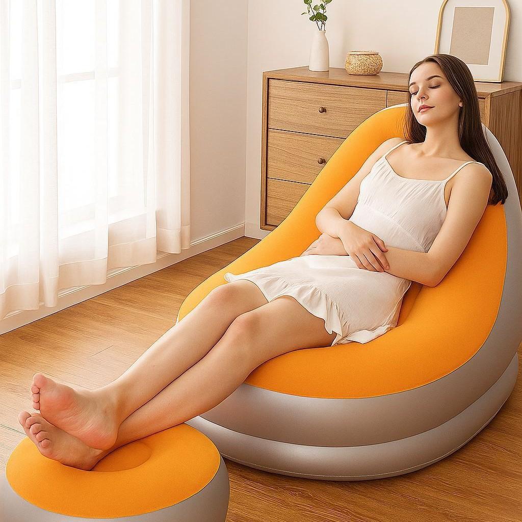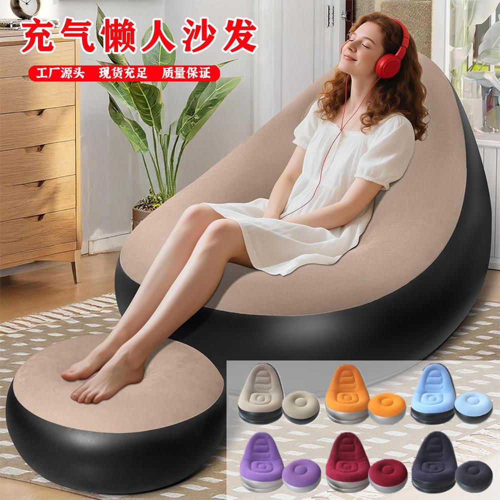 Fabricante punto inflable sofá perezoso flocado reposapiés juego de sofá sofá de ocio reclinable portátil plegable