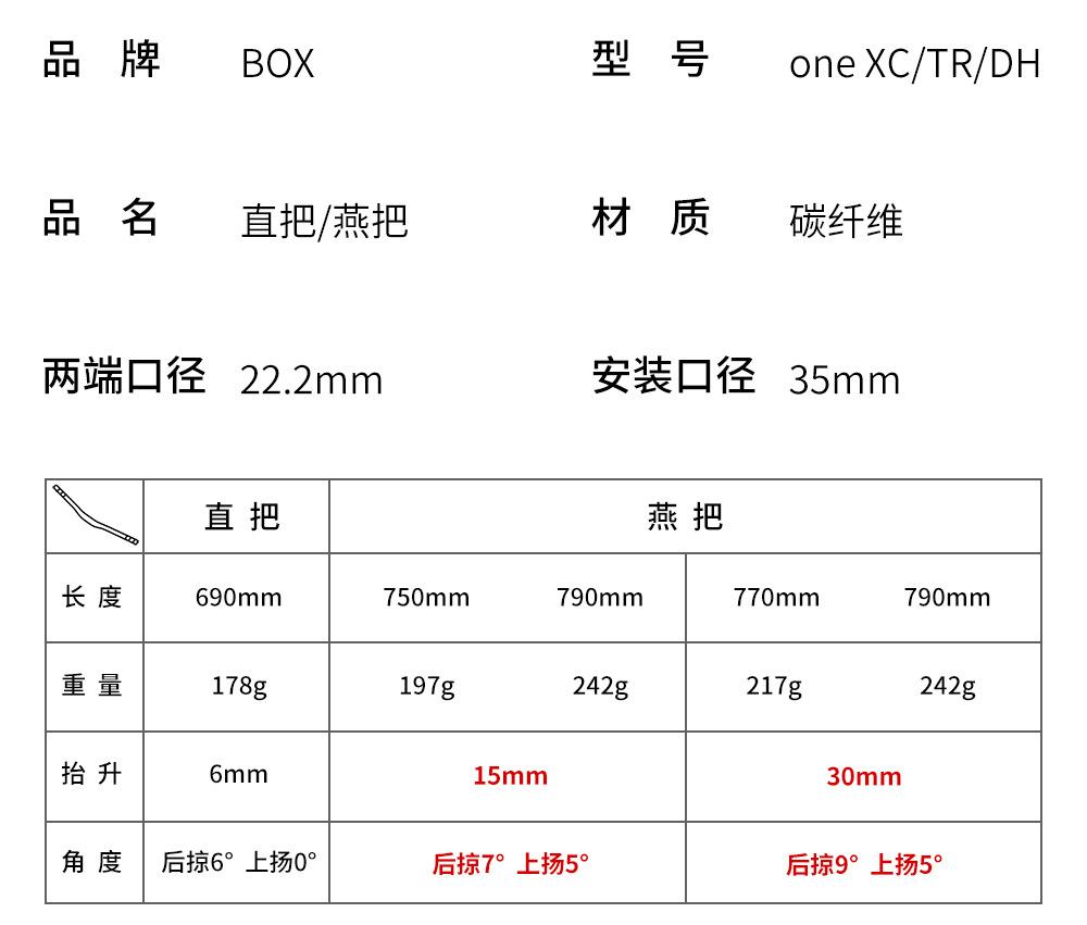 Manillar de Fibra de Carbono para Bicicleta de Montaña BOX Diámetro 35mm Ligero de Alta Gama Bicicleta de Montaña Bicicleta Barra Larga Recta