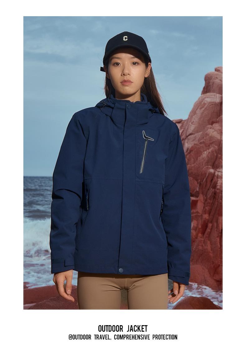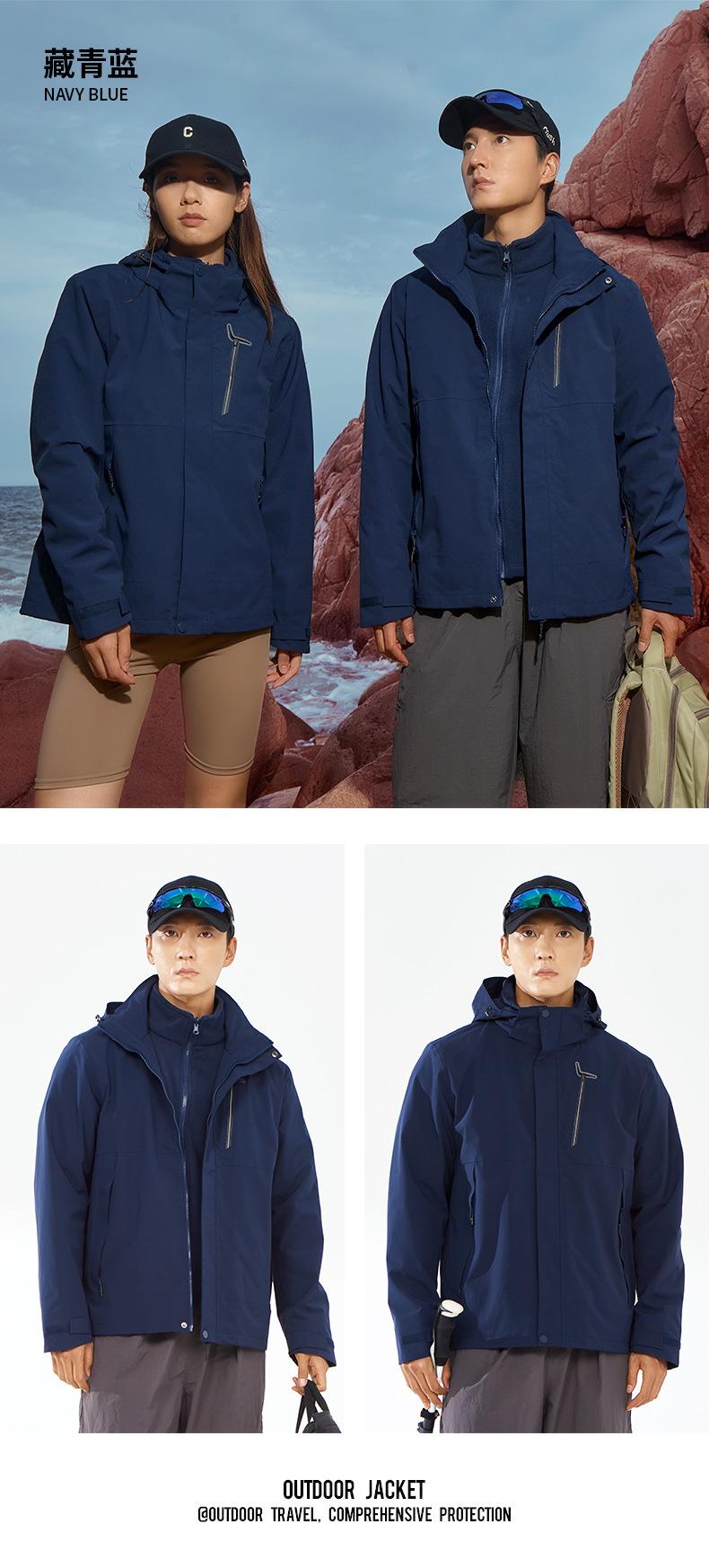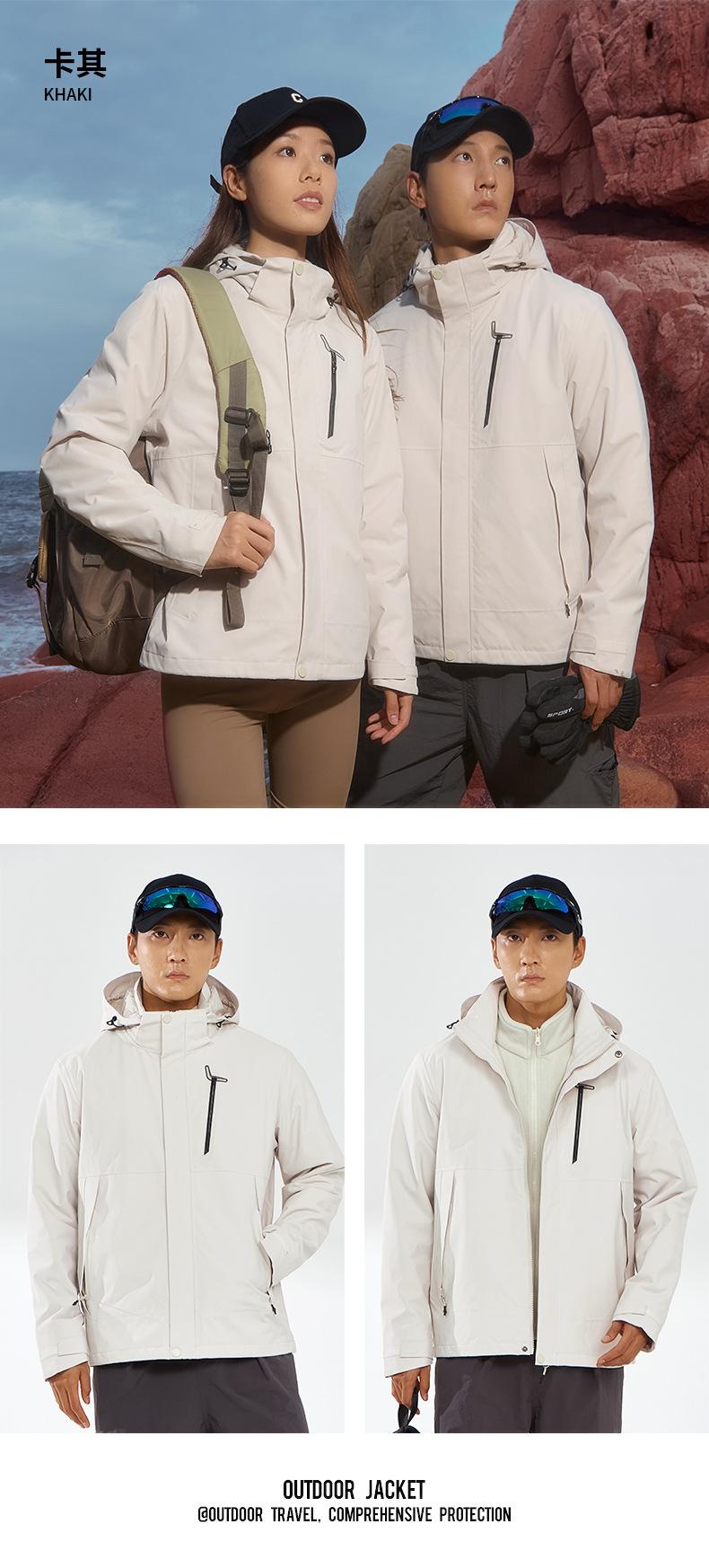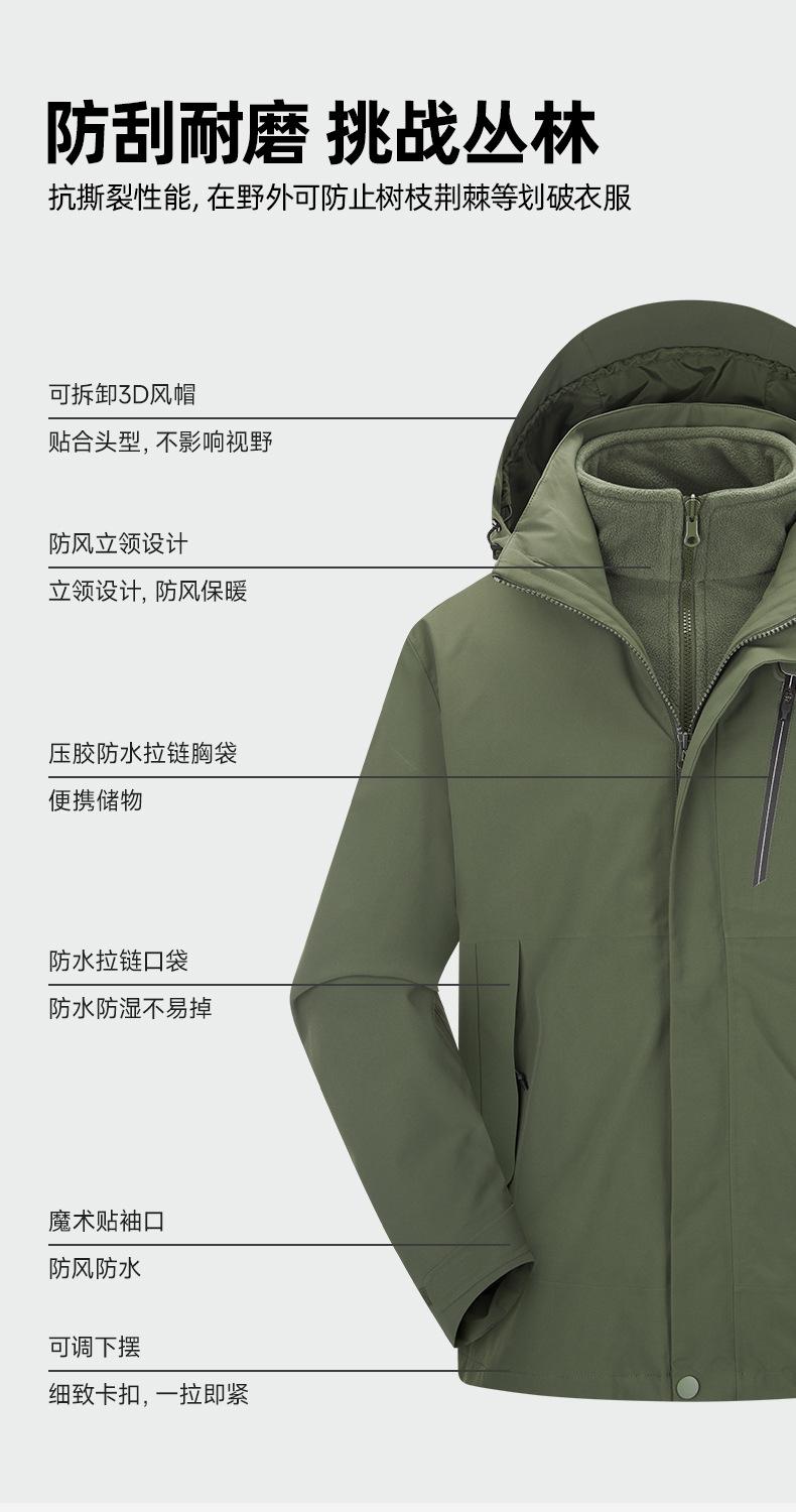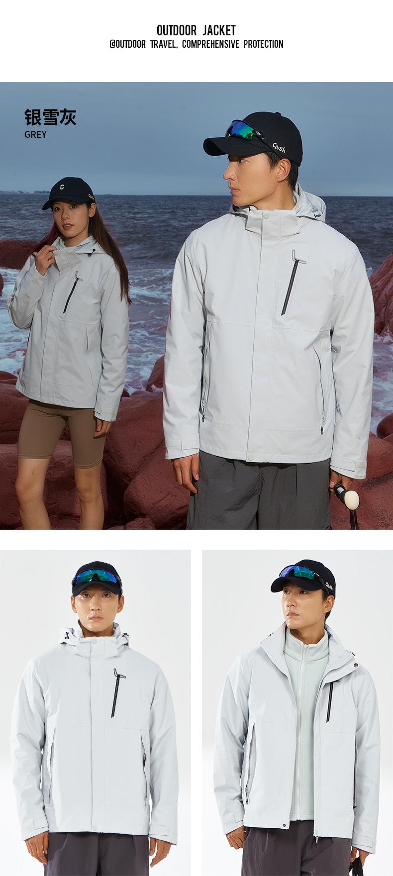 Conjunto de dos piezas tres en uno para exteriores de tela de alta gama a prueba de cuatro elementos, chaqueta desmontable, traje de esquí de montaña para invierno, puede agregar LOGO
