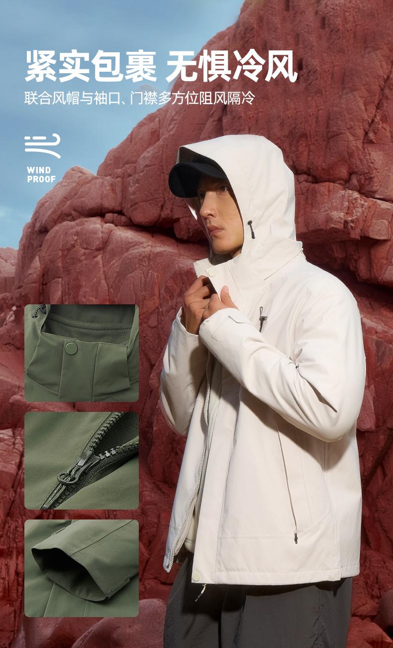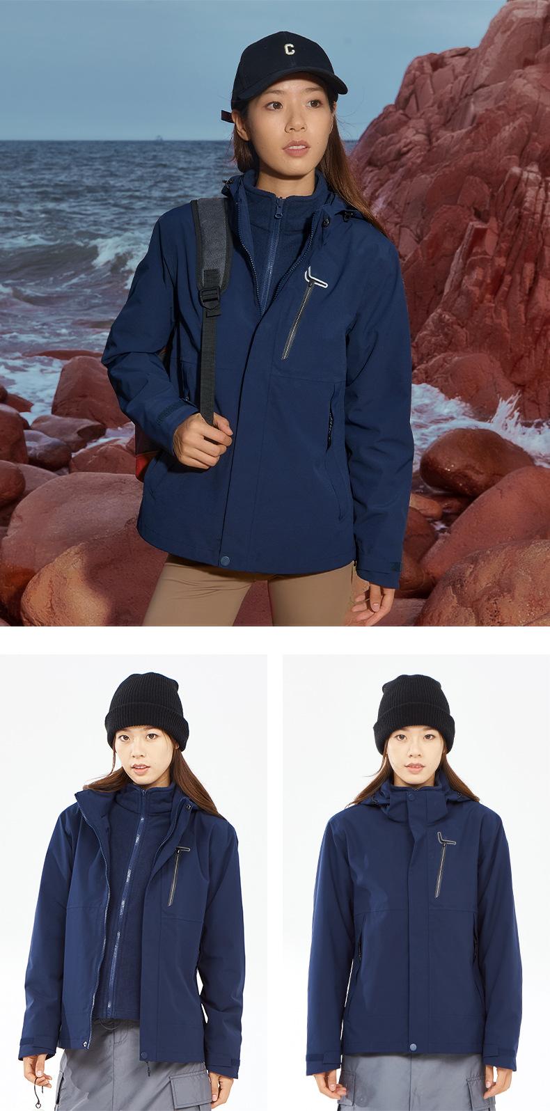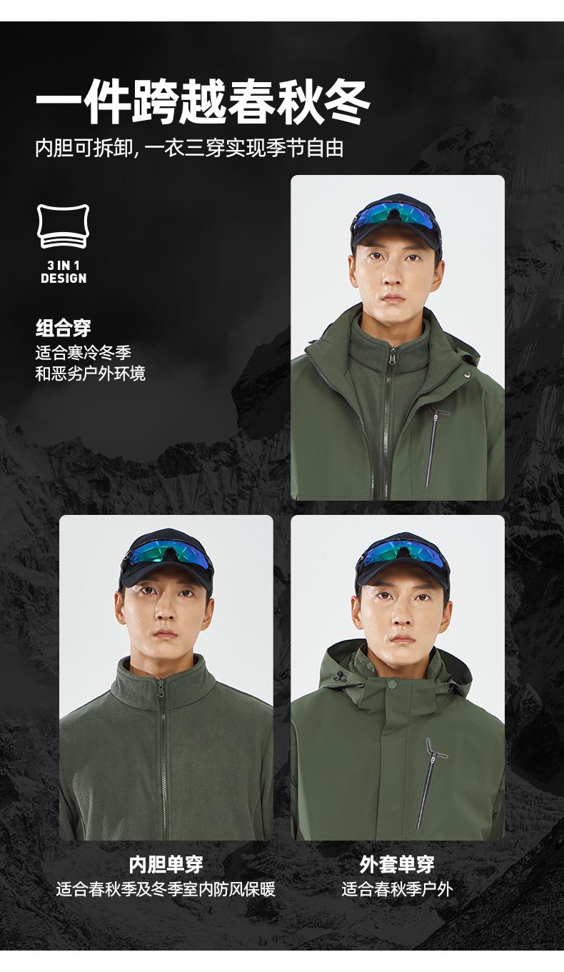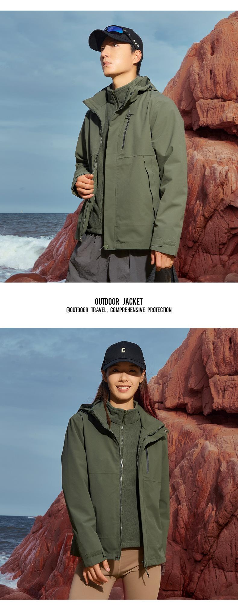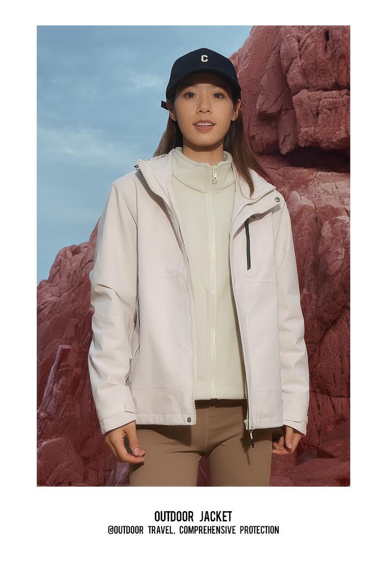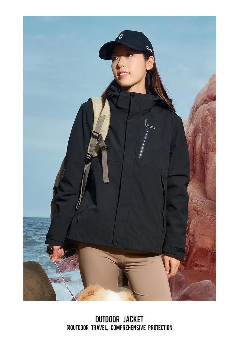 Conjunto de dos piezas tres en uno para exteriores de tela de alta gama a prueba de cuatro elementos, chaqueta desmontable, traje de esquí de montaña para invierno, puede agregar LOGO