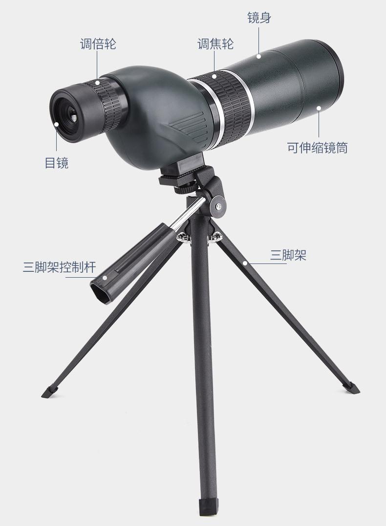 Telescopio estándar, bolsa Oxford, paño para lentes, funda protectora para ocular, funda protectora para lente de objetivo, manual en inglés